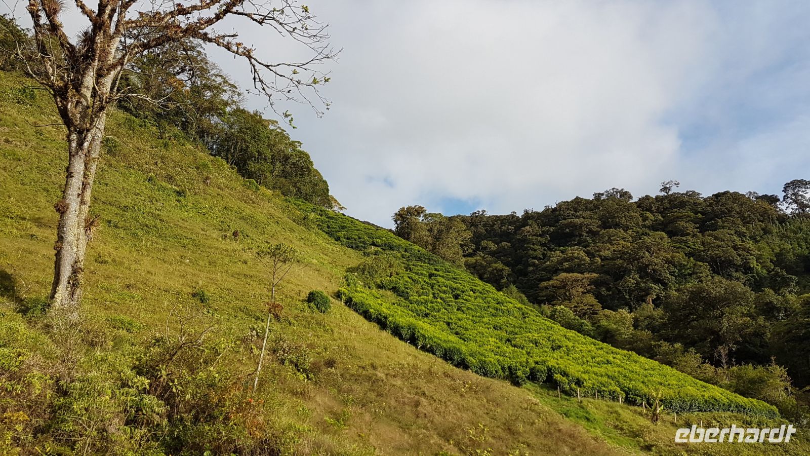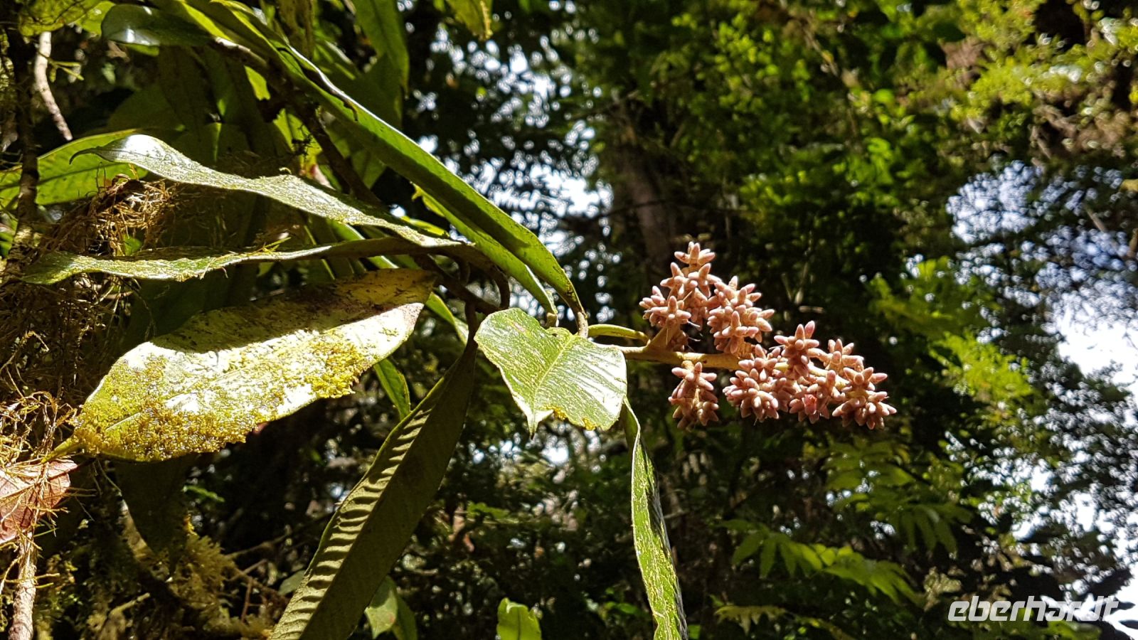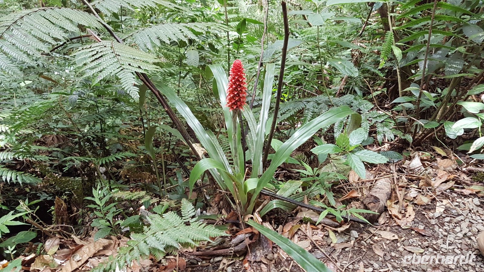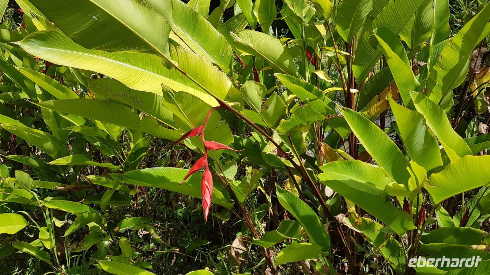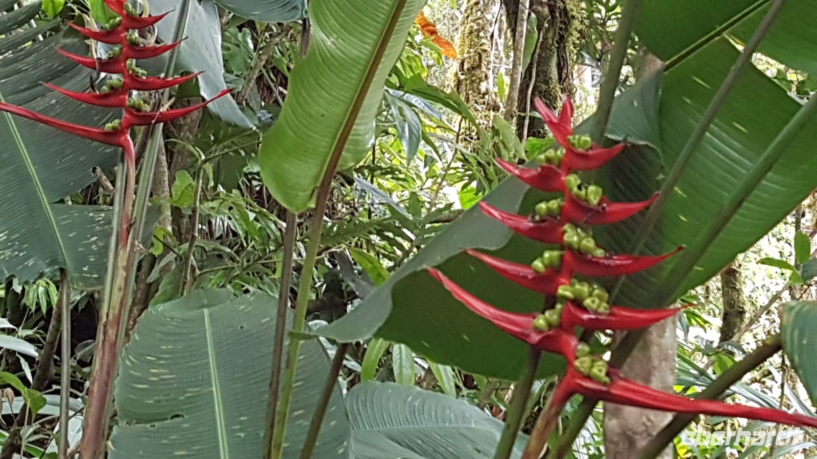 Nach kurzer Fahr mit unserem Bus hinaus aus dem Ort erreichten wir den Startpunkt für unsere Wanderung in Richtung eines Wasserfalles auf dem Quetzal-Wanderweg im Nebelwald. Einige Bauern leben hier und bauen Nutzpflanzen an wie: Kaffee, Weißkohl, Blaukartoffel oder Bananen. Am Fußbereich des Vulkans Barú wachsen schmackhafte wilde Brombeeren. Zahlreiche Wildblumen und Pflanzen säumen den Wanderweg, der sich oft mit dem Fluss aus den Bergen kreuzt. Wir sahen zum Beispiel Bambus, deren Stängel als Rankhilfe für Tomaten oder als Strohhalm genutzt werden kann. Es gibt Bromelien und Heliconien in verschiedenen Ausführungen, Farne, Flechten und verschiedenste farbenfroh blühende Blumen, unter anderem die „Electric flower“, die in der Gastronomie gern zwischen den einzelnen Gängen zur Geschmacksneutralisation genutzt wird. Wir sahen große Ulmen, die hier vermutlich schon über 400 Jahre stehen. Wir begannen unsere Wanderung in einer Höhe von 1500 Metern, bei etwa 1700 Metern kehrten wir um. Unser Hotel liegt bei knapp 2000 Metern Höhe. Bereits bei diesen Höhenunterschieden merkten wir eine deutliche Veränderung des Klimas, besonders die Temperaturen sind deutlich niedriger, je höher man kommt.