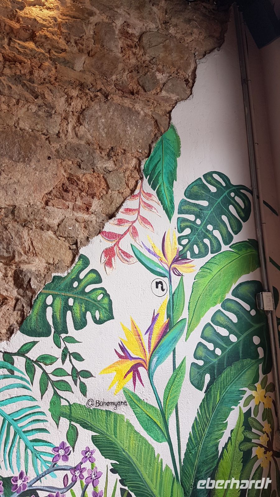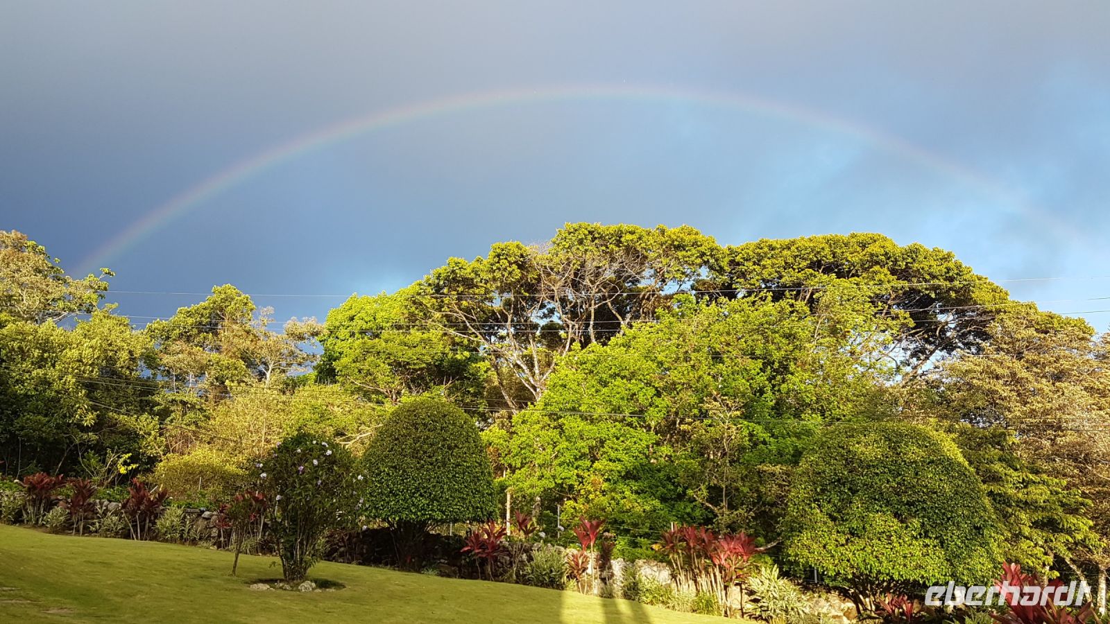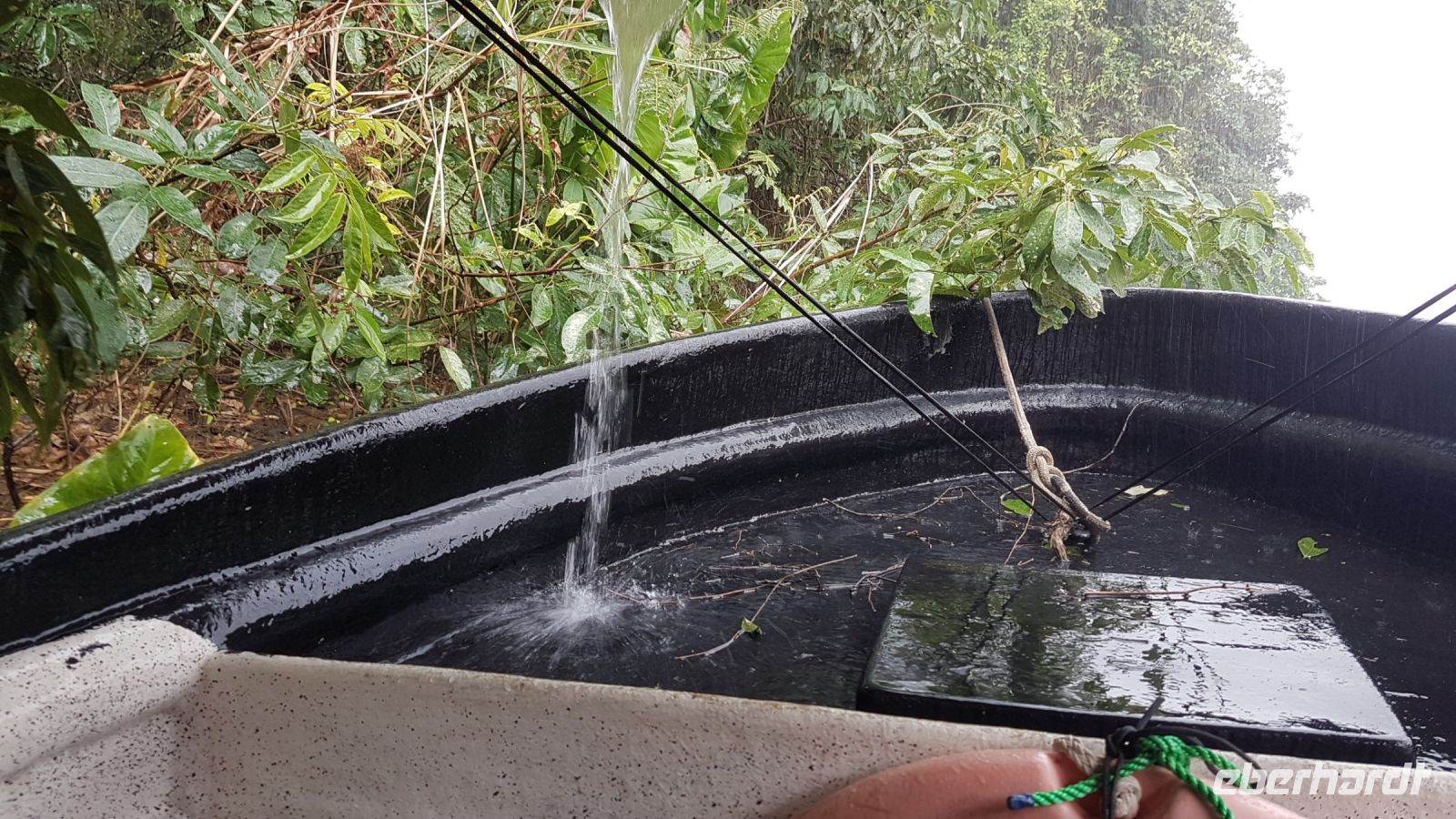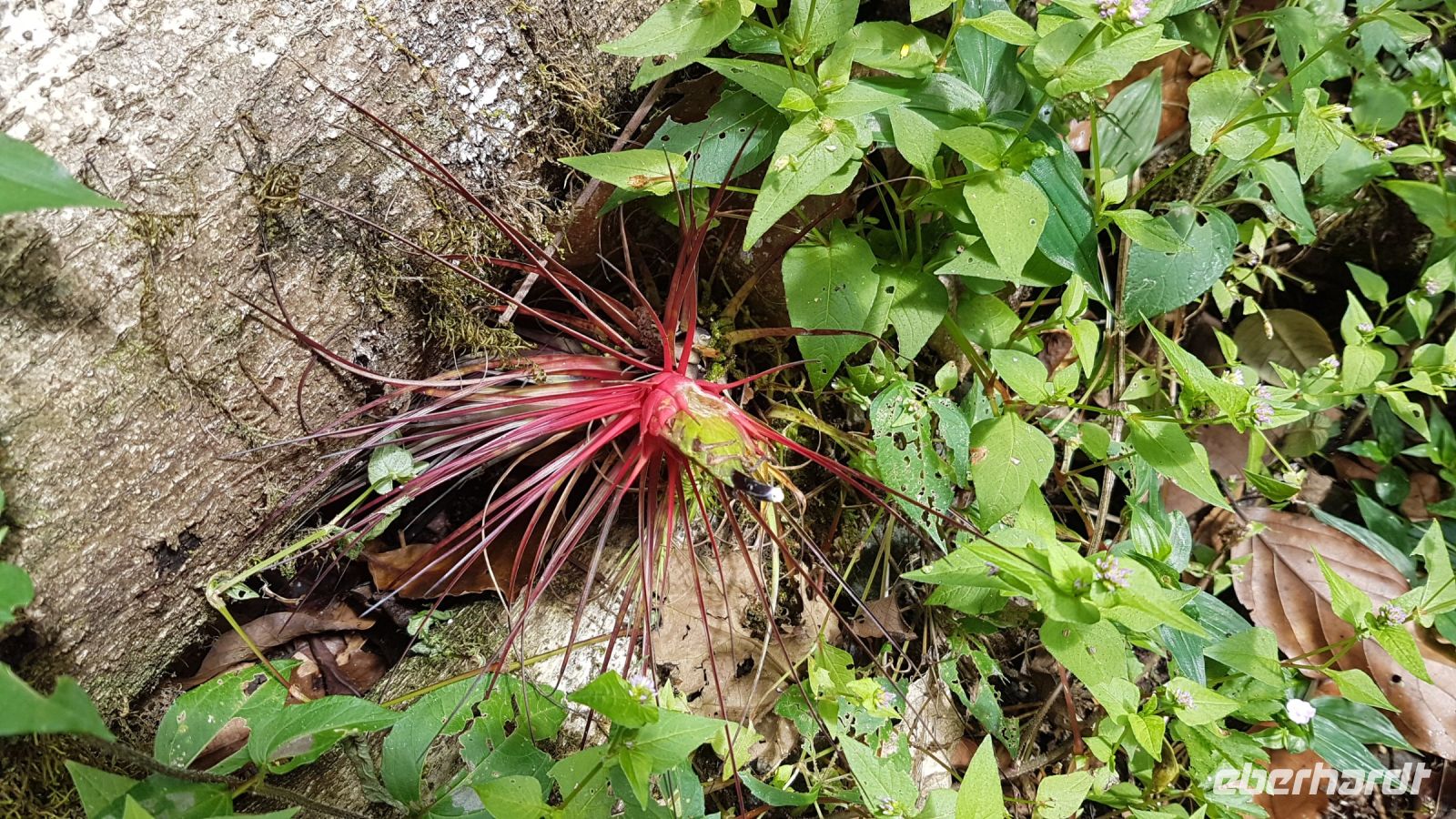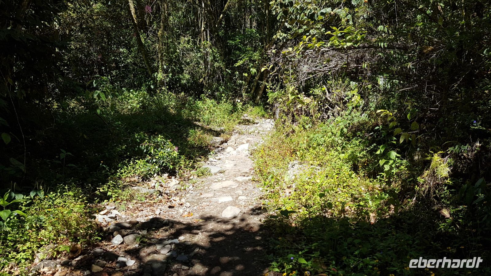 Nach kurzer Fahr mit unserem Bus hinaus aus dem Ort erreichten wir den Startpunkt für unsere Wanderung in Richtung eines Wasserfalles auf dem Quetzal-Wanderweg im Nebelwald. Einige Bauern leben hier und bauen Nutzpflanzen an wie: Kaffee, Weißkohl, Blaukartoffel oder Bananen. Am Fußbereich des Vulkans Barú wachsen schmackhafte wilde Brombeeren. Zahlreiche Wildblumen und Pflanzen säumen den Wanderweg, der sich oft mit dem Fluss aus den Bergen kreuzt. Wir sahen zum Beispiel Bambus, deren Stängel als Rankhilfe für Tomaten oder als Strohhalm genutzt werden kann. Es gibt Bromelien und Heliconien in verschiedenen Ausführungen, Farne, Flechten und verschiedenste farbenfroh blühende Blumen, unter anderem die „Electric flower“, die in der Gastronomie gern zwischen den einzelnen Gängen zur Geschmacksneutralisation genutzt wird. Wir sahen große Ulmen, die hier vermutlich schon über 400 Jahre stehen. Wir begannen unsere Wanderung in einer Höhe von 1500 Metern, bei etwa 1700 Metern kehrten wir um. Unser Hotel liegt bei knapp 2000 Metern Höhe. Bereits bei diesen Höhenunterschieden merkten wir eine deutliche Veränderung des Klimas, besonders die Temperaturen sind deutlich niedriger, je höher man kommt.