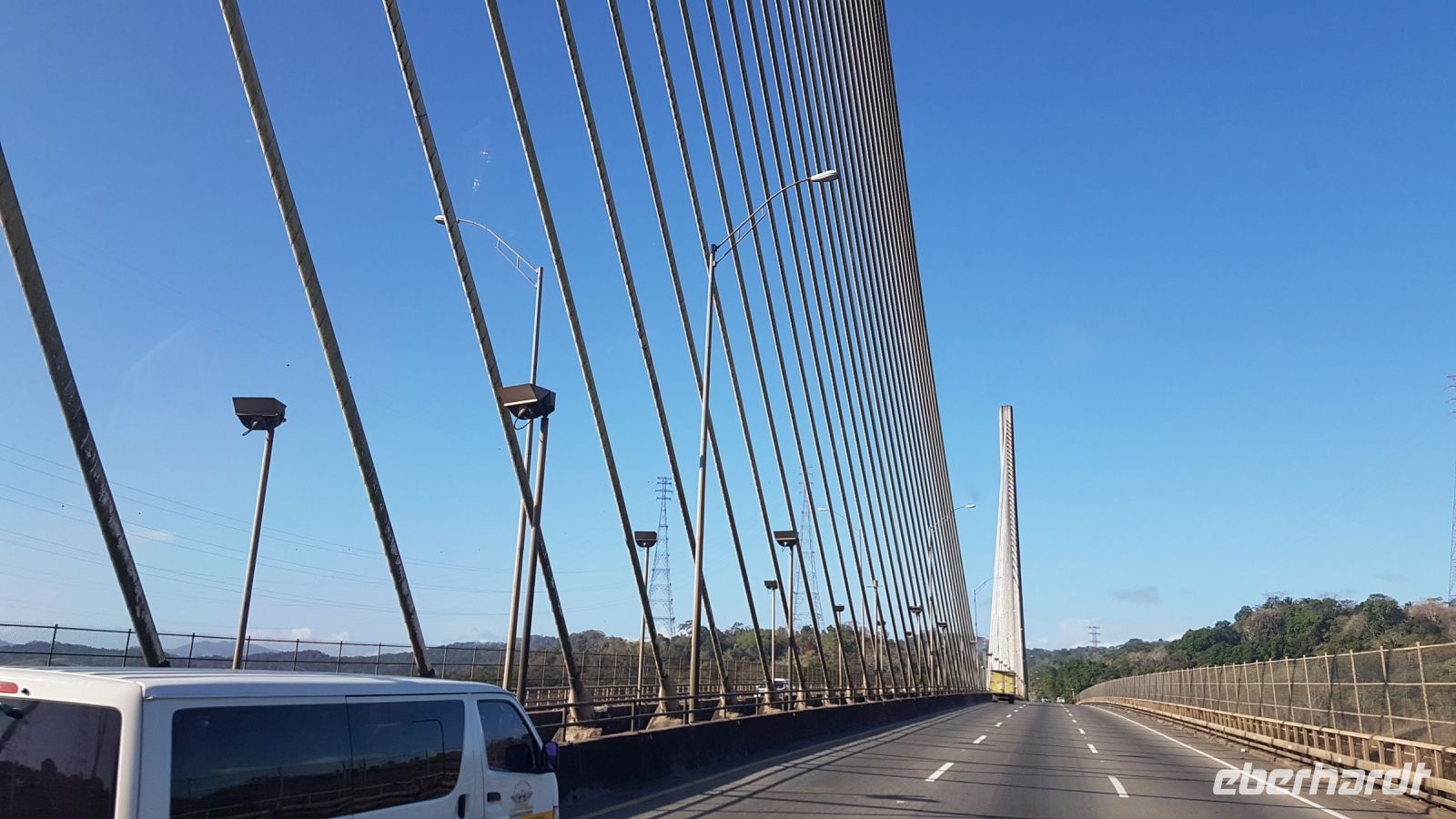 Ein weiterer Morgen, an dem wir wieder sehr früh aufstehen mussten, aber das haben wir gern getan, denn es stand ein Highlight unserer Reise auf dem Programm: die Befahrung des berühmten Panama-Kanals. Noch in der Dunkelheit verließen wir unser Hotel, ein Frühstückspaket hatte jeder mitnehmen können, denn morgens um fünf Uhr gab es natürlich noch kein Frühstück im Hotel. Bereits nach kurzer Fahrt erreichten wir die Anlegestelle, wo bereits ein Touristenschiff auf seine Besucher wartete. Nach kurzer Zeit konnten wir einsteigen, suchten uns schöne Plätze auf dem Deck und warteten gespannt, dass die Reise beginnt. Schiff ahoi, die Fahrt begann. Bald schon tauchte in einiger Entfernung die „Brücke der Amerikas“ auf, eine etwas seltsam anmutende Bezeichnung. Sie trifft aber wörtlich zu. Denn nach der Fertigstellung des Panamakanals im Jahr 2014 durch die USA nach 10 Jahren Bauzeit, war das Land Panama in zwei Teile zerschnitten. Die vormals herrschende Landmasse war durchtrennt worden, um die Wasserstraße für die Schiffe zu schaffen. Für die Bevölkerung bedeutete das, dass sie „abgeschnitten“ vom anderen Landesteil waren. Es gab Fährverbindung, aber alle Güter, Waren usw. mussten über das Wasser transportiert werden. Das war mit großem Aufwand verbunden, denn die Region um den Kanal war Hoheitsgebiet der USA und als Kanalzone für die einheimische Bevölkerung gesperrt. Im Oktober 1962 wurde dann die Brücke eröffnet und überspannt nun die südliche Einfahrt in den Panamakanal vom Pazifik aus und verbindet seitdem wieder Nord- und Südamerika. Wir kamen von Süden und durchquerten diese imposante Brücke. Drei Schleusen brachten uns mit Hilfe der Schwerkraft des Wassers nach oben, wir überwanden einen Höhenunterschied von 26 m bis zum Gatunsee. Unterwegs ließen wir uns Kaffe, Getränke und einen Imbiss schmecken. Gegen Mittag hatten wir den See erreicht, eine eindrucksvolle Fahrt ging zu Ende. Mit dem Bus wurden wir zurück zum morgendlichen Ausgangspunkt gebracht, am frühen Nachmittag kamen wir wieder im Hotel an. Jetzt konnten wir noch auf eigene Faust Panama-Stadt erkunden oder etwas im Hotel entspannen. Gegen Abend trafen sich einige Gäste unserer Gruppe wieder, um im nahegelegenen italienischen Restaurant bei einem gemeinsamen Abendessen diesen schönen Reisetag ausklingen zu lassen.