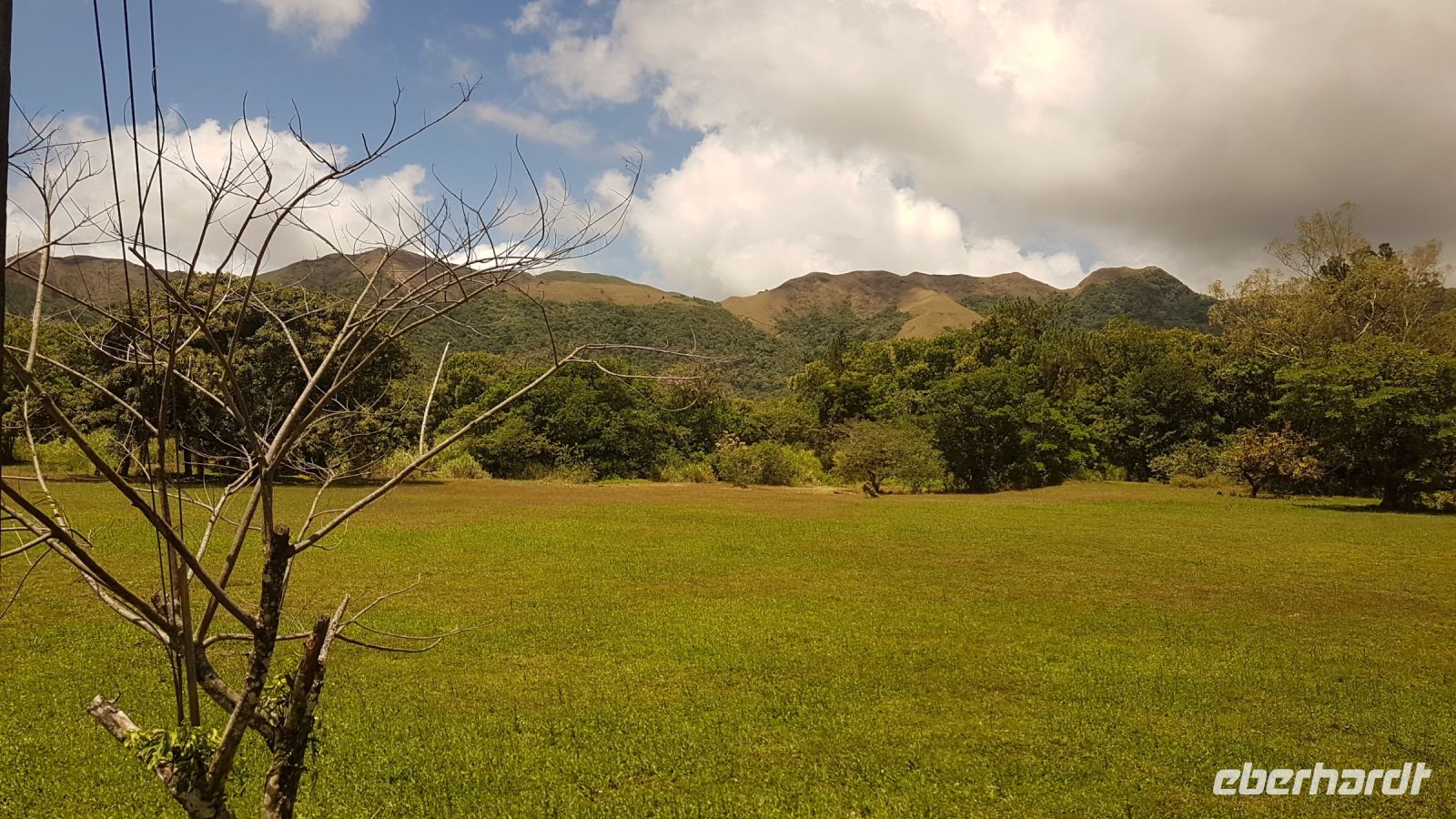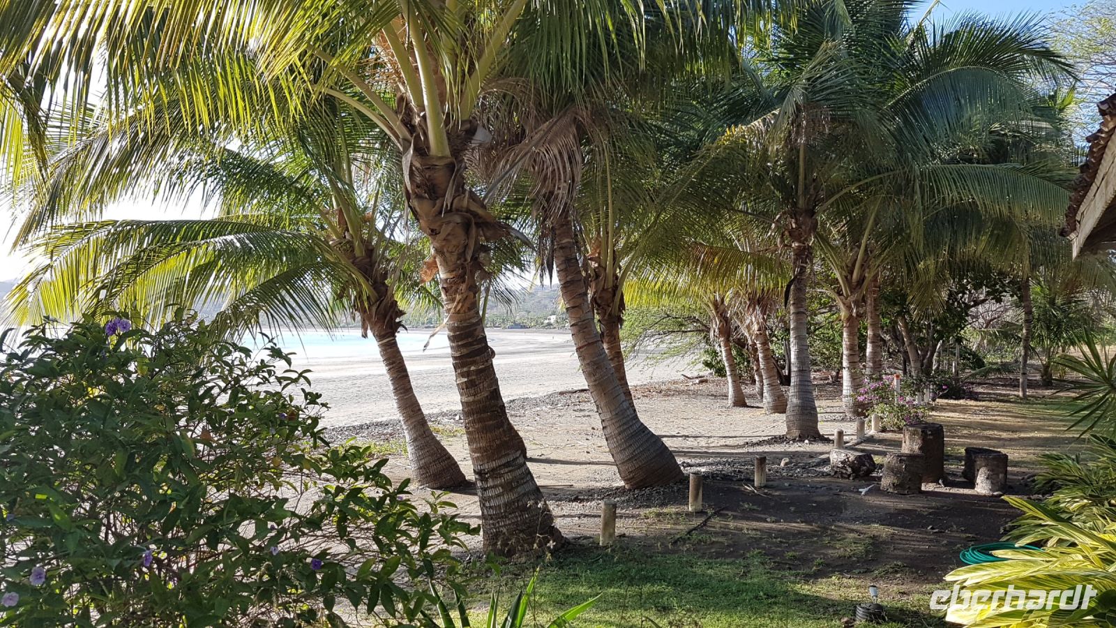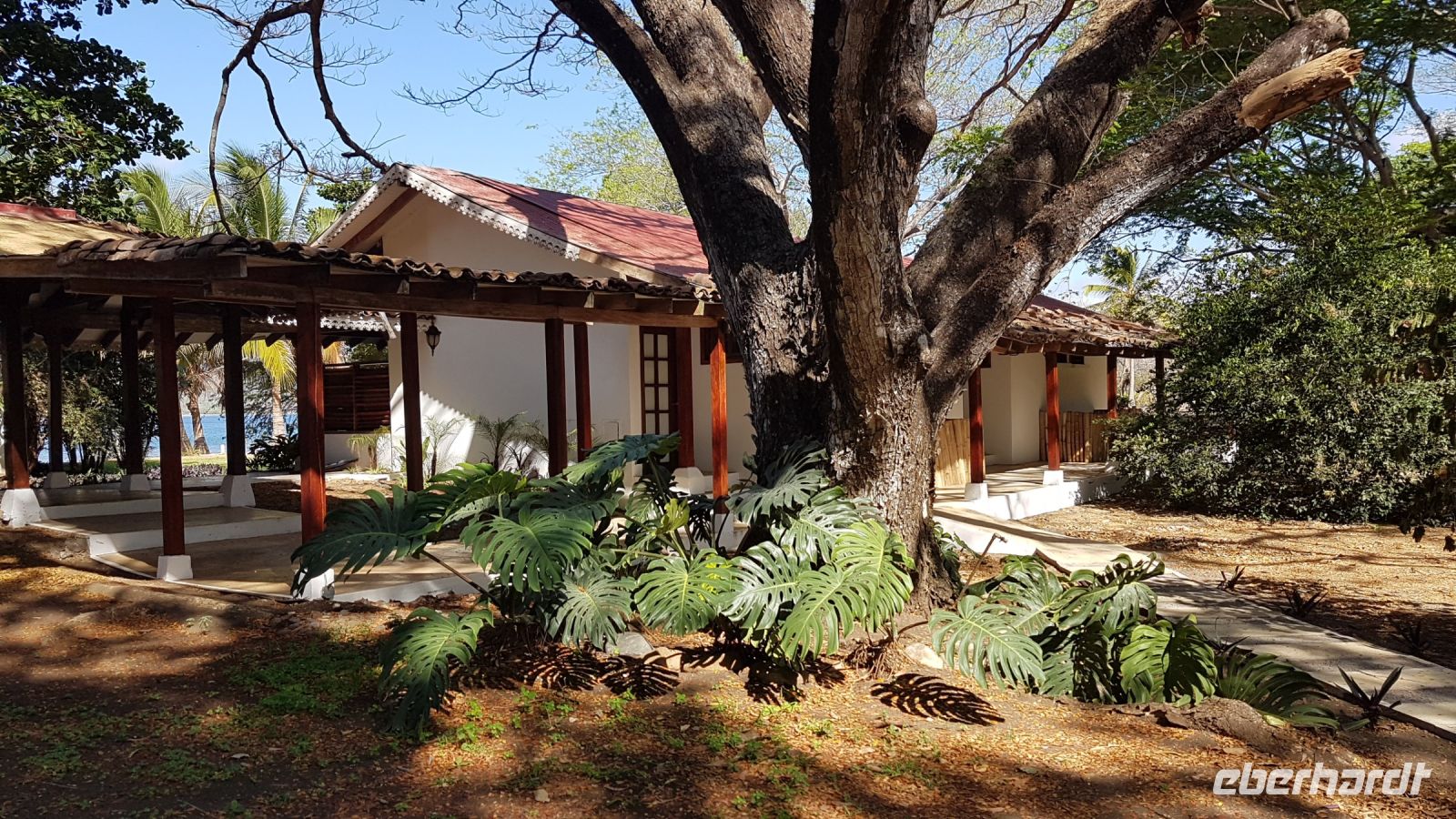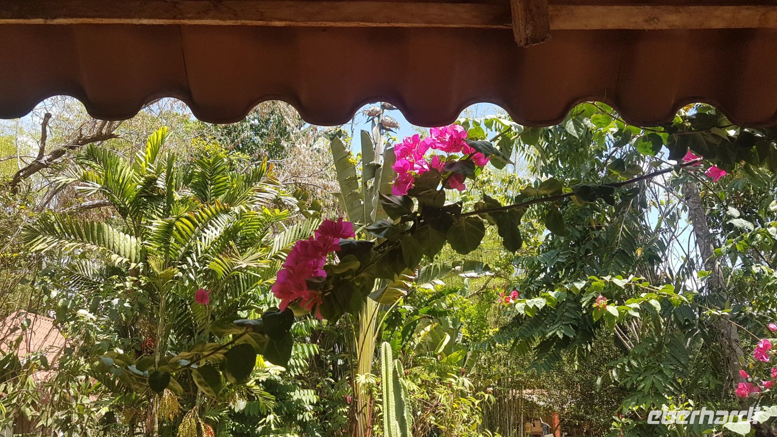 Nach dem Frühstück begann unsere Fahrt nach Boca Chica. Wir verließen die Halbinsel Azuero wieder und erreichten bald wieder die Panamericana, der wir eine ganze Zeit in Richtung Westen folgten. Unterwegs begleiteten uns natürlich wieder verschiedenste Pflanzenarten, besonders der Goldtrompetenbaum mit seinen leuchtend gelben Blüten sticht besonders ins Auge in seiner Pracht. Gegen Mittag erreichten wir den Ort Las Lajas. Hier kehrten wir ein in das Restaurant „Naturalmente Pizza“. Das kleine Restaurant liegt in einem wunderschön angelegten Garten mit Bananen- und Ananaspflanzen und herrlich blühenden Bougainvilleas. Das Beste war allerdings das Essen, das wir hier genießen konnten, gegrilltes Hühnchen oder vegetarische Lasagne, das von der Besitzerin, die aus der Schweiz stammte, hervorragend zubereitet worden war. Auch eine neue Frucht lernten wir kennen, die hier gleich hinter der Küche gewachsen war: Granadía, eine Art Maracuja, aber viel größer und oval geformt.