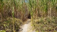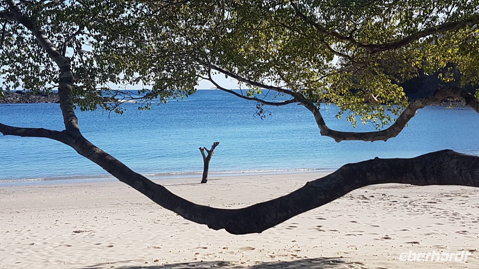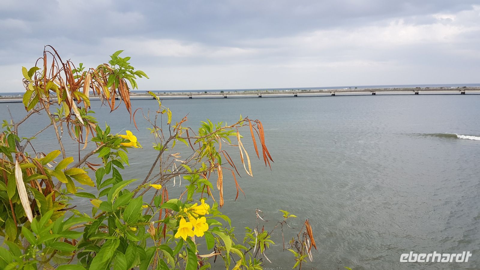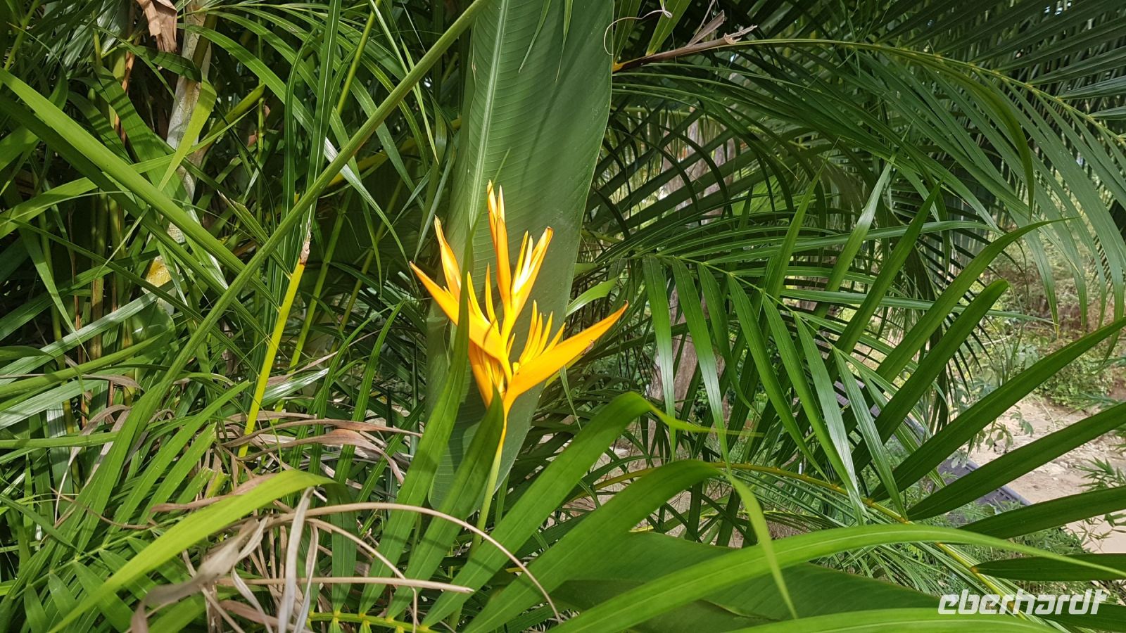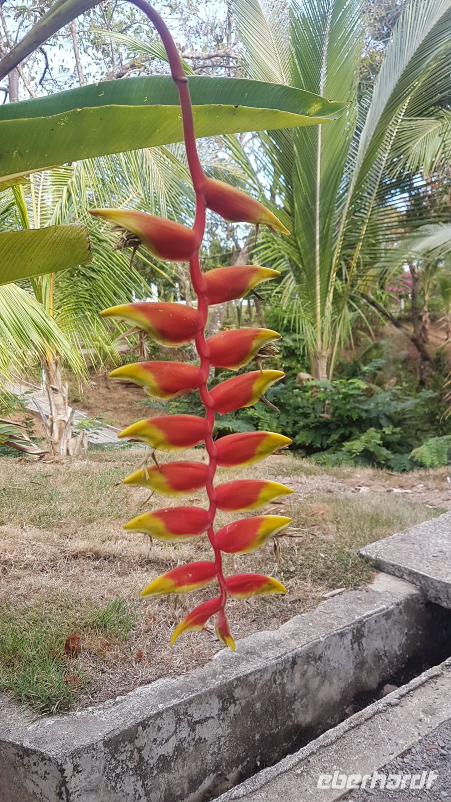 Nach dem Frühstück begann unsere Fahrt nach Boca Chica. Wir verließen die Halbinsel Azuero wieder und erreichten bald wieder die Panamericana, der wir eine ganze Zeit in Richtung Westen folgten. Unterwegs begleiteten uns natürlich wieder verschiedenste Pflanzenarten, besonders der Goldtrompetenbaum mit seinen leuchtend gelben Blüten sticht besonders ins Auge in seiner Pracht. Gegen Mittag erreichten wir den Ort Las Lajas. Hier kehrten wir ein in das Restaurant „Naturalmente Pizza“. Das kleine Restaurant liegt in einem wunderschön angelegten Garten mit Bananen- und Ananaspflanzen und herrlich blühenden Bougainvilleas. Das Beste war allerdings das Essen, das wir hier genießen konnten, gegrilltes Hühnchen oder vegetarische Lasagne, das von der Besitzerin, die aus der Schweiz stammte, hervorragend zubereitet worden war. Auch eine neue Frucht lernten wir kennen, die hier gleich hinter der Küche gewachsen war: Granadía, eine Art Maracuja, aber viel größer und oval geformt.