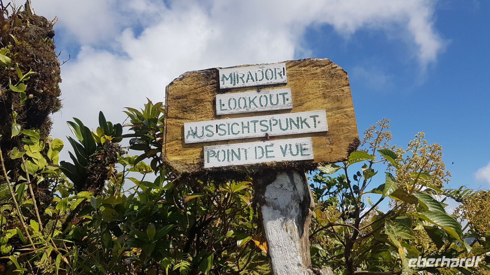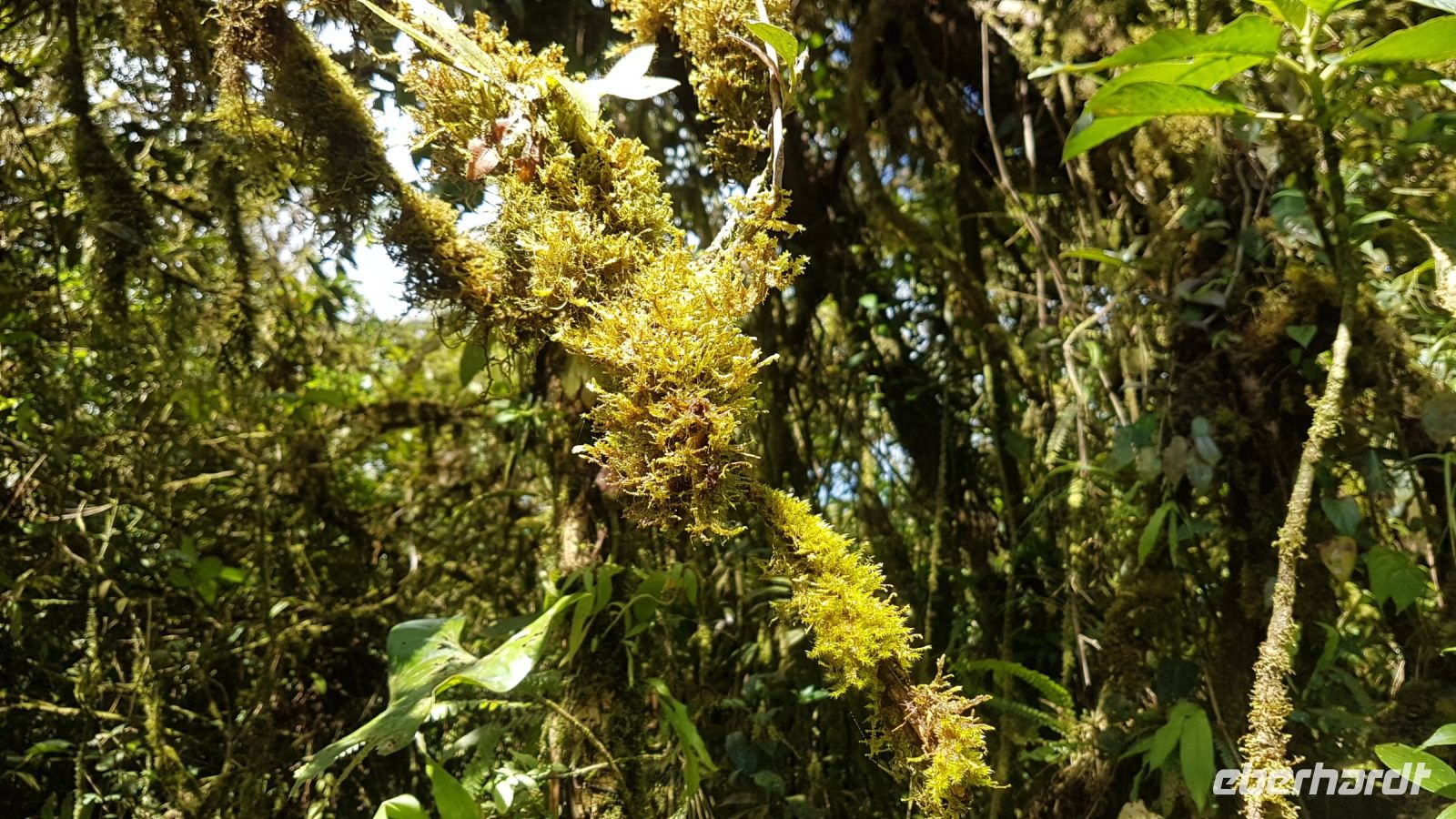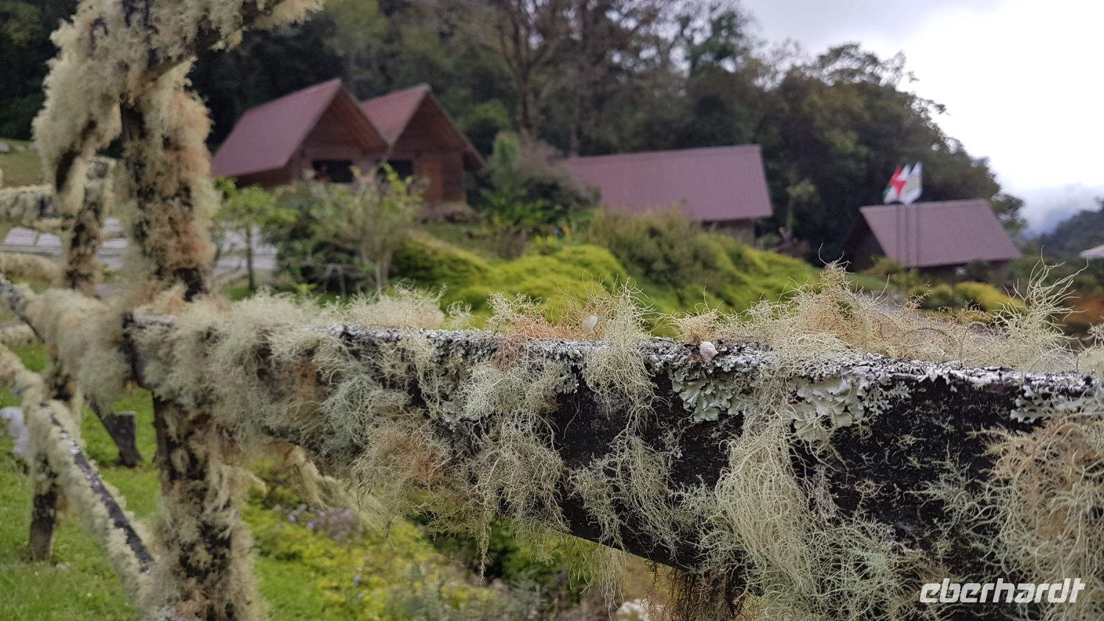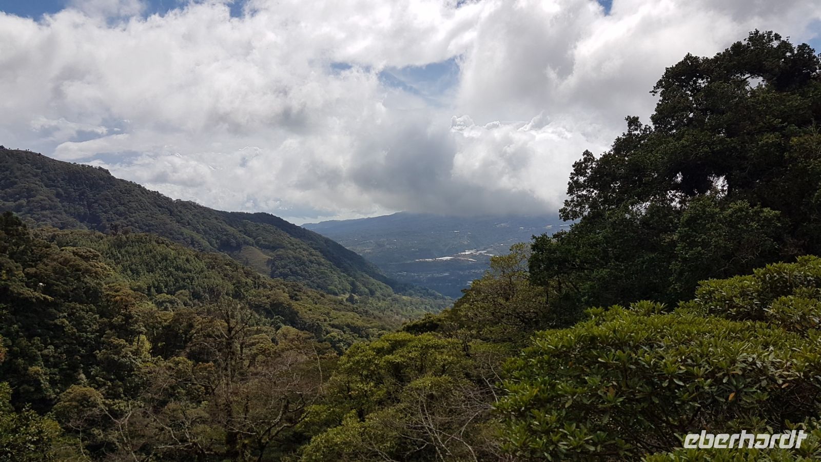 Nachdem unsere Koffer wieder auf dem Dach unseres Busses verstaut worden waren, begann unsere Fahrt von Boca Chica nach Boquete in die Berge. An einem Supermarkt in David legten wir eine Pause ein, wir konnten uns wieder mit Getränken für die Weiterfahrt versorgen. Unterwegs tauchte nach einiger Zeit der höchste Berg Panamas auf: der Barú. Er hat eine Höhe von 3.475 Metern. Gegen Mittag erreichten wir das Städtchen Boquete, das als Ausgangspunkt für Touren in die Berge sehr beliebt ist. Noch über der Stadt befindet sich in einer Entfernung von etwa fünf Kilometern das Boquete Tree Trek Mountain Resort, unser Hotel für die nächsten zwei Nächte. Unser Aufenthalt hier begann mit einem sehr guten Mittagessen. Unsere Reiseleiterin Fina verabschiedete sich für die nächsten Tage, erst in Panama Stadt würden wir sie wieder sehen. Im Anschluss begleitete uns Louis hinaus aus dem Gelände des Hotels in den direkt angrenzenden Nebelwald. Er ist Guide im Hotel und führte uns über üppig grüne Pfade durch den Wald, sechs Hängebrücken über Bäche, Schluchten und Täler mussten überwunden werden. Wir sahen und fotografierten verschiedenste Pflanzen, die sich an den Bäumen und auf dem Boden in Hülle und Fülle ausgebreitet hatten, wie Bromelien, Orchideen, Monstera, Baumfarn, Flechten und Moose und natürlich zahlreiche exotische Blüten in zumeist kräftigen Farben. Der restliche Tag stand uns zur freien Verfügung. Einige erkundeten die Gartenanlage des Resorts, andere fuhren noch einmal hinunter nach Boquete. Am Abend trafen sich einige Gäste unserer Gruppe zum gemeinsamen Abendessen im Tree Trek Restaurant. Unsere neue Reiseleiterin Clara war inzwischen auch im Hotel eingetroffen und kam zum Abendessen hinzu.