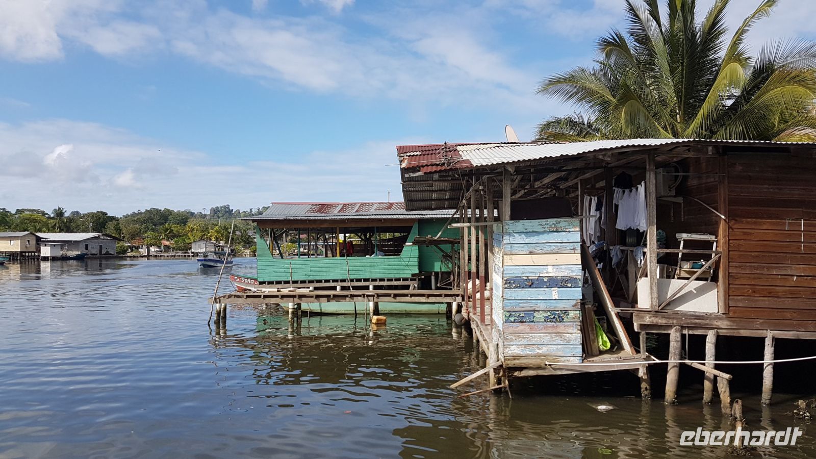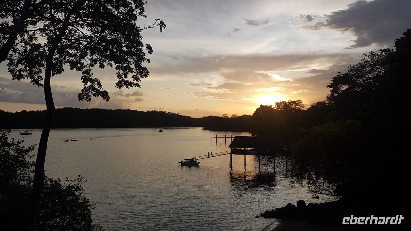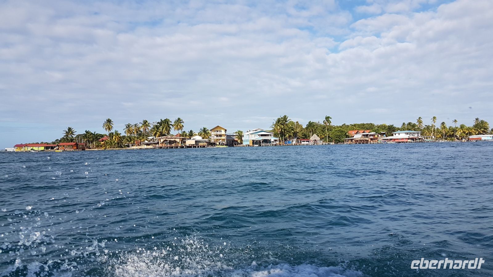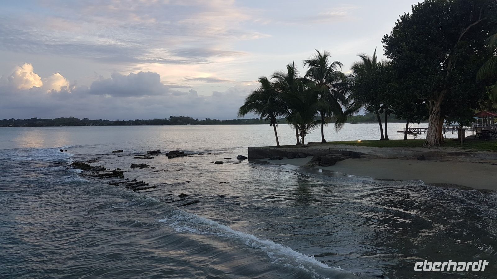 Nach kurzer Fahrt erreichten wir den Hafen von Almirante. Unser Gepäck wurde vom Bus in ein Schnellboot geladen, wir stiegen ebenfalls ein und sausten mit hoher Geschwindigkeit vom Festland hinüber auf die Insel Colon. Dort angekommen, wurden wir von zwei Kleinbussen erwartet, unser Gepäck wurde erneut umgeladen und so erreichten wir bald unser Hotel Tortuga in Bocas del Toro. Wir genossen den restlichen Nachmittag und badeten in der Karibik oder ruhten uns ein wenig von der anstrengenden Anreise aus. Am Abend sahen wir uns alle wieder im Restaurant des Hotels, das sich auf einer Art Seebrücke über dem Wasser der Karibik befindet. Wir ließen den Abend bei karibischer Musik und Meeresrauschen ausklingen.