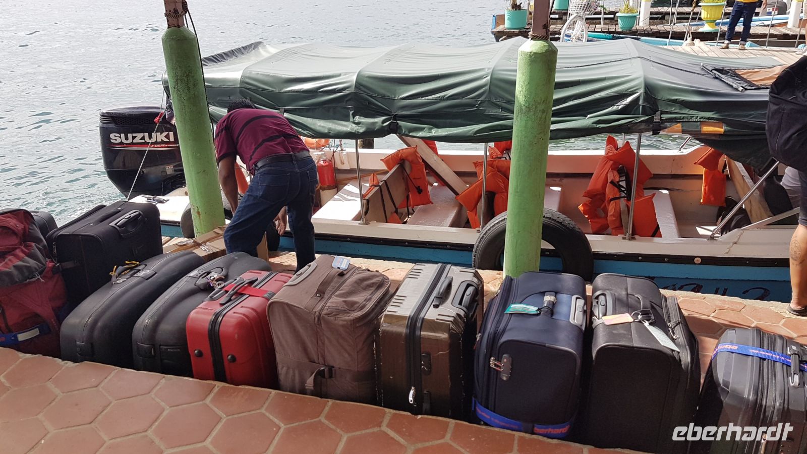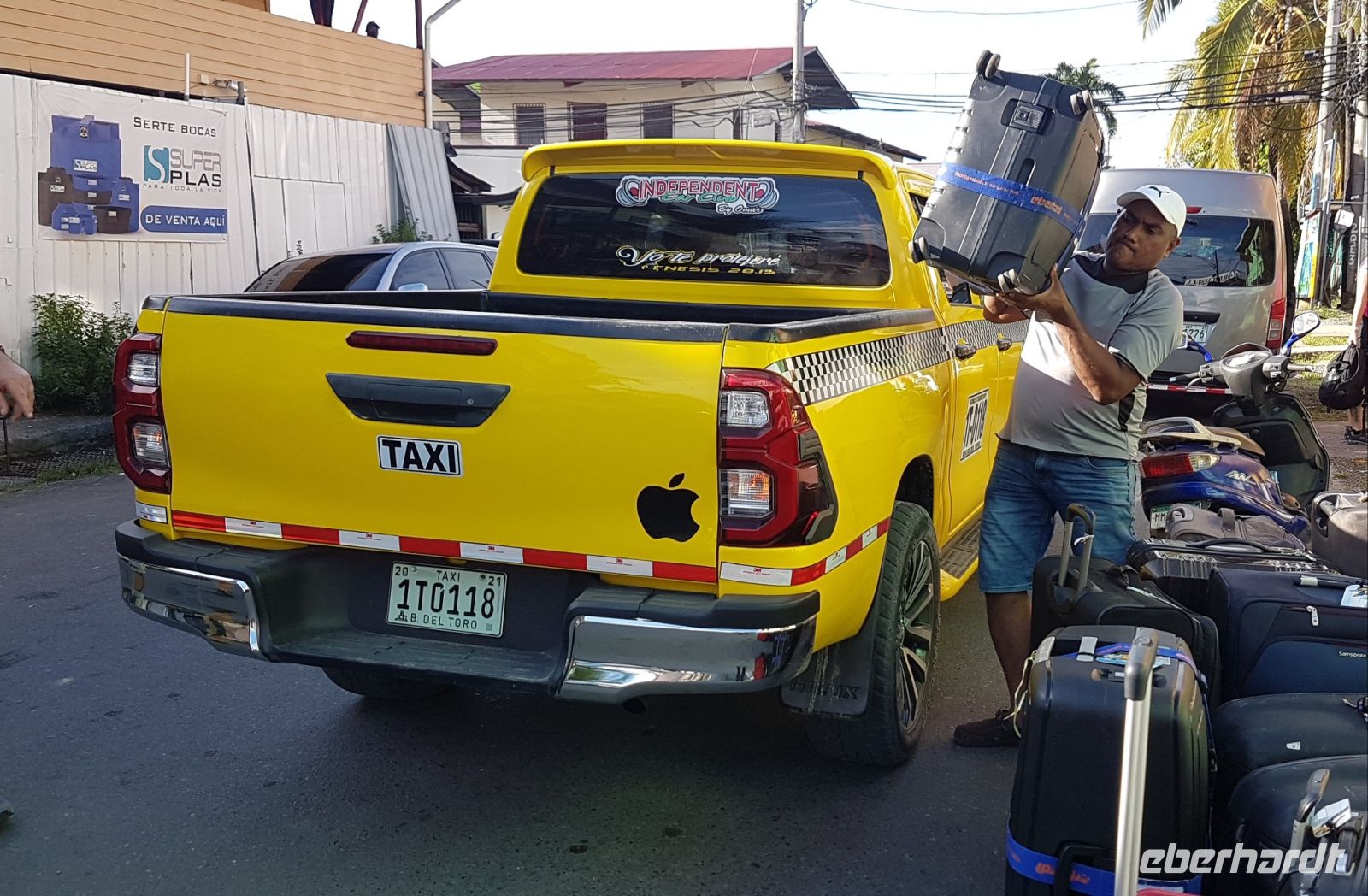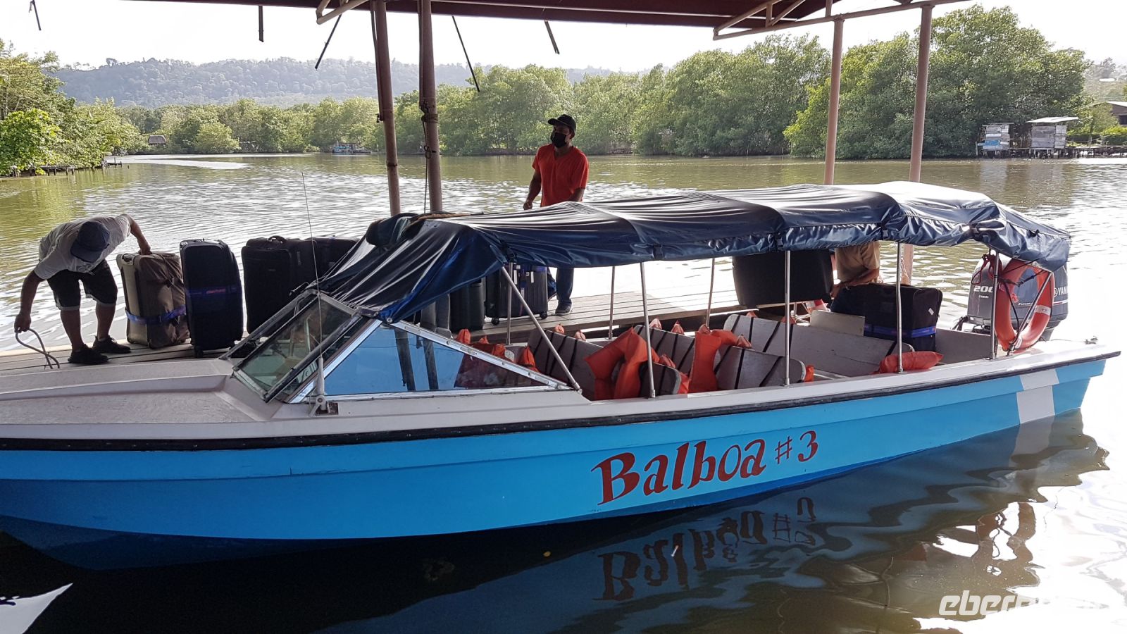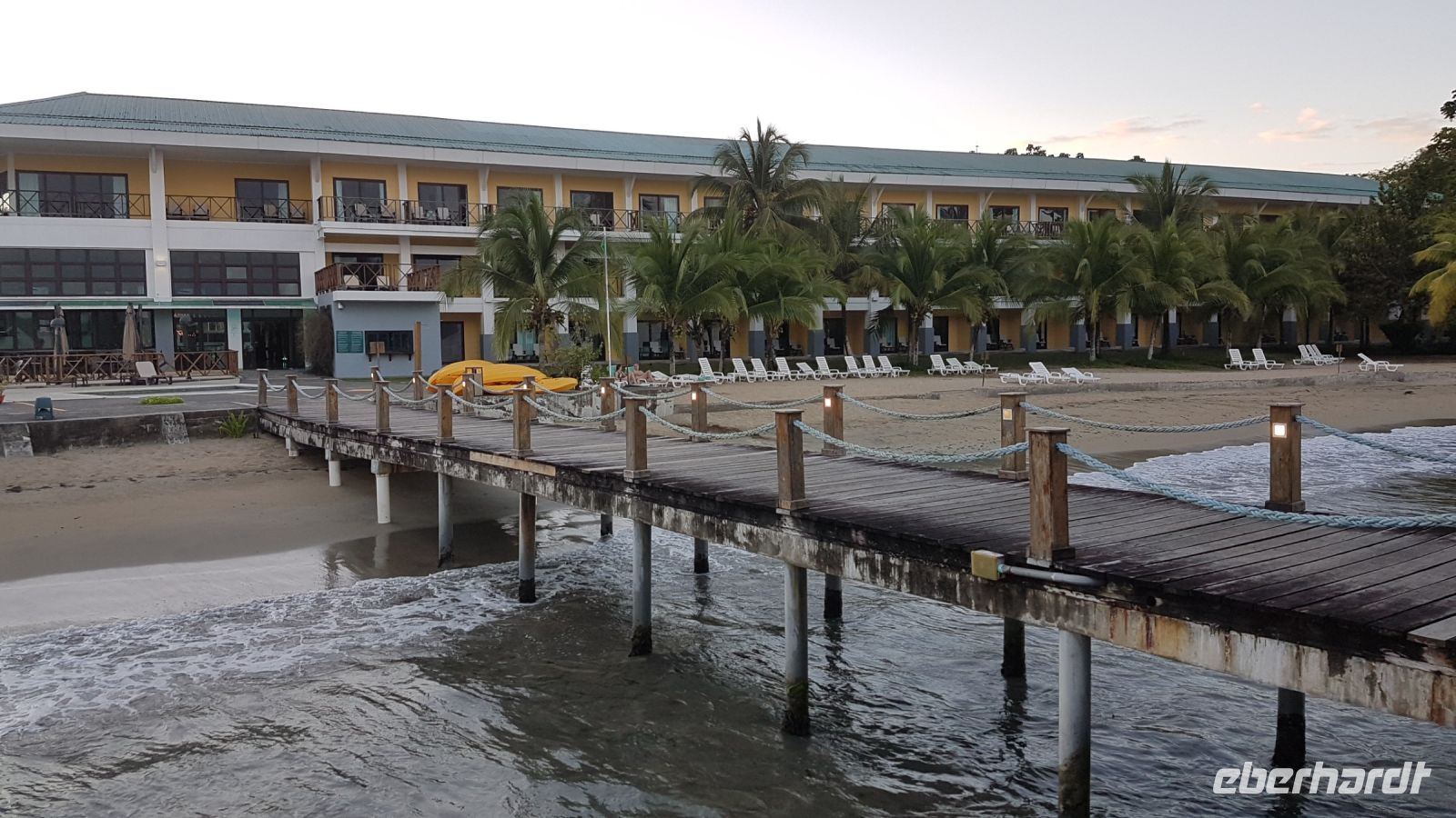 Nach kurzer Fahrt erreichten wir den Hafen von Almirante. Unser Gepäck wurde vom Bus in ein Schnellboot geladen, wir stiegen ebenfalls ein und sausten mit hoher Geschwindigkeit vom Festland hinüber auf die Insel Colon. Dort angekommen, wurden wir von zwei Kleinbussen erwartet, unser Gepäck wurde erneut umgeladen und so erreichten wir bald unser Hotel Tortuga in Bocas del Toro. Wir genossen den restlichen Nachmittag und badeten in der Karibik oder ruhten uns ein wenig von der anstrengenden Anreise aus. Am Abend sahen wir uns alle wieder im Restaurant des Hotels, das sich auf einer Art Seebrücke über dem Wasser der Karibik befindet. Wir ließen den Abend bei karibischer Musik und Meeresrauschen ausklingen.