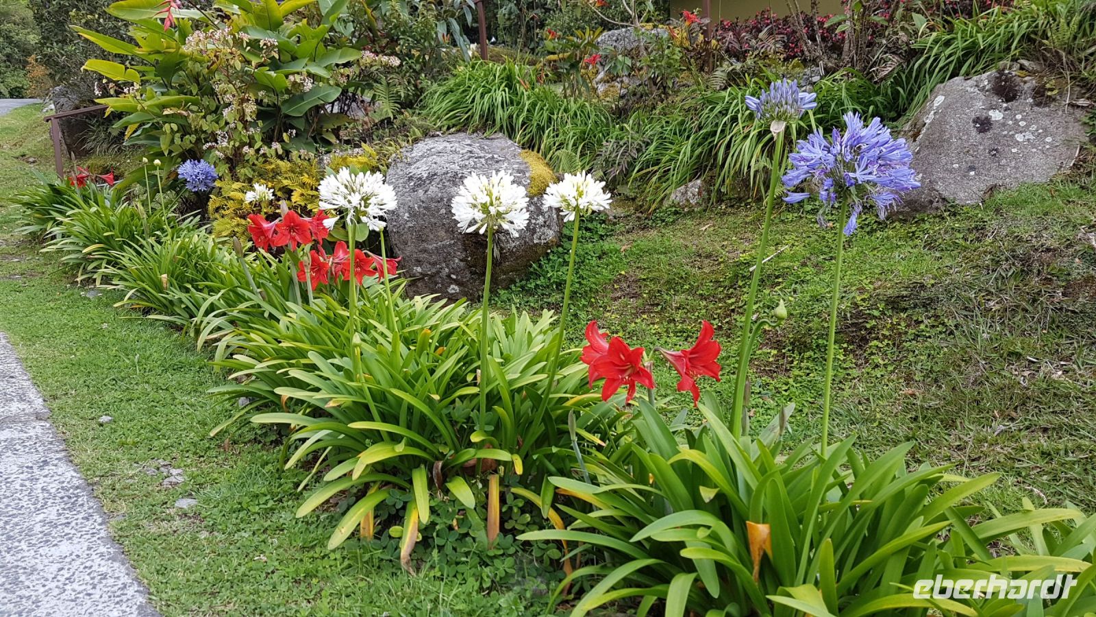 Nach unserer Wanderung fuhren wir in den Ort Boquete hinein, ließen uns ein Mittagessen in einem hübschen Restaurant schmecken und bummelten im Anschluss durch das Zentrum von Boquete, sahen den Handwerkermarkt und die Blumenmesse. Wir probierten Erdbeeren, die hier besonders gut schmecken, sie kommen aus der Region. Einige unserer Gruppe probierten am Nachmittag Canopy (ZIP line) und sausten an Stahlseilen über die Baumkronen des Nebelwalds.