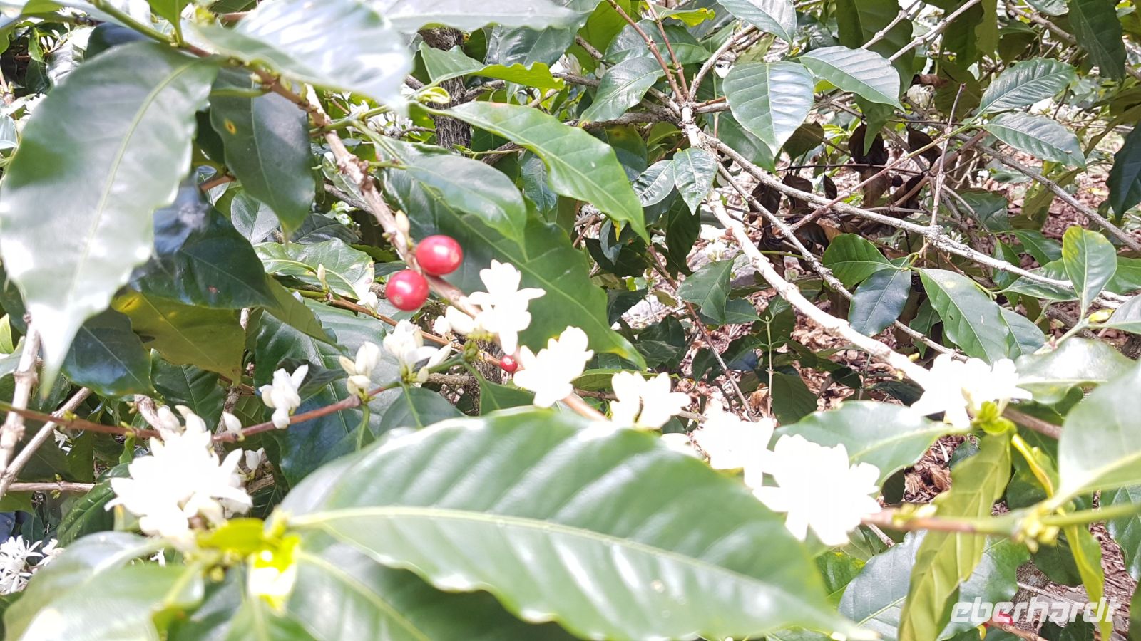 Wir fuhren hinab in den Ort Boquete, erfuhren viel über die Einwohner und die verschiedenen Ortsteile. Wohngebiete sind zum Beispiel das Blumental, wo es natürlich viele schöne Blumen zu sehen gibt oder das Orange-Tal. Diesen Namen hat das Gebiet von den zahlreichen Poro-Bäumen bekommen, die das gesamte Tal während ihrer Blütezeit in ein kräftiges Orange tauchen. Diese Bäume mit ihren kleinen Blättern geben dem darunter wachsenden Kaffee eine gute Mischung aus Schatten und Sonne, deshalb sind sie bei den Kaffeebauern sehr beliebt.