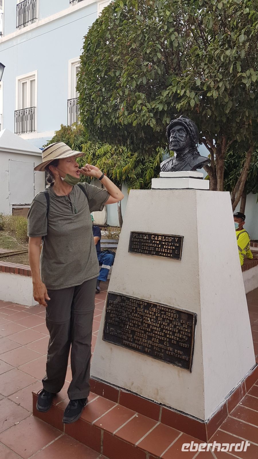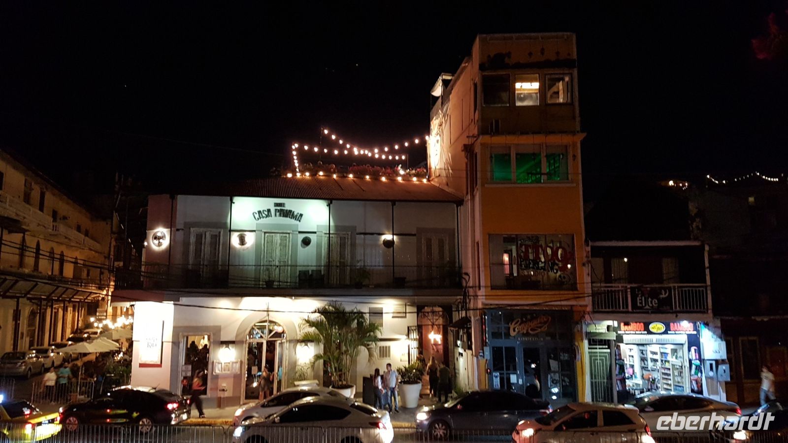 Heute verließen wir unser Hotel auf der Insel Colon und setzten mit dem Boot über auf das Festland nach Almirante. Dort wurde unser Gepäck wieder auf das Dach eines Busses verladen und nach kurzer Fahrt erreichten wir Changuinola, die größte Stadt in der Region. Wir verabschiedeten uns von unserer Reiseleiterin Clara und flogen mit einer kleinen Maschine von Air Panama nach Panama Stadt zurück. Fina erwartete uns am Ausgang des Flughafens, wir bestiegen unseren Bus und fuhren in die Altstadt. Im Hotel Casa Panama würden wir unsere letzte Nacht in Panama auf dieser Reise verbringen. Doch zunächst ließen wir uns ein sehr gutes Mittagessen auf der Dachterrasse des Hotels schmecken. Wir bekamen unsere Zimmerschlüssel und konnten schon bald danach mit Fina zu einem Bummel durch die Altstadt Panamas aufbrechen. Wir sahen zahlreiche Gebäude, die aus der kolonialen Vergangenheit stammen. Der restliche Abend stand uns zur freien Verfügung und so hatten wir Gelegenheit, das bunte Leben am Abend in der Metropole Panama City zu erfahren. Einige gingen noch auf einen Drink in eine Bar, andere bummelten durch die lebhaften Gassen der Altstadt oder genossen die Aussicht auf die Skyline der modernen Hauptstadt Panamas.