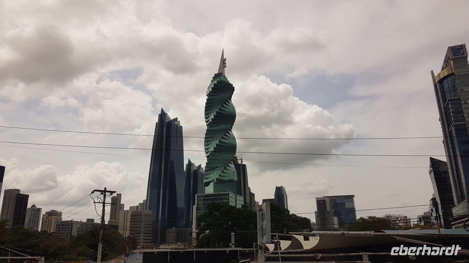 Der letzte Tag unserer Reise war angebrochen. Im Restaurant Nomada.eatery ließen wir uns ein kräftiges Frühstück mit frischen Säften und sehr gutem Kaffee schmecken. Bis zum Mittag konnten wir noch auf eigene Faust in Panama Stadt unterwegs sein. Danach trafen wir unsere Reiseleiterin Fina wieder und begaben uns auf eine kleine Stadtrundfahrt. Wir sahen die Wolkenkratzer des modernen Panama. Zahlreiche internationale Banken haben hier einen Sitz. Auch die erste Siedlung des alten Panama Stadt gibt es noch, aber heute nur noch als Ruinen: Panama Viejo. Die erste Stadt wurde im 17. Jahrhundert aufgegeben und an der Stelle der heutigen Altstadt wurde eine neue Stadt errichtet. Die Ruinen erzählen noch heute die Geschichte der ersten Bewohner von Panama Stadt, es gibt die Reste einer Kirche sowie die alte Steinbrücke über einen Fluss.