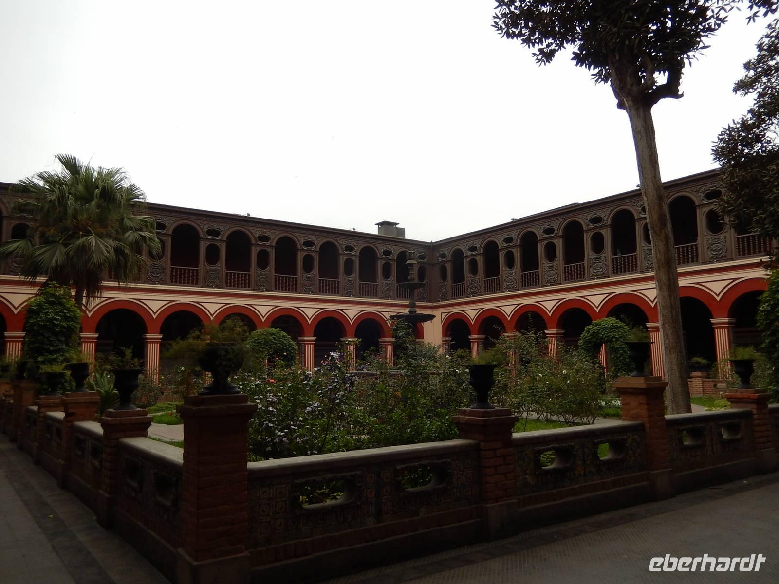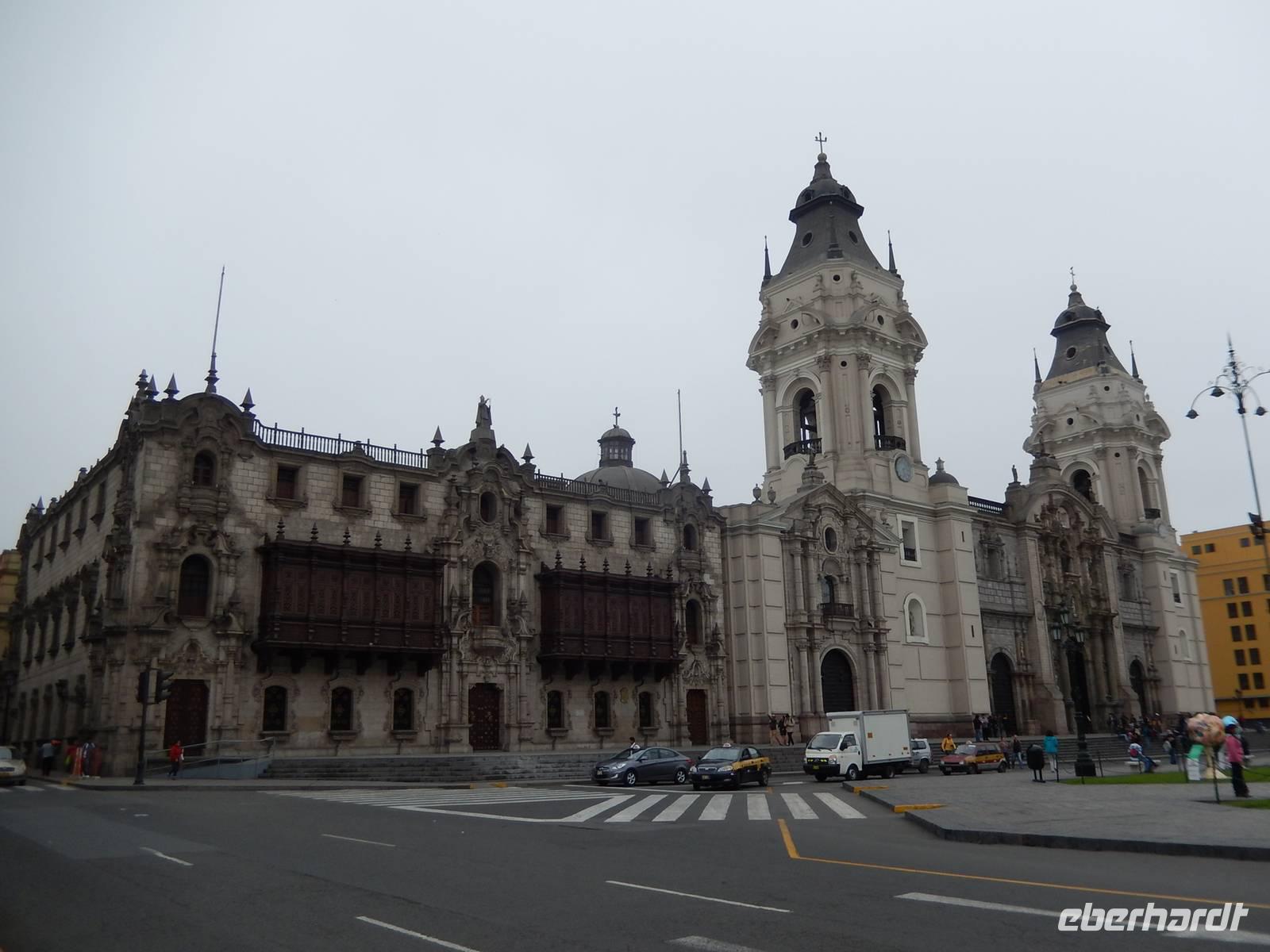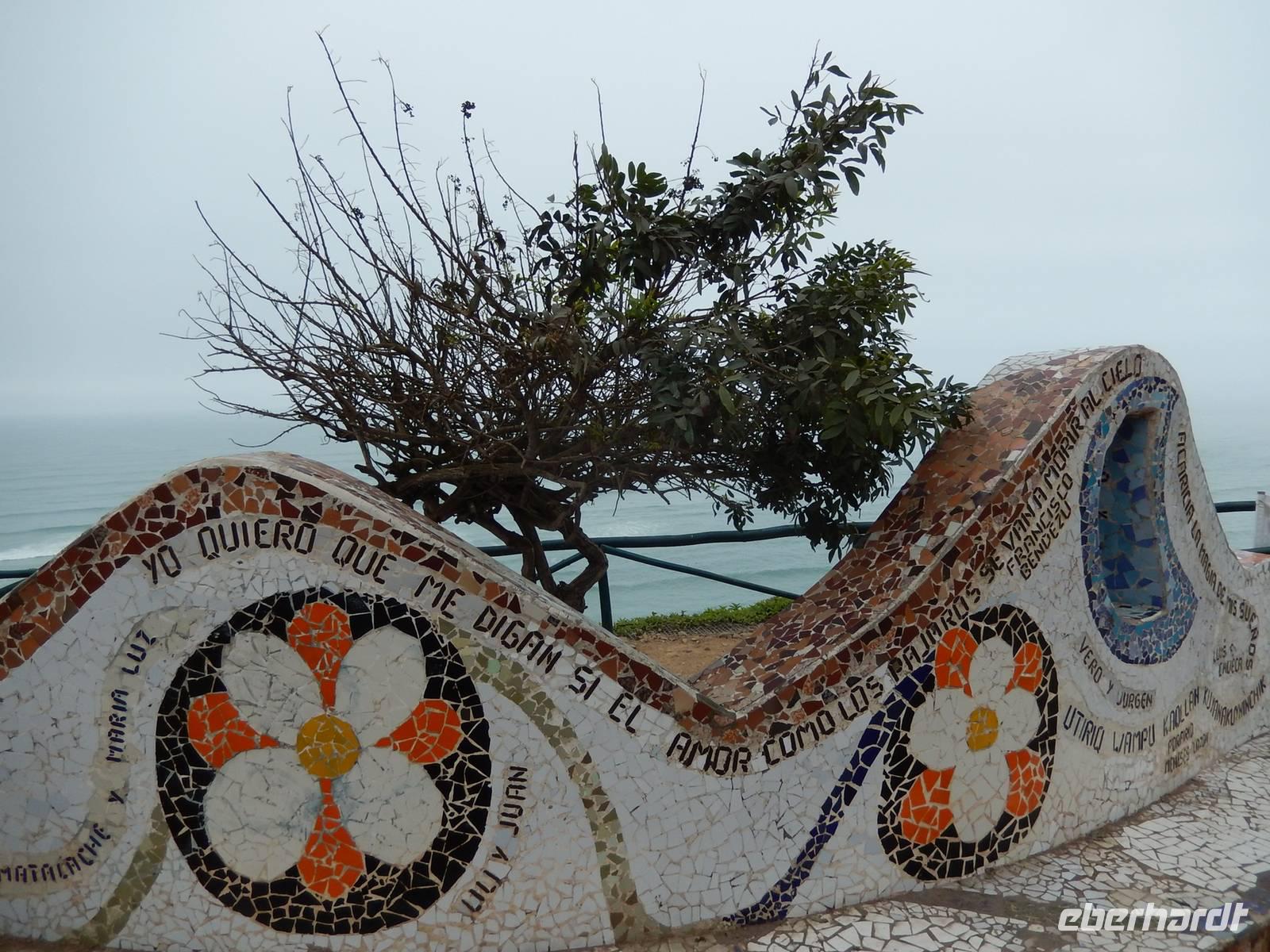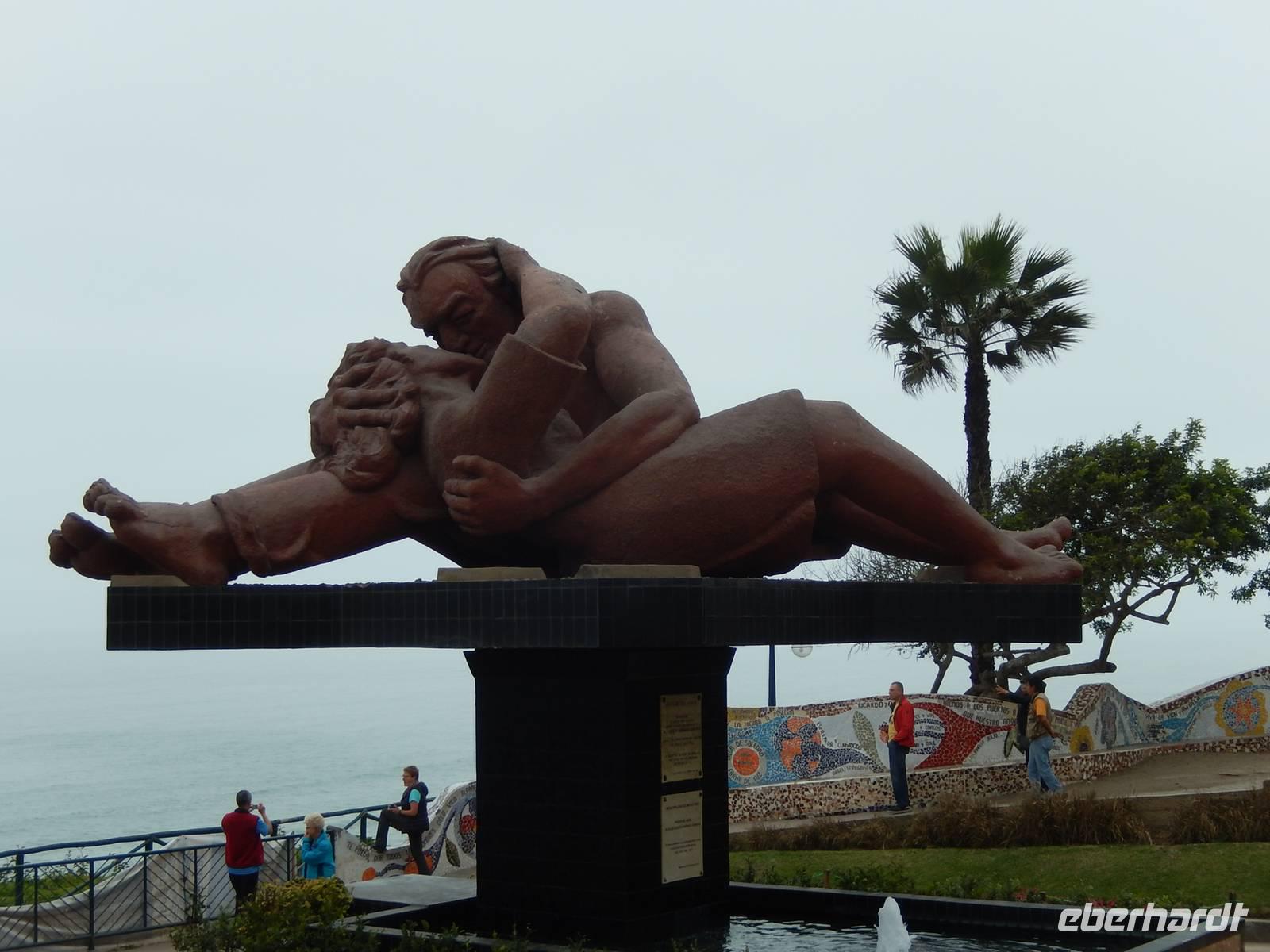 Trotz der Erschöpfung vom Vortag sind heute alle übermäßig pünktlich zum Frühstück und wie sich das gehört, werden gleich die ersten landdestypischen Speisen probiert. Um 09.00 Uhr erwarten uns dann Karina und unser Busfahrer Jorge Luiz zur Stadtrundfahrt in Lima. Vorher müssen wir aber alle erstmal unseren Pass von der Rezeption holen und kontrollieren, ob der Einreisezettel auch beiliegt. Dies wird unser Ritual für die kommenden Tage, in jedem Hotel Pass abgeben, am Folgetag wieder abholen, Zettel kontrollieren... Wir starten den Besuch der Millionenmetropole am Pazifik mit einem Fotostopp am Parque del Amor, einem kleinen Park in Miraflores dem der Güell-Park in Barcelona als Vorbild diente und der dominiert wird von einer riesigen Statue „Der Kuss". Die ersten Fotos schießen wir und dann fahren wir weiter in Richtung Altstadt, u.a. vorbei an einem riesigen Pyramidenkomplex, der noch aus der Zeit der Besiedlung des heutigen Gebietes von Lima stammt. Das 28 Meter Hohe Bauwerk diente als Opferstätte und wurde größtenteils aus Lehnziegeln geschaffen. Karina füttert uns mit Informationen zur Geschichte der Stadt vor allem auch aus der Zeit als Lima ein gefährliches Pflaster war und sich die terroristischen Vereinigungen von Tupac Amaru und Senduro luminoso erbitterte Kämpfe lieferten, die Mehrheit der Bevölkerung darum aus der Innenstadt floh und Lima auch die Beinamen wie „die Hässliche" oder „die Schreckliche" trug. Vorbei am Parque de la Exposicion, dem Plaza Miguel Grau und dem Justizpalast fahren wir nun zum Plaza Mayor, dem Zentrum der Altstadt. Uns bietet sich ein fantastisches Ensemble von Kathedrale, Erzbischöflichem Palast, Regierungspalast, Rathaus, Finanzamt etc. Wir stoppen für Fotos und beginnen dann einen kleinen Spaziergang mit Karina, der uns u.a. vorbei am ehemaligen Postamt zuerst zum noch in Betrieb befindlichen Dominikaner-Kloster „Heiligtum der Heileigen Rosa von Lima" führt. Karina führt uns und neben handwerklichen Meisterleistungen beeindruckt vor allem der wunderschöne Patio im Inneren der Anlage, die altehrwürdige Bibliothek mit über 23.000 - teils original erhaltenen - Büchern und natürlich die Kirche an sich. Besonderer sportlicher Höhepunkt des Morgens wird die Besteigung des Glockenturms, von dem man einen super Rundblick auf die Stadt genießen kann, wenn es nicht gerade Nebel hat. Nach dem Abstieg und noch ein paar Besichtigungen, beginnen wir gemütlich über eine Fußgängerzone zum Plaza de San Martin zu schlender, ein prunkvoller Platz zu Ehren des Gründers Perus im Jahre 1821. Hier besuchen wir das ehrwürdige Hotel Bolivar und genießen eine alkoholische Spezialität des Landes - einen Pisco Sour, bestehend aus Pisco (spezieller peruanischer Schnaps aus Traubensaft gewonnen), Limettensaft, Eiweiß und Sirup. Alle finden es echt lecker, auch wenn der Alkohol bei fehlendem Mittagessen und einsetzender Sonne die Müdigkeit befördert. Nebenbei lernen wir mit „Arriba - Abajo - Al Centro y al dentro" auch gleich unseren ersten peruanischen Trnkspruch. Nach dem flüssigen Pausenbrot geht es schnell in den Bus und Richtung Paracas. Wir fahren nach Süden auf der Panamericana, einer der bekanntesten Straßen weltweit. Leider geht die Romantik etwas verloren angesichts voller Straßen vor allem mit LKWs. Die Gegenseite der Panamericana ist über zig Kilometer für eine Ralley gesperrt, an der allerdings gefühlt nur 20 autos teilnehmen, dafür wird ein Kilometer langer Stau aber in Kauf genommen. Wir durchfahren sehr arme Regionen, wo die Häuser hauptsächlich verarmt, wie die Landbevölkerung generell, sind. Bis zum Mittagsstopp dann gegen 16.00 Uhr in Chinch ist noch etwas Zeit und so genießen wir bei einer Mütze Schlaf oder dem Blick auf die Pazifikküste erstmal die Ruhe im Bus. Aber „Langsam, langsam" - wie Karina ständig zu sagen pflegt - nähern wir uns einem zugegebener Maßen sehr chaotischen Stopp an einer Rastmöglichkeit im Städtchen Chincha. Nach unserem Erstkontakt mit Empanadas ist es nicht mehr soweit bis zum Übernachtungsort Paracas. Dieser liegt direkt im Naturschutzgebiet und wir beziehen ein traumhaftes Hotel am Strand mit wundervollem Pool. Jenny, Eva und ich nutzen natürlich dieses Angebot und genießen, wenn auch teilweise bibbernd, einen super Sonnenuntergang überm Meer direkt aus dem Pool heraus. Das gemeinsame Abendessen ist auch in allen Gängen ein Genuss und so gehen wir beseelt zu Bett, denn morgen erwartet uns das erste Riesen-Highlight der Reise....