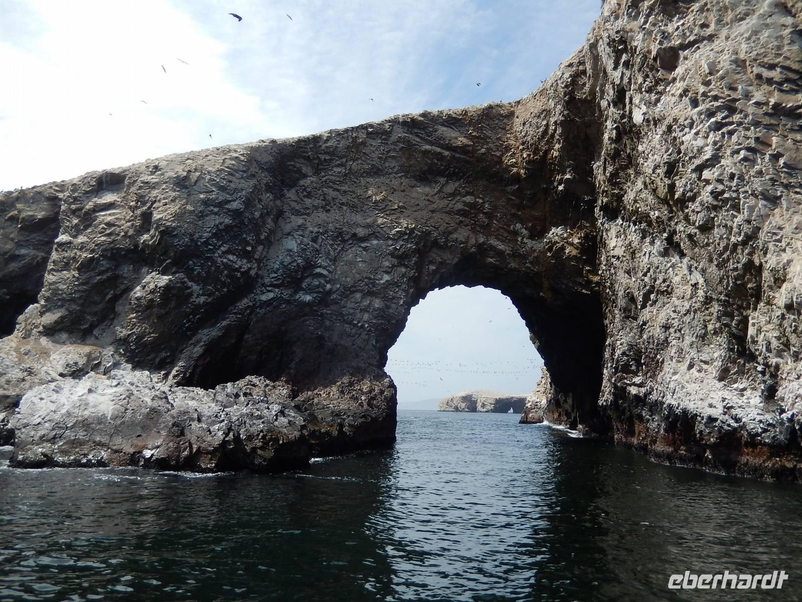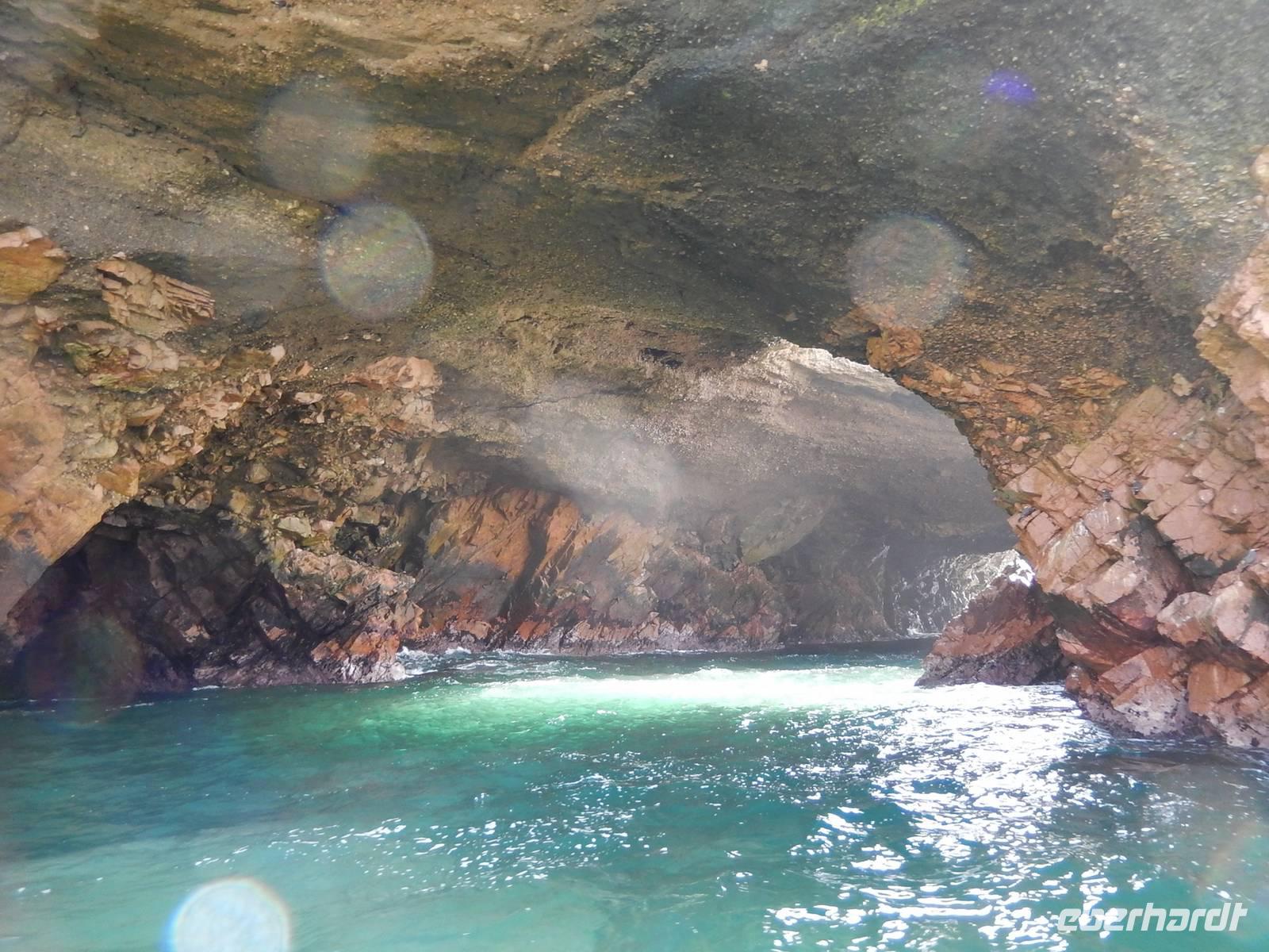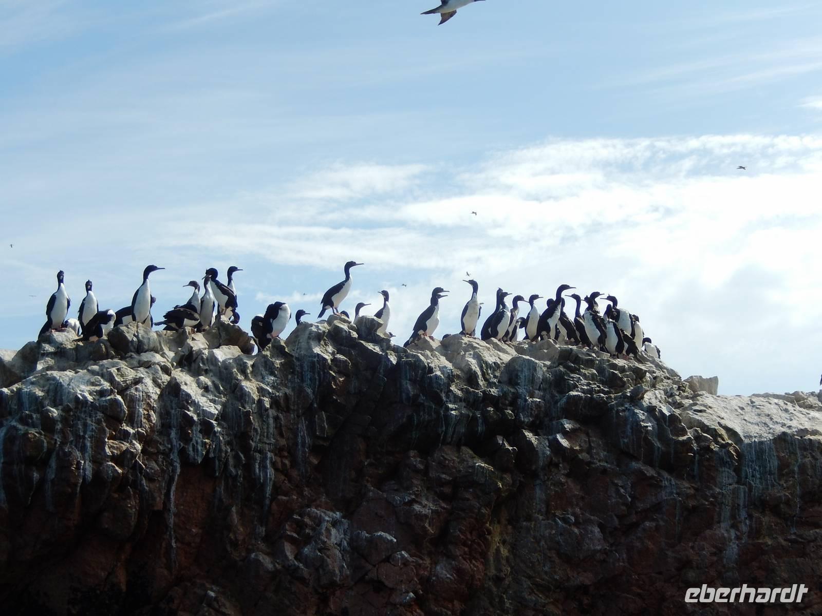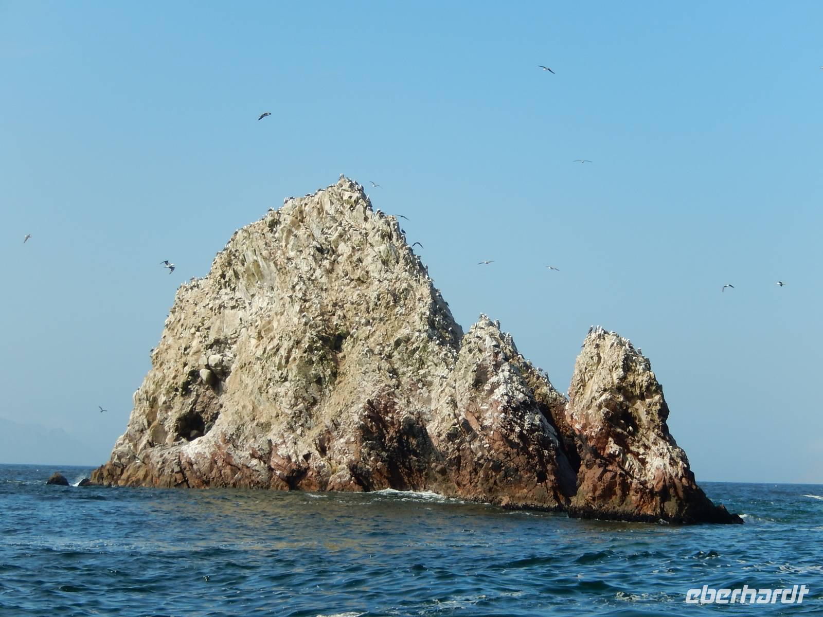 Der Tag steht unter dem Motto: Peru, zu Wasser, zu Land und aus der Luft. Heute müssen wir etwas eher raus, denn die Ballestas-Inseln erwarten unseren Besuch. Erstmal genießen wir das Frühstück und dann bringt uns der Bus in die Nähe des Bootsanlegers. Wir besteigen unser offenes Boot und unser Kapitän Giuliano und der Guide Eric gehen mit uns auf eine erstaunliche Fahrt. Direkt vom Hafen weg werden wir von Delfinen aus dem Hafen geleitet und die ersten Pelikane und Kormorane umfliegen unser Schnellboot. Die See ist ruhig und die Sonne strahlt, also ein idealer Tag für einen Ausflug auf den Pazifik. Der erste Stopp findet an „El Cantelabro" statt, einer riesigen Bilddarstellung an einem Fels, die den Nazcalinien ähnelt. Ob ein Zusammenhang besteht, konnte bisher noch nicht festgestellt werden. Nun geht die Fahrt aber weiter zu den Islas Ballestas mit ihrem unvorstellbaren Vogelreichtum. Faszinierend sind sowohl sowohl die Felsformationen aus bizarren Inseln, Grotten und Felsbögen als vor allem die unglaubliche Anzahl an Kormoranen, Pelikanen, Tölpel etc. Dazu gesellen sich jede Menge Seelöwen und an den Felsvorsprüngen sehen wir Krabben, Muscheln und andere Seefrüchte. Auch die Islas Ballestas zählen zu den sogenannten Guano-Inseln, die Peru zu einem gewissen Reichtum verhelfen. Bei Guano handelt es sich um getrocknete Vogel-Exkremente, die vor allem als Dünger nach Europa exportiert werden. Pro Kilo Guano kann man 1 US-Dollar verdienen und es gibt regelrechte Guano-Arbeiter, die für peruanische Verhältnisse gutes Geld verdienen. Allerdings widmen sie sich nur mit Hacke und Schaufel bewaffnet auch einer der gefährlichsten und gesundheitsschädigenden Jobs der Welt. Per Hand wird das Guano „geerntet" und verpackt und nicht selten erreichen die Arbeiter höchstens das 40. Lebensjahr. Warum können wir erahnen, denn neben der Staubentwicklung können wir die Hauptanteile an Ammoniak und Phosphor vor allem in der Nase spüren. Unser Kapitän umkreist die Inseln gemütlich und so bleibt für alle die Chance auf das beste Foto aller Bewohner - wir sind fasziniert. Warum wir heute die Kopfbedeckung nicht vergessen sollten, wird uns bei dem ein oder anderen „Guano-Regen" auch bewusst... Nach gute einer Stunde an den Inseln geht es rasant zurück in den Hafen und mit einem kleinen Präsent in der Tasche spazieren wir durch das kleine Örtchen zurück zum Hotel. Hier bleibt uns noch Freizeit, die die meisten zu einem weiteren Bad im Pool nutzen. Kurz nach Mittag heißt es dann Koffer verladen und Abfahrt zum Flughafen von Pisco, wo unser nächstes Abenteuer wartet.