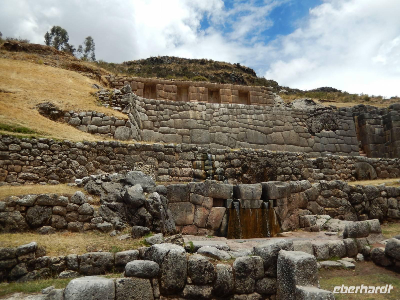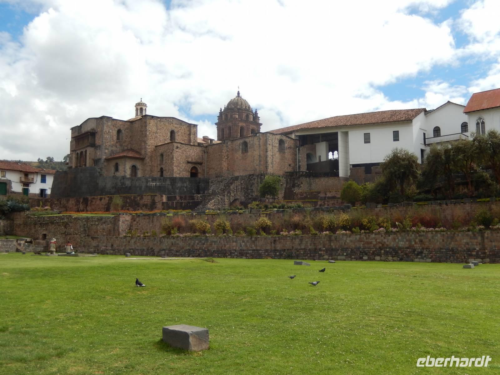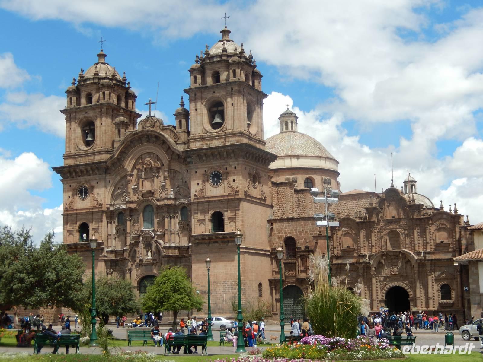Heute starten wir entspannt in den Tag, nicht ganz so früh erwartet uns Jorge zur Erkundung der Umgebung von Cusco und der Stadt selbst. Zuerst spazieren wir ein wenig durch das Viertel, wo unser Hotel liegt - San Blas. Dabei handelt es sich um ein Künstlerviertel mit allerlei kleinen Kunsthandwerksläden und einer schönen Kirche, Sankt Blasius, die vor allem berühmt ist für ihre Holzkanzel, die aus einem Stück geschnitzt wurde. Am Vormittag stehen dann ausführliche Besichtigungen zum Thema Inkas auf dem Programm, wobei eigentlich nur die Könige bzw. Herrscher der Völker als Inka bezeichnet wurden. Aber lassen wir es so, wie es die Mehrheit kennt und staunen wir zuerst über die „Festungsanlage" in Sacsayhuaman bzw. das was noch davon übrig ist, denn die Spanier haben während Ihrer Herrschaft doch mehrheitlich die großartigen Inka-Anlagen zerstört. Darum ist unser Reiseleiter Jorge auch gar nicht gut auf die Spanier zu sprechen. Apropos Jorge, der wäre heute beinahe zu spät gekommen, weil eine riesige Prozession in Cusco stattfindet, warum wir auch den Sonnentempel heute nicht besuchen können. Aber die in Südamerika notwendige Flexibilität lässt uns den Programmpunkt morgen nachholen, aber zurück zu den Inkas. Wir sehen in Sacsayhuaman fantastische Mauerformationen, bei denen man sich kaum vorstellen kann, dass es - selbst wenn es Tausende waren - von Menschenhand erschaffen wurde. Wir kraxeln auf einen Berg in der Anlage und genießen einen tollen rundumblick über Cusco. Noch immer machen uns Anstiege zu schaffen und wir ringen nach Luft, aber im Großen und Ganzen haben wir uns alle sehr gut an die Höhe angepasst. Einzig ein paar kleinere temporär beschränkte Ausfälle wegen Magenbeschwerden, die sich fast durch die ganze Gruppe ziehen, und eine gewisse Schlafunruhe in der Höhe vermelden wir als „Krankheitsfälle". Nach dem Abstieg in der Anlage und ausführlichen Ausführungen durch Jorge fahren wir zur nächsten Anlage nach Tambo Machay. Dabei handelt es sich um einen alten Wasseraltar der Inkas. Noch heute weiß niemand, wo die sprudelnde Quelle die wir sehen genau entspringt. Da uns das Wetter trotz schlechter Vorhersagen - auch wenn man darauf hier im Gebirge sowieso nicht allzu viel geben sollte - hold ist, klettern wir auf eine kleine Erhebung und können so schon unser nächstes Ziel entdecken. Die Fahrt dauert keine 5 Minuten und wir erreichen Puca Pucaru, diesmal vermutlich ein wirkliches Tambo, was so viel wie Ort bedeutet. Klein und wahrscheinlich für Soldaten und Läufer (die „Postboten" der Inkas) gedacht, aber so bekommen wir schon mal einen Eindruck wie die Siedlungen ausgesehen haben könnten. Letzter Inka-Programmpunkt für heute ist die Stelle Quenqo - das Labyrinth. Es ist nur eine ganz kleine Anlage, die ihren Namen voraussichtlich von einer Felsrinne hat, in deren Innerem man eine Art Sezier-, Opfer- oder Operationstisch gefunden hat. Nach diesen ausführlichen Besichtigungen haben wir uns unser Mittagessen redlich verdient. Dazu fahren wir in die Nähe des Plaza de Armas zurück und speisen lecker beim peruano-Italiener INCANTO. Nach der verdienten Pause geht es dann zur Besichtigung der Kathedrale, ein fantastisches Bauwerk mit vielen Gemälden, einem tollen Holz-Chor und einem Silberaltar. Eigentlich besteht der Komplex aus drei Teilen: die eigentliche Kathedrale wird flankiert von der ersten von den Spaniern errichteten Triumph-Kirche und einer Kapelle zu Ehren der Heiligen Familie. Jorge versucht uns in einer Stunde so viel wie möglich zu vermitteln, hauptsächlich beschränken wir uns dabei auf die Elemente des Synkretismus, der in der Kathedrale sehr häufig zu finden ist. Dabei handelt es sich quasi um die Verschmelzung zweier Religionen, in diesem Fall Katholizismus und Inka-Relegion. Am deutlichsten sichtbar wird dies bei der Darstellung des „Letzten Abendmahls" auf einem Gemälde. Jesus und seine Jünger haben hier keinen Fisch auf dem Tablett, sondern ein Meerschwein ... Nach dieser interessanten Führung haben wir Freizeit und wer noch nicht „pflastermüde" ist, erkundet die Altstadt rings um den Plaza de Armas mit ihren kleinen Gassen, zahllosen kleinen Märkten und weiteren sehenswerten Kirchen wie die Jesuiten-Kirche oder die Iglesia de La Merced. Die Abendgestaltung ist auch offen, doch trotz ausgiebigen Mittagessens trifft sich die Mehrheit um im Viertel San Blas, direkt am Hotel, im gestern entdeckten Restaurant Pacha Papa noch eine Kleinigkeit zu essen oder nur etwas zu trinken. Der eine oder andere lässt sich dann - animiert vom Gemälde in der Kathedrale - auch nochmals zur Spezialität Perus hinreißen und isst Meerschweinchen, welches aber im Gegensatz zur Region Arequipa hier nicht frittiert wird, sondern im Spezialofen gebacken...