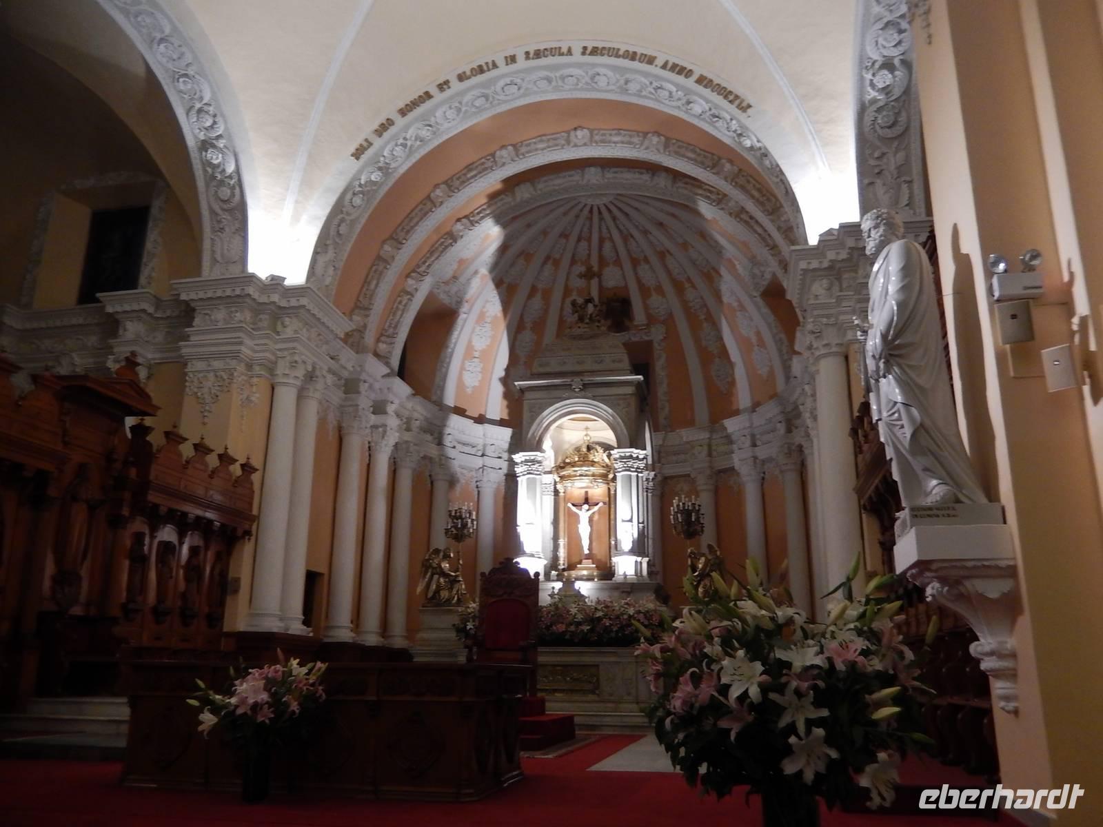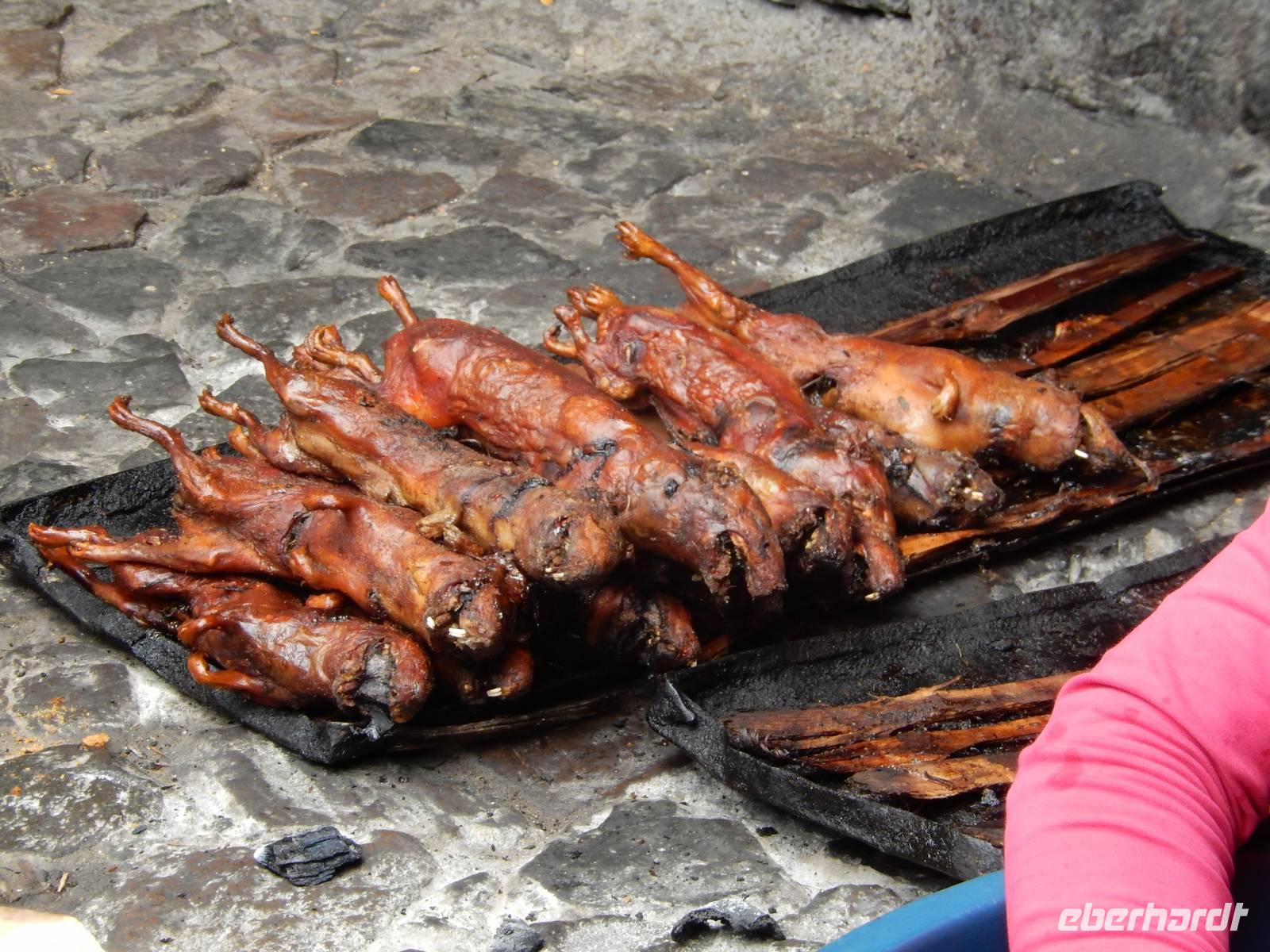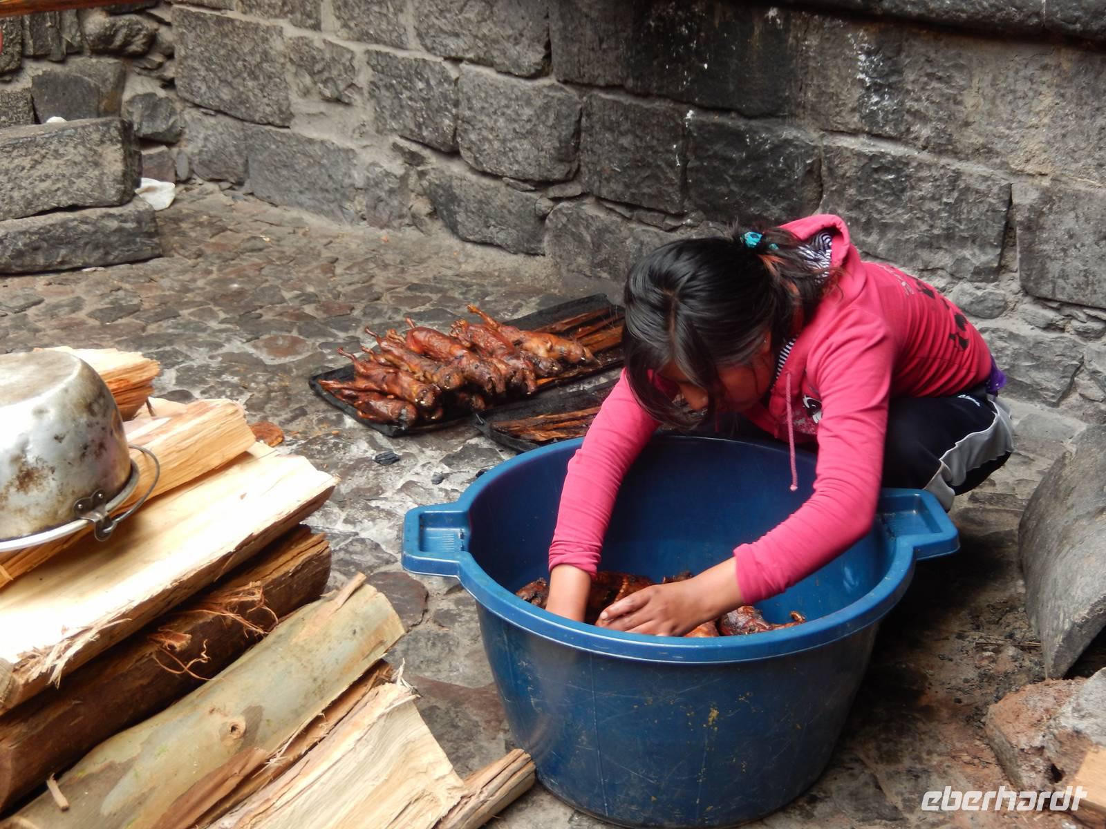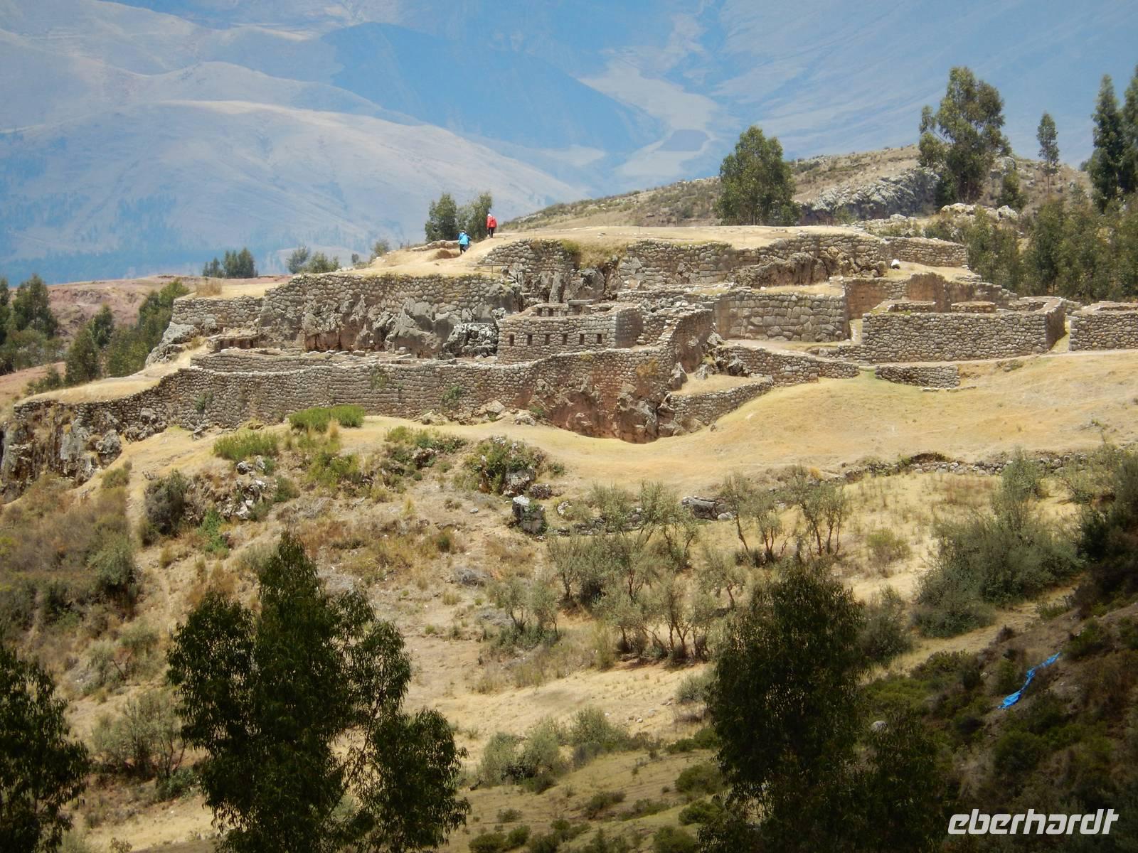 Heute starten wir entspannt in den Tag, nicht ganz so früh erwartet uns Jorge zur Erkundung der Umgebung von Cusco und der Stadt selbst. Zuerst spazieren wir ein wenig durch das Viertel, wo unser Hotel liegt - San Blas. Dabei handelt es sich um ein Künstlerviertel mit allerlei kleinen Kunsthandwerksläden und einer schönen Kirche, Sankt Blasius, die vor allem berühmt ist für ihre Holzkanzel, die aus einem Stück geschnitzt wurde. Am Vormittag stehen dann ausführliche Besichtigungen zum Thema Inkas auf dem Programm, wobei eigentlich nur die Könige bzw. Herrscher der Völker als Inka bezeichnet wurden. Aber lassen wir es so, wie es die Mehrheit kennt und staunen wir zuerst über die „Festungsanlage" in Sacsayhuaman bzw. das was noch davon übrig ist, denn die Spanier haben während Ihrer Herrschaft doch mehrheitlich die großartigen Inka-Anlagen zerstört. Darum ist unser Reiseleiter Jorge auch gar nicht gut auf die Spanier zu sprechen. Apropos Jorge, der wäre heute beinahe zu spät gekommen, weil eine riesige Prozession in Cusco stattfindet, warum wir auch den Sonnentempel heute nicht besuchen können. Aber die in Südamerika notwendige Flexibilität lässt uns den Programmpunkt morgen nachholen, aber zurück zu den Inkas. Wir sehen in Sacsayhuaman fantastische Mauerformationen, bei denen man sich kaum vorstellen kann, dass es - selbst wenn es Tausende waren - von Menschenhand erschaffen wurde. Wir kraxeln auf einen Berg in der Anlage und genießen einen tollen rundumblick über Cusco. Noch immer machen uns Anstiege zu schaffen und wir ringen nach Luft, aber im Großen und Ganzen haben wir uns alle sehr gut an die Höhe angepasst. Einzig ein paar kleinere temporär beschränkte Ausfälle wegen Magenbeschwerden, die sich fast durch die ganze Gruppe ziehen, und eine gewisse Schlafunruhe in der Höhe vermelden wir als „Krankheitsfälle". Nach dem Abstieg in der Anlage und ausführlichen Ausführungen durch Jorge fahren wir zur nächsten Anlage nach Tambo Machay. Dabei handelt es sich um einen alten Wasseraltar der Inkas. Noch heute weiß niemand, wo die sprudelnde Quelle die wir sehen genau entspringt. Da uns das Wetter trotz schlechter Vorhersagen - auch wenn man darauf hier im Gebirge sowieso nicht allzu viel geben sollte - hold ist, klettern wir auf eine kleine Erhebung und können so schon unser nächstes Ziel entdecken. Die Fahrt dauert keine 5 Minuten und wir erreichen Puca Pucaru, diesmal vermutlich ein wirkliches Tambo, was so viel wie Ort bedeutet. Klein und wahrscheinlich für Soldaten und Läufer (die „Postboten" der Inkas) gedacht, aber so bekommen wir schon mal einen Eindruck wie die Siedlungen ausgesehen haben könnten. Letzter Inka-Programmpunkt für heute ist die Stelle Quenqo - das Labyrinth. Es ist nur eine ganz kleine Anlage, die ihren Namen voraussichtlich von einer Felsrinne hat, in deren Innerem man eine Art Sezier-, Opfer- oder Operationstisch gefunden hat. Nach diesen ausführlichen Besichtigungen haben wir uns unser Mittagessen redlich verdient. Dazu fahren wir in die Nähe des Plaza de Armas zurück und speisen lecker beim peruano-Italiener INCANTO. Nach der verdienten Pause geht es dann zur Besichtigung der Kathedrale, ein fantastisches Bauwerk mit vielen Gemälden, einem tollen Holz-Chor und einem Silberaltar. Eigentlich besteht der Komplex aus drei Teilen: die eigentliche Kathedrale wird flankiert von der ersten von den Spaniern errichteten Triumph-Kirche und einer Kapelle zu Ehren der Heiligen Familie. Jorge versucht uns in einer Stunde so viel wie möglich zu vermitteln, hauptsächlich beschränken wir uns dabei auf die Elemente des Synkretismus, der in der Kathedrale sehr häufig zu finden ist. Dabei handelt es sich quasi um die Verschmelzung zweier Religionen, in diesem Fall Katholizismus und Inka-Relegion. Am deutlichsten sichtbar wird dies bei der Darstellung des „Letzten Abendmahls" auf einem Gemälde. Jesus und seine Jünger haben hier keinen Fisch auf dem Tablett, sondern ein Meerschwein ... Nach dieser interessanten Führung haben wir Freizeit und wer noch nicht „pflastermüde" ist, erkundet die Altstadt rings um den Plaza de Armas mit ihren kleinen Gassen, zahllosen kleinen Märkten und weiteren sehenswerten Kirchen wie die Jesuiten-Kirche oder die Iglesia de La Merced. Die Abendgestaltung ist auch offen, doch trotz ausgiebigen Mittagessens trifft sich die Mehrheit um im Viertel San Blas, direkt am Hotel, im gestern entdeckten Restaurant Pacha Papa noch eine Kleinigkeit zu essen oder nur etwas zu trinken. Der eine oder andere lässt sich dann - animiert vom Gemälde in der Kathedrale - auch nochmals zur Spezialität Perus hinreißen und isst Meerschweinchen, welches aber im Gegensatz zur Region Arequipa hier nicht frittiert wird, sondern im Spezialofen gebacken...