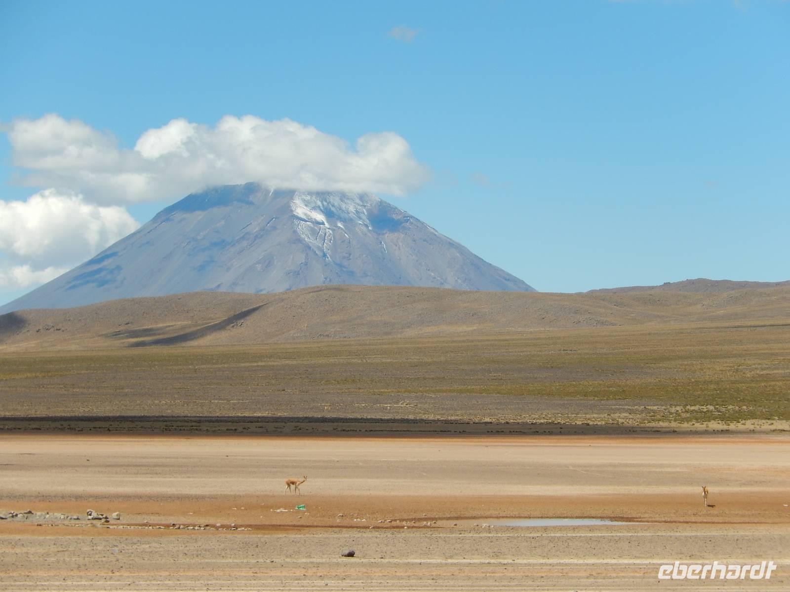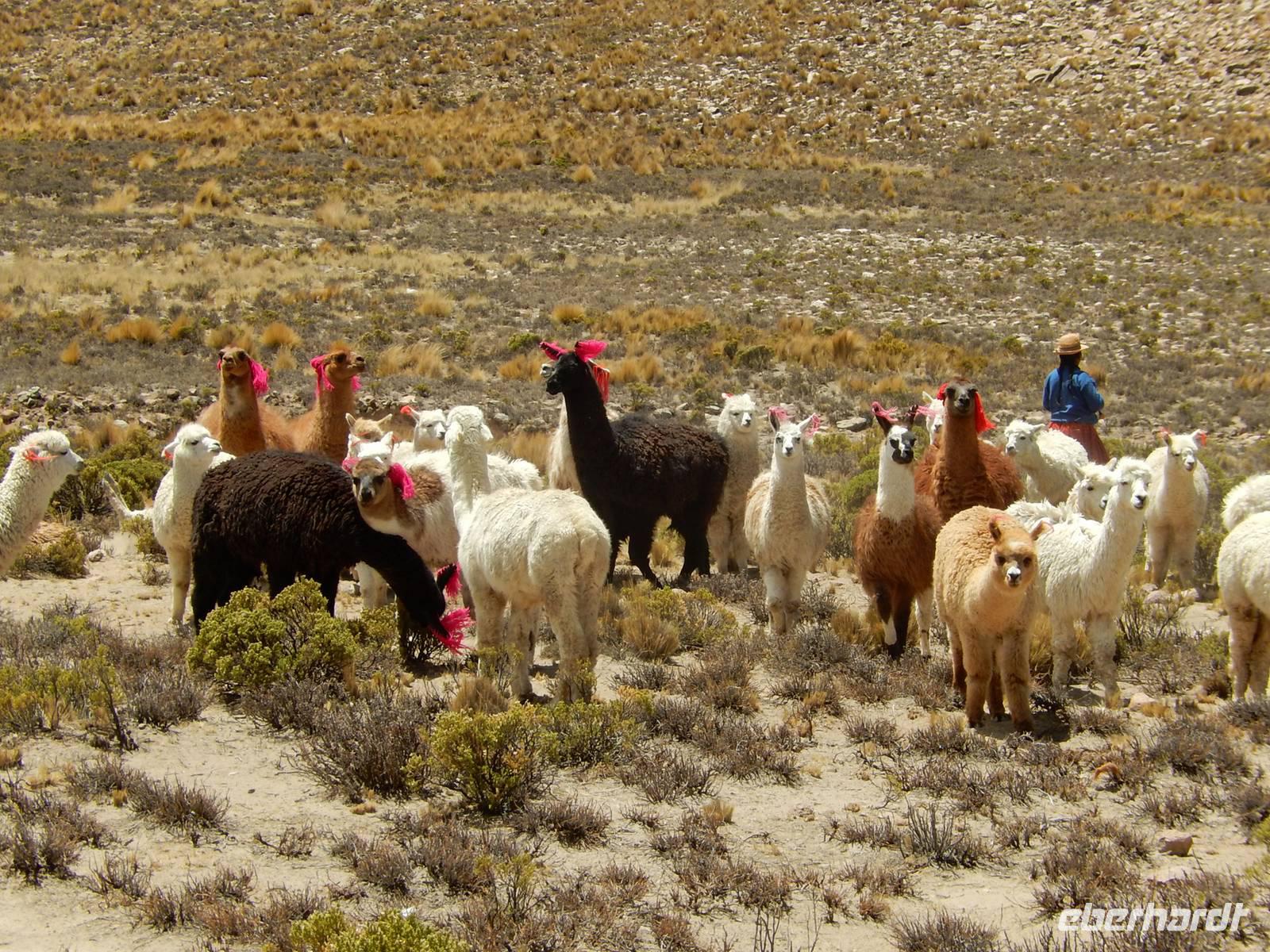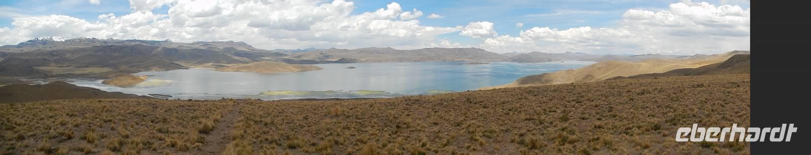 Heute verlassen wir zwar das Hochland, nicht jedoch die Höhe, die die kommende Woche noch unser Begleiter sein wird. Ganz im Gegenteil, am Ende des Tages wollen wir am berühmten Titicaca-See in Puno noch höher hinaus. Die Fahrt beginnt heute zu einer humanen Zeit und wir können uns auch Zeit lassen, denn außer dem Ziel in Puno steht heute nichts auf dem Programm. Wir müssen zuerst die Strecke zurück nach Patahuasi, zum großen Straßenkreuz nach Cusco, Arequipa und an den Titicaca-See. Das heißt aber auch, wir müssen den höchsten Punkt unserer Reise - den Patapampa-Pass in 4.910 Meter Höhe - nochmals passieren. Da wir inzwischen einigermaßen akklimatisiert sind in der Höhe und dank der medizinischen Anleitung von Yudy, können diesmal alle das fantastische Wetter und das Panorama auf die Vulkane genießen. Wir schießen noch ein Gruppenfoto und dann geht die Fahrt weiter. In Patahuasi, was wir ja auch schon von der Hinstrecke kennen, gebe ich nochmals einen Triple-Tee aus, damit die positive Gesundheit in der Gruppe auch weiterhin anhält. Die ersten Souvenire des Tages werden gekauft und der Wasservorrat aufgefüllt und dann erwarten uns noch über 220 Kilometer nach Puno. Unterwegs bleibt Zeit für weitere Fotostopps, zum Beispiel um Lamas zu fotografieren. Wir passieren die zweithöchste Stelle heute, den Cruzeiro Alto (4.528 m) und stoppen an der Laguna Lagunillas, ein riesiger See eingebettet in das tolle Panorama des Hochlandes. Ein atemberaubender Blick bietet sich uns und wir freuen uns über soviel traumhafte Landschaften. Und dann die Stände der Einheimischen - jetzt geht es los und Mützen, Jacken, Tücher, Läufer... alles können wir scheinbar gebrauchen und decken uns ausgiebig mit Alpaca-Wolle ein. Anschließend geht die Fahrt über Straßen, die eigentlich hauptsächlich aus Löchern bestehen weiter bis nach Puno. Dort erreichen wir am Nachmittag unser schönes Hotel Casa Andina Tikarani. Was bleibt zu Puno zu sagen: Es ist mit Abstand die bislang - Entschuldigung - hässlichste Stadt unserer Reise und auch die wunderschöne kleine Kathedrale kann die unschönen Seiten der Stadt nicht übertünchen. Wir bummeln also schnell über aufgerissene Hauptstraßen und versorgen uns mit Wasser, Geld, Briefmarken und dann kehren wir ins Hotel zurück. Vielleicht tun wir der Hauptstadt der gleichnamigen Region Unrecht, aber sie wird bei der Masse der positiven Eindrücke nicht in Erinnerung bleiben. Zum Abendessen gehen wir heute in ein Restaurant und die Mehrheit freut sich auf ein Alpaca-Steak, eine Spezialität der Region, doch irgendwie geht in der Höhe der Hunger verloren. Wir werden übrigens heute von Maya zum Abendessen begleitet, einer Deutschen, die neben ihrem Job als Lehrerin auch als Reiseleiterin tätig ist. Wir verschwinden schnell im Bett, denn morgen geht es wieder mal sehr früh raus...
