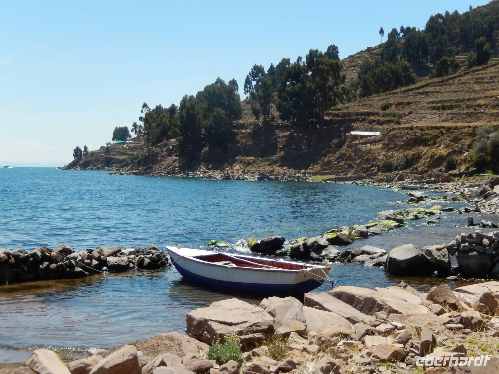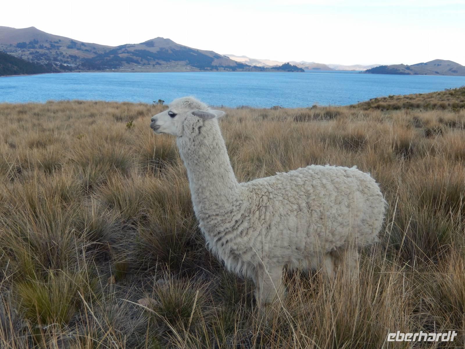 Heute erlebe ich ein Novum als Reisebegleiter bei Eberhardt - wir haben einen ganzen Tag FREIZEIT auf der Insel und jeder kann tun und lassen was er will. Spazieren, Kanu fahren, Karten schreiben oder einfach einen Cocktail genießen. Wir alle sind froh über so eine Ruhephase, trotzdem sind wir auch alle am Vormittag wieder mit dabei, als wir mit Raul das kleine Museum der Insel besuchen Wir befinden uns hier auf einer Privatinsel und erfahren etwas über die Geschichte der Region Puno, die Lebensweise früherer und heutiger Generationen und ein wenig über die Besitzerin der Insel, die die Hotelanlage an die Hotelkette Casa Andina verpachtet hat. Anschließend spazieren wir mit Raul noch zur zweiten Anlegestelle der Insel, direkt am Titicaca-See und endlich kann ich den Wassertest durchführen, den es eigentlich bei allen meinen Reisen gibt. Der See dürfte an dieser Stelle allerdings moderate 16 Grad haben, also hält sich die Herausforderung in Grenzen. Zur Mittagzeit erwartet uns dann wieder ein Buffet im Freien und anschließend bleibt wieder Zeit für Entdeckungen auf der Insel (vor allem Tierbeobachtungen von Alpacas, Vicunas und Vizcachas), sportliche Betätigung beim Kanu fahren oder ausgiebige Gespräche. Es donnert und blitzt über de Titicaca-See, doch trotz unheimlich schwarzer Wolken bleiben wir von Regen verschont. Einige schlafen auch vor, denn morgen früh verlassen wir Suasi im Morgengrauen, um unseren nächsten Schritt in Angriff zu nehmen. Und so verschwinden nach dem Abendessen alle schnellstmöglich auf die Zimmer.