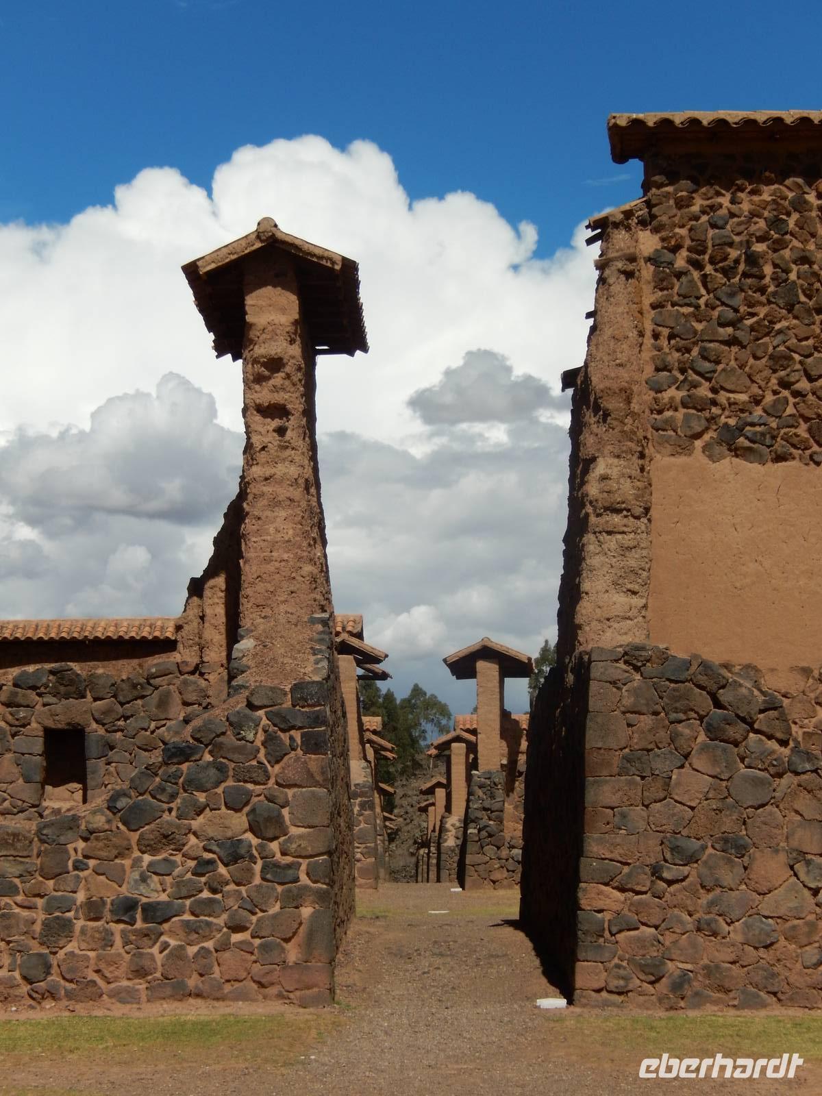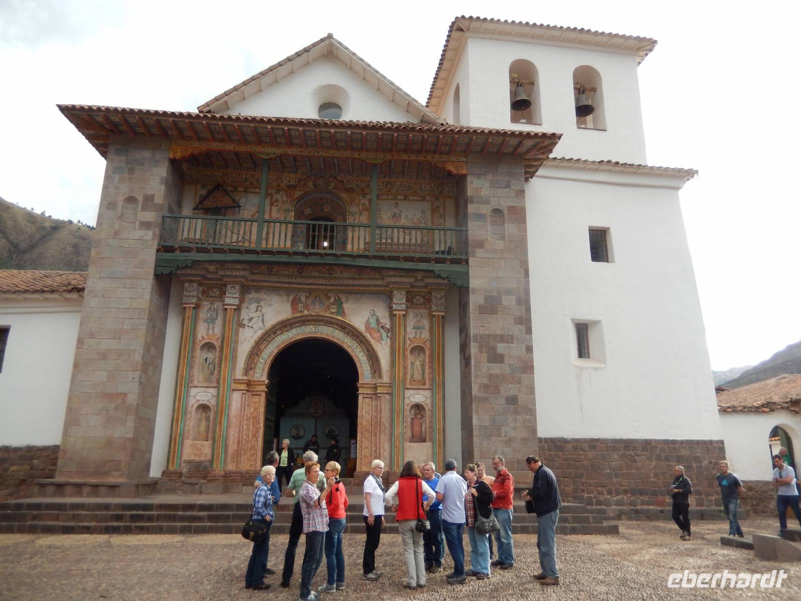 Der manuelle Weckruf erfolgt kurz nach 4 Uhr! Die Elektrizität wird erst 30 Minuten später freigegeben... Trotzdem finden sich alle pünktlich zum sparsamen Frühstück ein und es gibt nur ein Gesprächsthema: es regnet in Strömen. Zum ersten Mal sind wir von Schlechtwetter betroffen und es hätte kein blö.... Zeitpunkt sein können. In der Dämmerung müssen wir mit unserem Handgepäck, aufgeteilt in zwei Gruppen zur Ablegestelle des Zodiaks laufen. Verpackt in Regencapes, Plastetüten und unter Schirmen versteckt nehmen wir den Weg auf uns. Von der Anlegestelle geht es in ca. 5 Minuten bei Dauerregen über den Titicaca-See im Schlauchboot - ein echtes Abenteuer. Beide Gruppen und das Gepäck erreichen den winzigen Ort Conima, wo bereits unser Bus und Reiseleiter Jorge auf uns und die zu absolvierenden 460 Kilometer warten. Wie zum Hohn kämpft sich kurz nach der Abfahrt die Sonne durch die Wolken und beschert uns wiedermal wetterseitig einen tollen Tag. Wir starten in Richtung Juliaca und was soll ich sagen: wir haben Puno vollkommen Unrecht getan! Nicht die sondern Juliaca ist mit Abstand die hässlichste Stadt die ich je gesehen habe. Müllberge, Hauptstraßen aus roter Asche und Verkehrsregeln die es scheinbar nicht gibt - und das bei einer 300.000-Einwohner-Metropole. Wir lassen Juliaca so schnell es eben geht hinter uns und harren inzwischen auf der Suche nach einigermaßen benutzbaren Toiletten fast 4 Stunden aus. Unser Bus hat diesmal keine Toilette und so freuen wir uns, in Pucara endlich fündig zu werden. Von dort geht es über den La Raya-Pass (4.335 m) in Richtung Sicuani. Nun haben wir einen weiteren Höhepunkt im Wortsinne hinter uns gelassen und werden bei dieser Reise auch nie wieder so hoch kommen. In Sicuani erwartet uns ein Mittags-Buffet im Restaurant Feliphon mit allerlei peruanischen Köstlichkeiten und so starten wir gestärkt in die Region Cusco, die Region der Inkas. Zuerst halten wir in Raqchi, einer alten Inkastätte, die wohl vorrangig der Lagerung von Lebensmitteln diente. So genau weiß das keiner und auch unser Guide Jorge kann uns nur mit Theorien weiterhelfen. Dies ist eines der Mysterien der Inkas - man weiß einfach zu wenig Konkretes. Bei der Führung durch die Anlage sehen wir erstmals Bauten der Inkas und können uns lebhaft in die damalige Zeit versetzen. Weiter geht die Fahrt in Richtung Cusco und nächster Stopp ist die Kapelle von Andahuaylillas, ein wahres Kleinod. Ich habe selten so eine schöne Kirche gesehen: fantastische Gemälde, ein goldener Altar und eine Deckenkonstruktion, die ich so noch nie gesehen habe, machen diese kleine Kirche einzigartig. Fantastische Wandmalereien und zwei uralte Orgeln vollenden das Bild - diese Kapelle ist ein Muss. Nun heißt es für uns aber ab nach Cusco, die alte Hauptstadt der Inkas. Dazu duchfahren wir das wunderschön saftige Tal des Rio Urubamba. In Cusco angekommen müssen wir unser Gepäck selbst zum Hotel bringen, da die Gassen der Altstadt einfach zu eng für unseren Bus sind. Erschöpft von unserer heutigen Abenteuer-Tour nutzen die meisten die Chance den fehlenden Schlaf nachzuholen. Nur einige Unkaputtbare entdecken noch ein feines Restaurant, was auch gleich für den kommenden Tag reserviert wird, und trotzen dem durchziehenden Gewitter und den damit verbundenen heftigen Regenfällen bei ein paar Getränken.