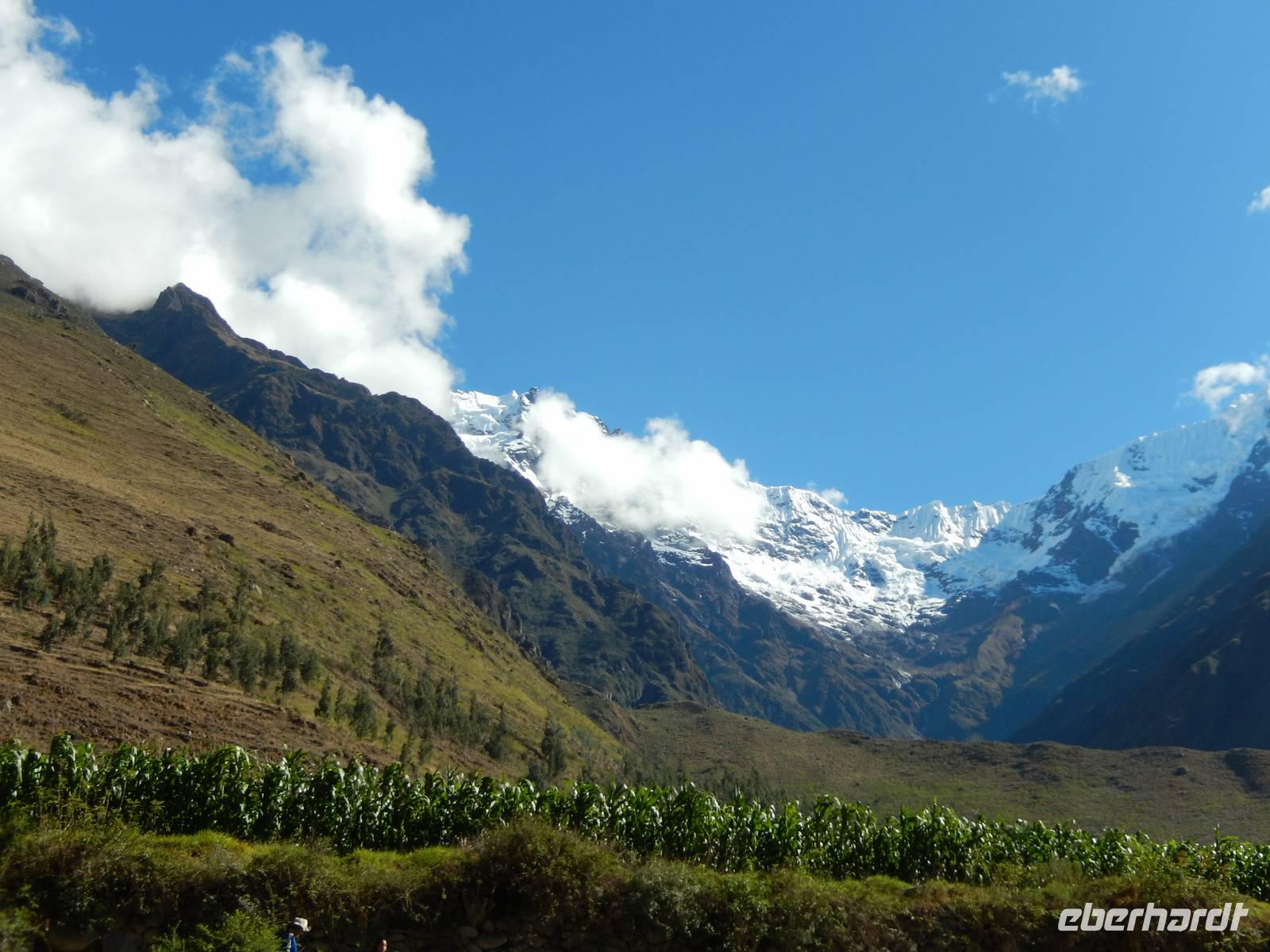 Auch der heutige Tag startet entspannt erst gegen 09.00 Uhr. Die Koffer lassen wir im Hotel zurück, denn wir kehren in drei Tagen zurück und bei der Reise ins Heilige Tal, speziell nach Aguas Calientes/Machu Picchu, dürfen wir im Zug jeder nur ein Handgepäckstück mit uns führen. So packen wir also für die nächsten zwei Nächte und starten dann mit Jorge zum Besuch des Sonnentempels, der ja gestern wegen einer Prozession geschlossen war. Bei Ankunft hat man das Gefühl, dass die ganze Welt denselben Plan hat wie wir, denn wir treffen auf Menschenmassen, aber das sollte nicht das letzte Mal sein. Trotz der vielen Besucher findet Jorge in seiner ruhigen Art immer eine Nische oder einen einigermaßen ruhigen Platz, um uns alles Wissenswerte zum Sonnentempel zu erklären. Auch hier finden wir wie so oft Zeichen des Synkretismus, denn auch hier haben die spanischen Eroberer auf alten Inka-Stätten ihre Kirchen errichtet und natürlich konnte man die Bevölkerung nur milde stimmen, wenn man den alten Bräuchen Räume schafft. Wir bewundern also die Inka-Architektur im Inneren des Sonnentempels, der dann als Dominikaner-Kloster fungierte. Nach dieser ersten Station brechen wir heute ins Heilige Tal auf. Die Fahrt führt uns durch fruchtbare Ebenen, in denen hauptsächlich Mais angebaut wird. Das Flusstal hat wild-romantische Züge und wir folgen dem Heiligen Fluss bis nach Pisaq, wo wir zur Mittagszeit einen Stopp machen und uns Zeit nehmen, über den Markt zu schlendern. Dieser ist riesengroß und jeder der bisher noch keine Souvenire gefunden hat, wird hier fündig. Von Handarbeit über Farben, Wolle, Hüte, Shirts, Mineralien bis hin zu Obst und jeder Menge Krimskrams findet man hier alles. Jorge kann uns alles erklären und so entscheidet jeder selbst wieviel Soles er hier ausgibt. In einem Innenhof erleben wir dann noch eine andere Besonderheit. In einem Runden Ofen werden Meerschweinchen gebraten und wir können sehen, wie fast in Massenproduktion diese Spezialität Perus hergestellt wird. Es gibt außerdem ofenfrische Empanadas, was für die meisten die heutige Mittagsverpflegung darstellt. Falsch, denn das eigentliche heute inkludierte Mittagessen gibt es am frühen Nachmittag im Restaurant Muna. Dort sind wir nicht die einzige Gruppe, trotzdem können wir im Garten bei Livemusik die Leckereien vom Buffet genießen. So sind wir gestärkt für den heutigen Höhepunkt, die Besichtigung der großen Inka-Stätte in Ollantaytambo. Dort angekommen findet unser Bus kaum einen Weg durch die engen Gassen und wir kaum einen Weg zur Anlage durch die Menschenmassen. Ein kleiner Vorgeschmack auf das, was uns morgen erwartet... Jetzt wird es anstrengend, denn die typisch aus der Inkazeit terrassenförmig angelegte Stadt fordert unsere Kraft zunächst einmal beim Aufstieg über 230 steinerne, ungleich hohe Stufen. Unterwegs legen wir immer Atempausen ein, die Jorge dafür nutzt, uns die wichtigen Details, das viele Bekannte und Unbekannte über die Zeit der Inkas zu erläutern. Wir genießen einen tollen Blick in das Heilige Tal und auf die umliegenden Berge, bei dem die Inkas teilweise sogar als Bildhauer am Fels tätig geworden sind. Apropos Bildhauer: Beim Anblick der fantastischen Terrassen und Mauern aus der Inkazeit bildet sich bei uns fast eine Anhängerschar der Theorien von Erich von Däniken. Die unglaubliche Präzision und detaillierte Bauweise der Inkas, lässt uns kurzzeitig zweifeln, ob - und vor allem wie - so etwas von Menschenhand geschaffen werden konnte. Wir sind fasziniert! Den steilen Abstieg spüren wir dann vor allem in den Knien und auf Ortsebene, inzwischen sind wir ja „nur" noch auf 2.800 Meter Höhe unterwegs, erklärt uns Jorge auch noch Vieles über die Bewässerungstechnik der Inkas, die Landwirtschaft im Allgemeinen und wir sehen einen tollen Wasseraltar. Mit diesen Eindrücken fahren wir anschließend nach Urubamba in unser Hotel, eine schöne Anlage, aber hinter verschlossenen Toren abseits der eigentlich lebhaften Straßen der kleinen Stadt gelegen. Da der Highlight-Tag morgen schon früh beginnen soll, essen noch einige im Restaurant des Hotels zu Abend und dann heißt es gute Nacht.