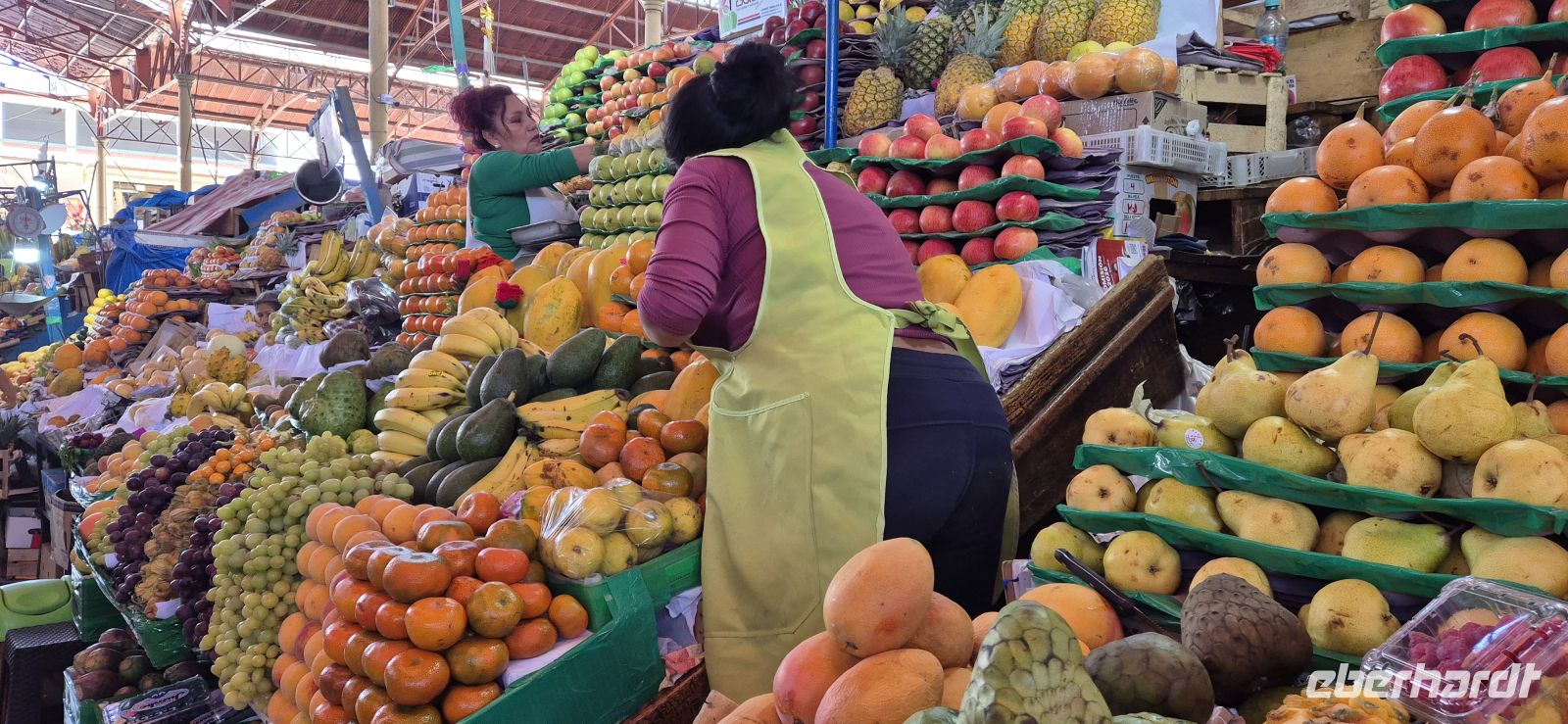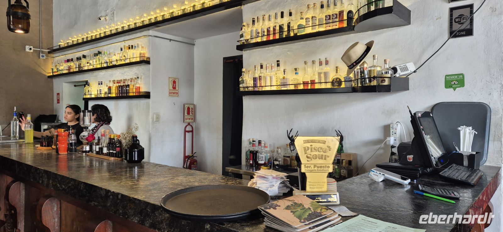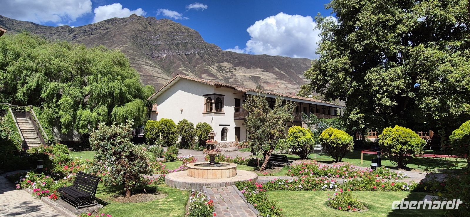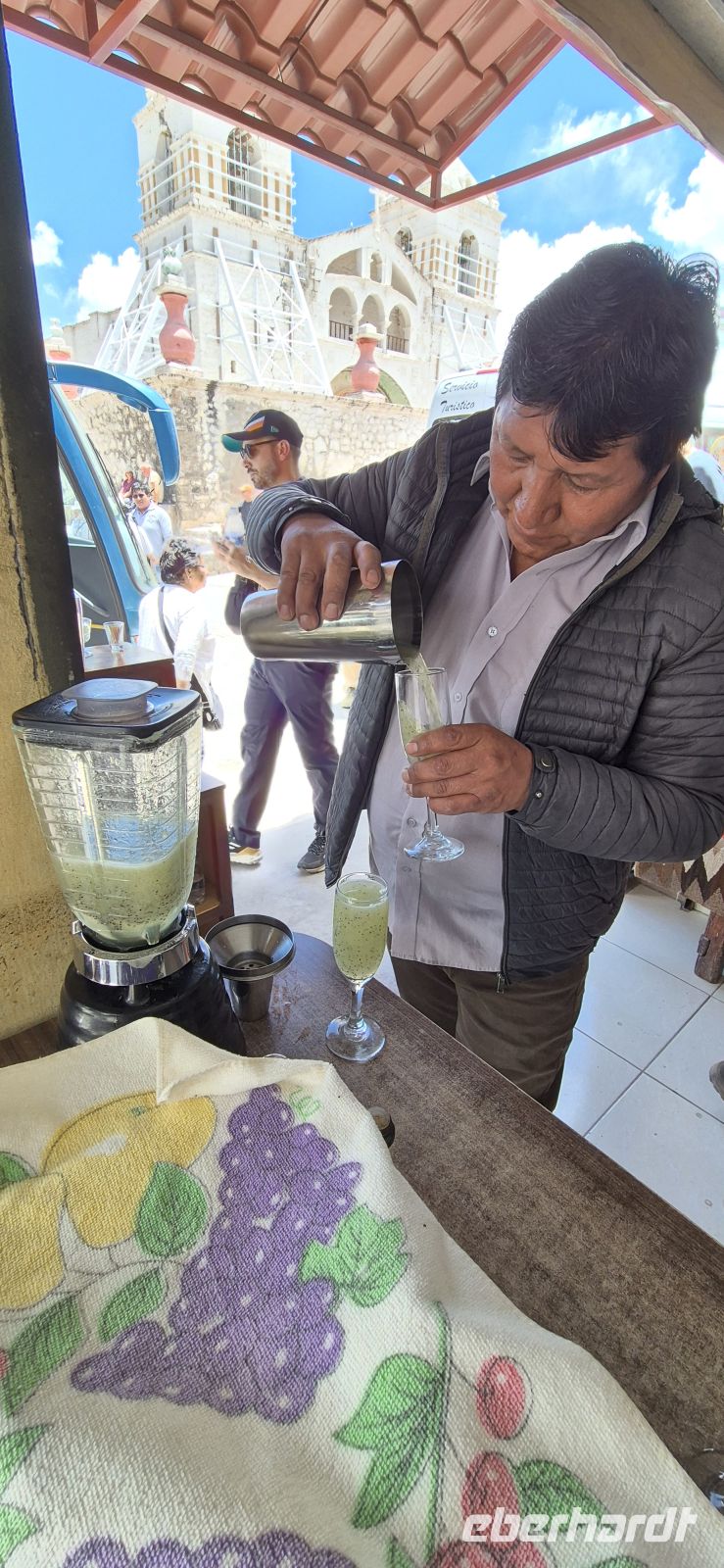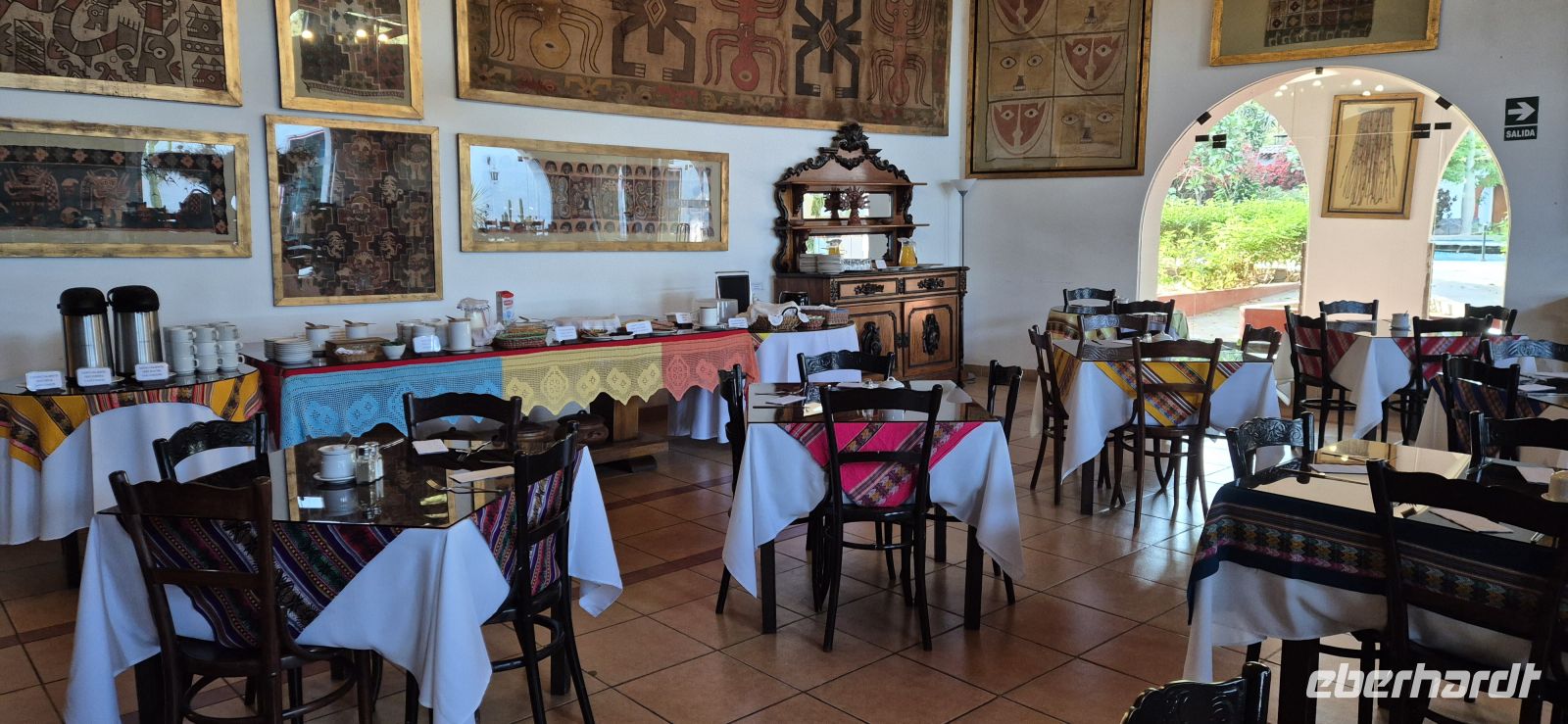 Dank Jetlag und einer somit kurzen Nacht starten wir früh in den Tag. Ab sechs Uhr steht im Erdgeschoss bereits das Frühstück bereit – mit frischen Früchten, uns wohl vertrauten Brötchen, Eierspeisen und natürlich dem ersten starken peruanischen Kaffee. Besonders praktisch: An der Bar befindet sich eine Wasserzapfstation, an der wir unsere mitgebrachten Flaschen für die Fahrt auffüllen können – nachhaltig und kostensparend zugleich.