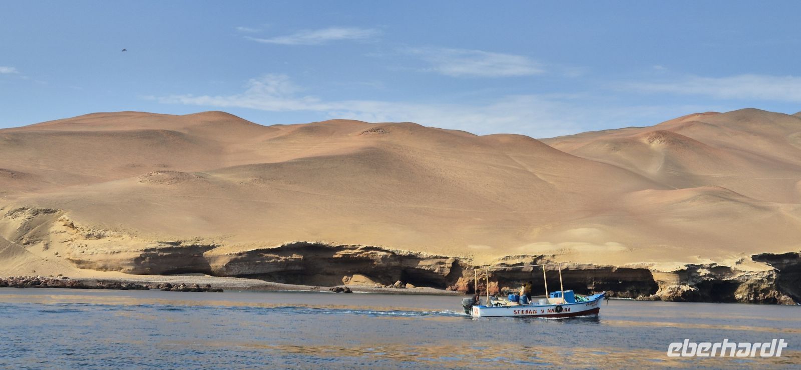 Schon am frühen Morgen liegt über Paracas eine sanfte Brise des Pazifiks. Nach dem wundervollen Frühstück treffen wir uns am Pool und spazieren gemeinsam zum Hafen, wo bereits das Schnellboot bereits auf uns wartet. Heute begleitet uns Guide Brenda, eine junge Peruanerin und der Bootskapitän darf natürlich auch nicht fehlen