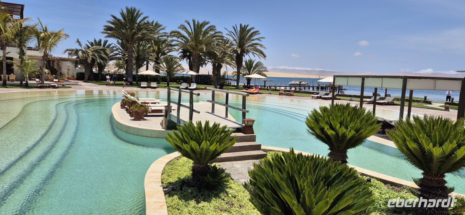 Am frühen Abend erreichen wir schließlich unser Ziel: Paracas. Das Einchecken im Hotel verläuft reibungslos, und schon beim Betreten der Anlage sind alle begeistert – elegante Architektur, Palmen, Pool und Meeresrauschen inklusive.