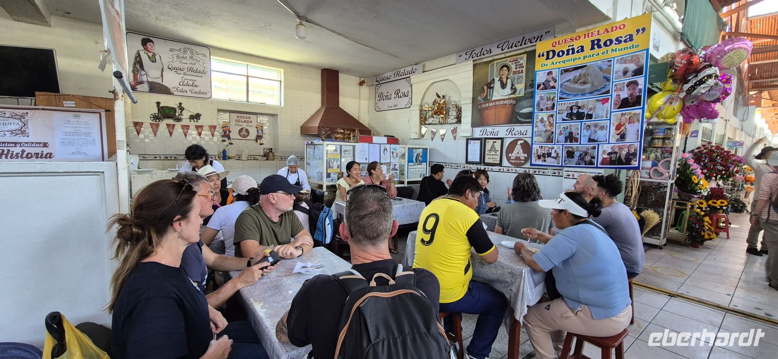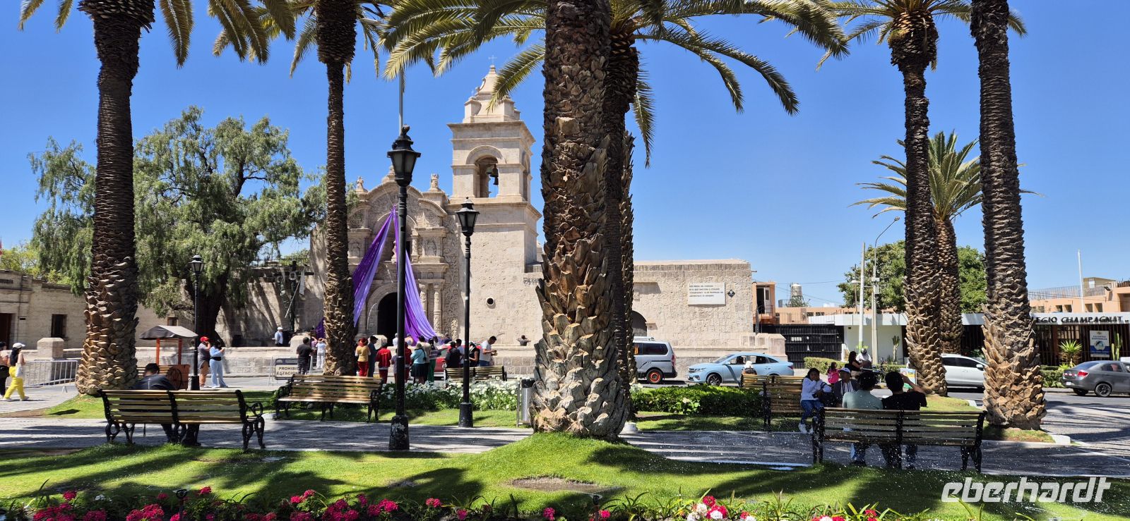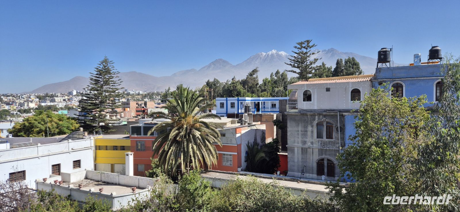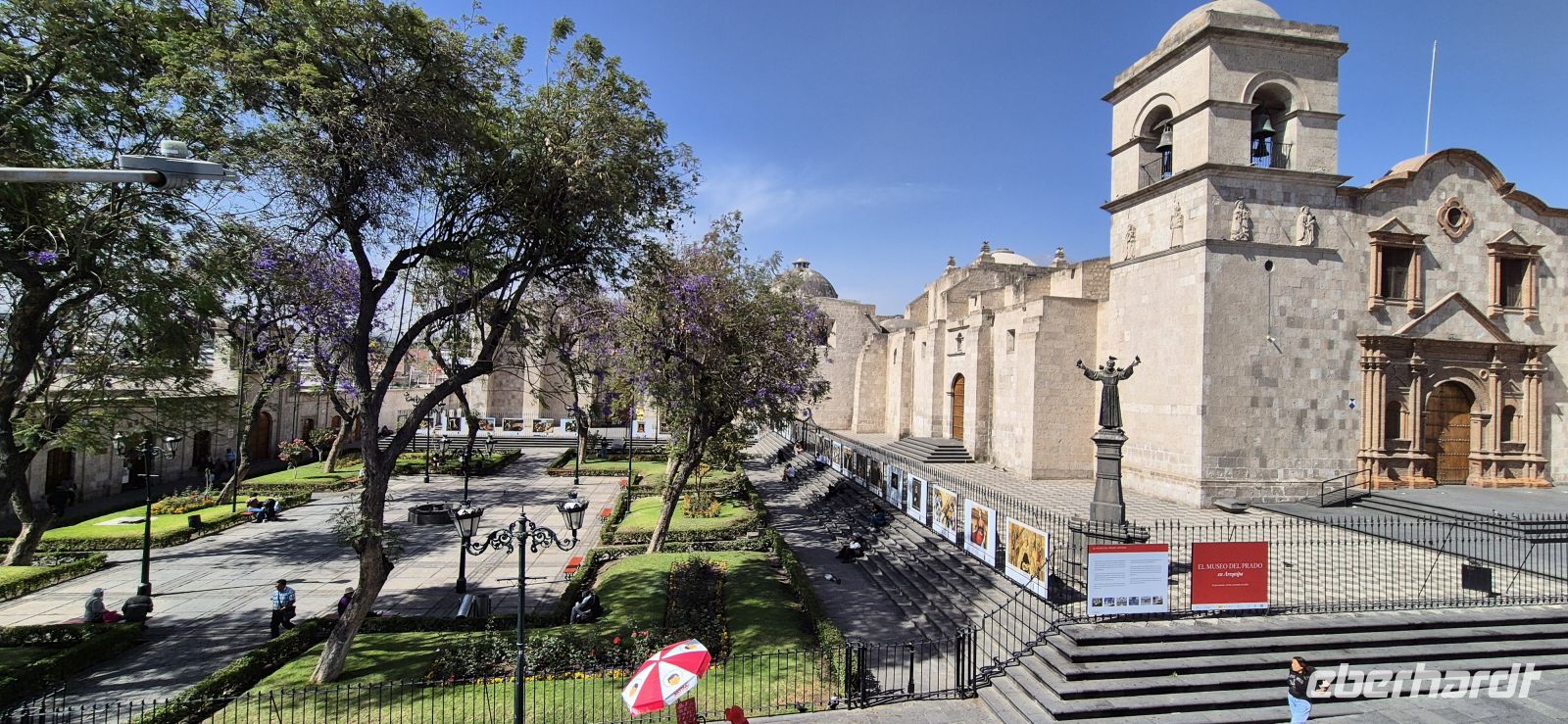 Bereits vor unserem Frühstück erhaschen wir auf unserer Dachterrasse einen grandiosen Blick auf das herrliche Panorama. Blauer Himmel, die Sonne strahlt, die Vulkane um uns herum, wir sind gespannt, was der Tag bringt. Zur Abfahrt begrüßt uns unser neuer Reiseleiter Elver, der uns nun bis Puno begleiten wird. Schon beim ersten Fotostopp und ersten Aussicht auf Arequipa sind wir begeistert: In Carmen Alto eröffnet sich ein grandioses Panorama auf die umliegende Bergwelt mit ihren majestätischen Vulkanen Misti, Chachani und Pichu Pichu. Die fruchtbaren Terrassenfelder liegen wie ein grüner Flickenteppich in der trockenen Landschaft – ein wunderschöner Kontrast zur hellen Stadt, die aus weißem Vulkangestein erbaut ist und ihr den Beinamen „Ciudad Blanca“ – die weiße Stadt – verleiht. Ein Stück weiter genießen wir in Yanahuara einen weiteren fantastischen Blick auf Arequipa und die Vulkane. Der kleine Stadtteil mit seinen engen Gassen und traditionellen Bögen wirkt fast wie ein Dorf in der Stadt. Von hier aus geht es zu Fuß weiter in die Altstadt – ein Erlebnis für alle Sinne! Wir schlendern durch die lebhaften Straßen, vorbei an alten Kolonialhäusern mit kunstvollen Balkonen, und erreichen schließlich das Herz der Stadt: die Plaza de Armas. Dieser prachtvolle Platz gilt als einer der schönsten in ganz Peru. Palmen, Springbrunnen und weiße Arkaden rahmen das beeindruckende Ensemble aus kolonialer Architektur. Vor allem dominiert die mächtige Kathedrale von Arequipa, die fast die gesamte Länge des Platzes einnimmt. Sie wurde im 17. Jahrhundert erbaut und nach mehreren Erdbeben immer wieder liebevoll restauriert. In ihrem Inneren befindet sich eine der größten Orgeln Südamerikas – ein echtes Meisterwerk. Leider ist sie nur morgens und abends geöffnet, sodass wir sie heute zunächst nur von außen bewundern und so manche von uns am Nachmittag nochmals von innen besichtigen. Gleich um die Ecke liegt die Jesuitenkirche La Compañía de Jesús, deren Fassade mit filigranen Steinornamenten zu den schönsten Beispielen des Mestizo-Barockstils in Peru gehört. Besonders sehenswert ist der Innenhof des angrenzenden Klosters mit seinen eleganten Arkaden und kleinen Läden, in denen Kunsthandwerk und Schmuck angeboten werden. Dann tauchen wir ein in das bunte Leben des Mercado San Camilo. Die große, luftige Markthalle wurde einst von Gustave Eiffel entworfen – ja, genau, dem Erbauer des Pariser Eiffelturms! Zwischen duftenden Gewürzen, exotischen Früchten und frischem Käse genießen wir eine lokale Spezialität: Queso Helado, das berühmte „gefrorene Käse-Dessert“, das eigentlich gar keinen Käse enthält. Es schmeckt wunderbar erfrischend nach Zimt, Kokos und Vanille – ein echtes Highlight! Unser nächstes Ziel ist das legendäre Kloster Santa Catalina, ein faszinierendes Labyrinth aus Gassen, Höfen und kleinen Häusern. Es gleicht einer Stadt in der Stadt – über 20.000 Quadratmeter groß, jahrhundertelang von Nonnen bewohnt und vom Rest der Welt abgeschottet. Unsere deutschsprachige Führerin Marie-Elena bringt uns mit Leidenschaft die Geschichte und das Leben hinter den roten und blauen Mauern näher. Wir spazieren durch stille Kreuzgänge, sehen ehemalige Wohnräume und bewundern die leuchtenden Farben der Mauern, die im Kontrast zum tiefblauen Himmel strahlen. In einem kleinen Klostercafé gönnen wir uns eine Pause – mit Blick auf die friedlichen Innenhöfe. Nach der Führung schlendern wir gemütlich weiter zum Restaurant Victoria, direkt gegenüber der Plaza San Francisco. Auf der Dachterrasse genießen wir ein spätes Mittagessen mit herrlichem Blick auf die Dächer der Stadt. Dann geht es erst mal zurück zum Hotel, wir müssen uns ein wenig ausruhen, die Höhe von 2300 m ist nicht zu unterschätzen. Am Abend kehren wir im Restaurant "Zig Zag" zu einem gemütlichen Dinner ein. Hier probieren wir ein köstliches Fleischgericht, das auf heißem Lavastein serviert wird – eine Mischung aus Alpaka, Rind und Huhn. Nicht nur optisch ein Genuss, sondern auch geschmacklich ein spannendes Erlebnis!