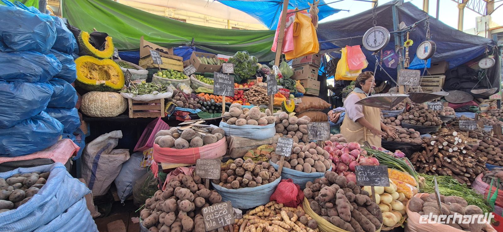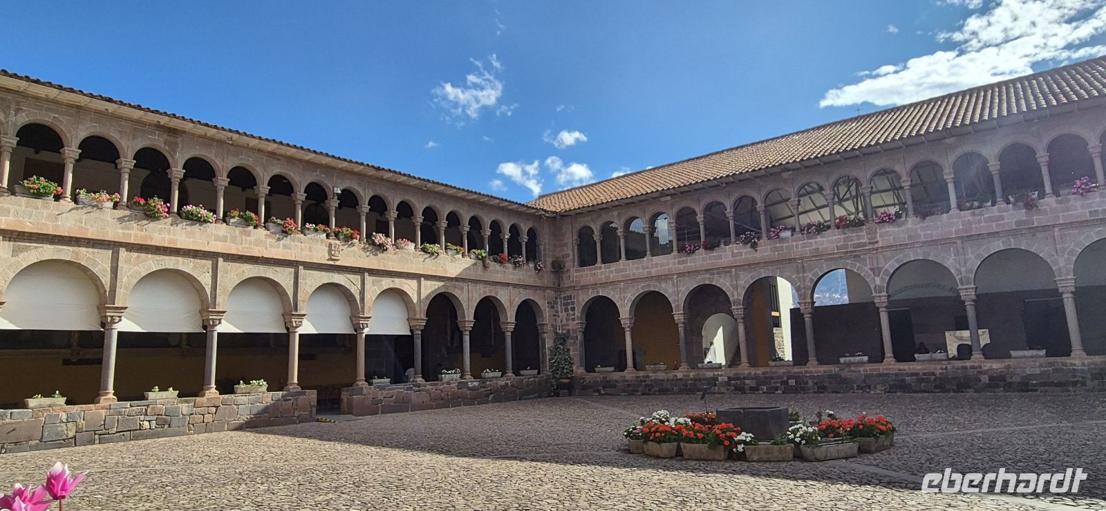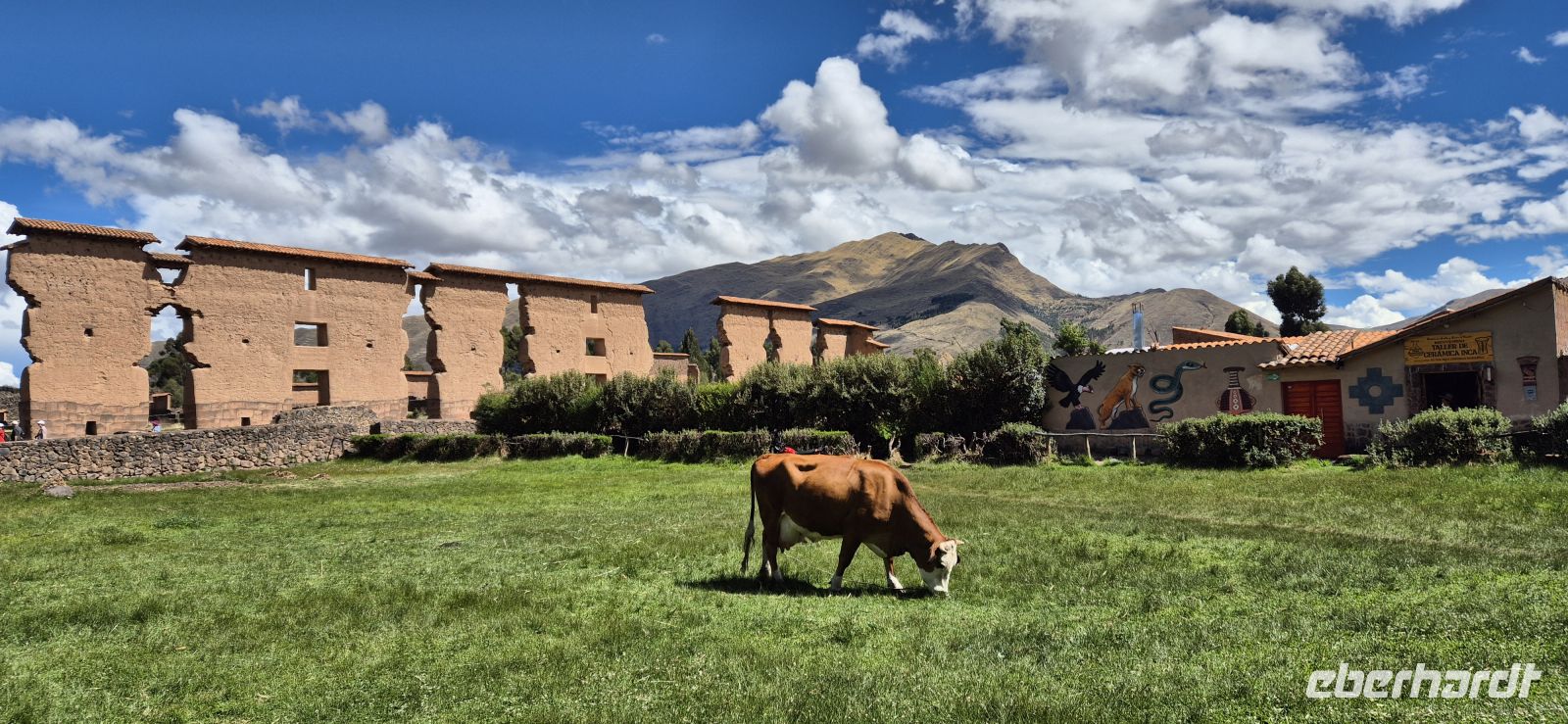 Wir verlassen Puno und begeben uns nun mit unserem neuen Reiseleiter Jorge, sowie Busfahrer Elison auf die Hochebene des Altiplano und führen unsere Fahrt durch die grandiose Bergwelt der Anden fort. Hinter jeder Kurve öffnet sich ein neues Panorama: schneebedeckte Gipfel, weite Täler und immer wieder kleine Dörfer mit traditionellen Lehmhäusern und grasenden Alpakas. Unser erster Stopp ist Pucara, ein malerischer Ort, der für seine kunstvoll gefertigten Tonstiere – die „Toritos de Pucara“ – bekannt ist. Diese bunten Stierfiguren gelten als Glücksbringer und zieren vielerorts die Dächer peruanischer Häuser. Auf dem zentralen Plaza de Armas genießen wir einen ausgezeichneten Kaffee, während sich der Blick über die gepflegten Kolonialbauten und die imposante Kirche schweifen lässt. Dann windet sich die Straße weiter hinauf zum La Raya-Pass auf 4.335 Metern Höhe – der höchsten Stelle unserer heutigen Strecke. Hier verläuft die geografische Grenze zwischen den Regionen Puno und Cusco. Um uns herum ragen schroffe Gipfel auf und Lamas und Alpakas weiden auf den kargen Hochlandwiesen. Die klare, dünne Luft und das intensive Blau des Himmels verleihen der Landschaft eine besondere Schönheit. Nach einer kurzen Weiterfahrt erreichen wir Sicuani, wo wir ein köstliches Mittagessen mit regionalen Spezialitäten genießen. Gestärkt geht es weiter nach Raqchi, einer der bedeutendsten archäologischen Stätten der Inka-Zeit. Hier besichtigen wir zunächst die einstigen Lagerhäuser der Inkas, die erst vor wenigen Jahren freigelegt wurden. Anschließend noch die Reste des beeindruckenden Tempels des Viracocha, des Schöpfergottes. Die gewaltige, einst über 90 Meter lange Mauer aus Vulkangestein und Lehmziegeln zeugt vom einstigen Glanz dieser Kultstätte, die zugleich als religiöses und administratives Zentrum diente. Auf unserem weiteren Weg nach Cusco legen wir einen Halt in Andahuaylillas ein, das wegen seiner prachtvollen Jesuitenkirche „San Pedro Apóstol“ oft als die „Sixtinische Kapelle der Anden“ bezeichnet wird. Im Inneren erwarten uns kunstvoll vergoldete Altäre, barocke Gemälde und eine prachtvoll bemalte Holzdecke – ein wahres Meisterwerk kolonialer Sakralkunst.