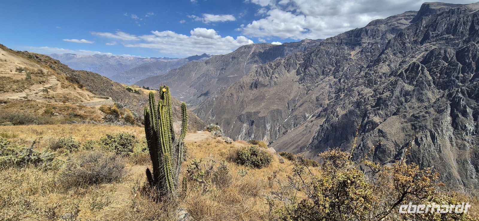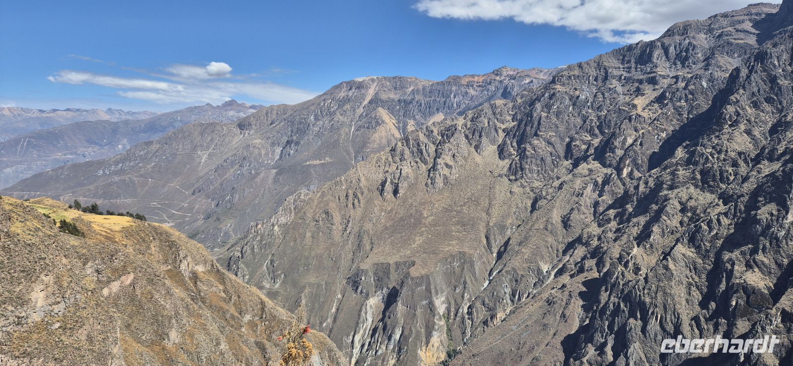 Der Tag erwacht über dem Colca-Tal. Die Luft ist klar und frisch, die ersten Sonnenstrahlen tasten sich über die gewaltigen Felswände des Canyons. Nach einem schmackhaften Frühstück machen wir uns auf zum Aussichtspunkt Cruz del Condor. Hier sind wir nicht allein, viele Besucher haben sich versammelt, um die Könige der Anden zu sehen.