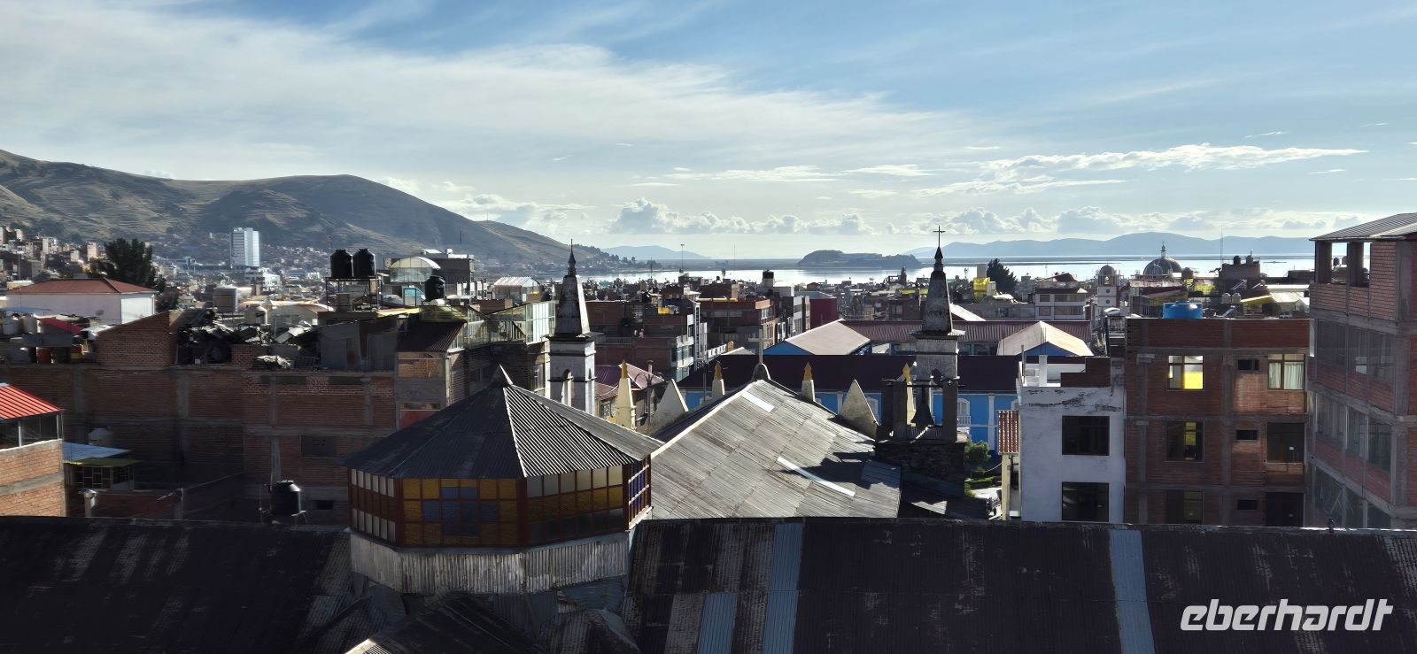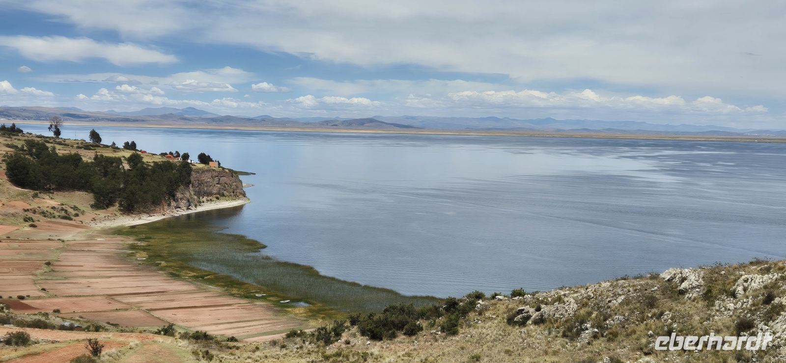 Schon früh am Morgen sind wir munter, denn wir sind, wie es in Luquina üblich ist, mit den Hühnern schlafen gegangen. Während um uns herum die Bauern schon ihrer Arbeit nachgehen, erwartet uns im Gemeinschaftsraum ein einfaches, aber köstliches Frühstück: warme Fladen aus der Pfanne, süße Marmelade, ein hartgekochtes Ei und dazu Kaffee oder duftender Kräutertee, so wie die Einheimischen eben auch frühstücken. Dabei fällt unser Blick aus dem Fenster auf die Felder und die friedliche Bucht – ein ruhiger Start in den Tag. Gestärkt machen wir uns auf den Weg zu einer entspannten Wanderung. Der Pfad führt uns entlang der Landstraße hinauf zum Aussichtspunkt mit Gipfelkreuz. Schritt für Schritt eröffnet sich ein herrlicher Blick über den Titikakasee, der in tiefem Blau schimmert. Die Luft ist klar, und in der Ferne zeichnen sich schneebedeckten Gipfel ab. Unterwegs begegnen wir Einheimischen, die mit ihren Tieren auf die Weide ziehen, Männer die Pflüge schultern. Für die einen harte Arbeit, ist es für uns eine friedliche, idyllische Wanderung. Zurück im Dorf bleibt Zeit, noch ein wenig auszuruhen, immerhin waren wir 2,5 Stunden unterwegs. Zum Mittagessen werden wir in einem schönen Lokal noch einmal mit typischen Gerichten verwöhnt – frischer Fisch aus dem See, zartes Huhn, duftende Kartoffeln, und buntes Gemüse, dazu hausgemachtes Dessert und heißer Tee. Dann heißt es Abschied nehmen. Wir gehen hinunter zum Bootssteg, wo unser Boot schon bereitliegt. Während der Fahrt nach Puno gleitet die Landschaft langsam vorbei: schier endloser See, Schilfgürtel und viel Landschaft um uns herum. Der Wind weht sanft über das Wasser, und wir genießen noch einmal diesen ganz besonderen See. In Puno angekommen, kehren wir in unser vertrautes Hotel zurück. Die Stadt wirkt nach der Ruhe von Luquina ziemlich geschäftig. Am Nachmittag haben wir Zeit, durch die Straßen zu schlendern und uns unter das Volk zu mischen. Am Abend lassen wir den Tag gemeinsam ausklingen. Im Tulipan’s Restaurant probieren wir noch einmal peruanische Spezialitäten – lecker, aber mit etwas Geduld zu genießen. Schließlich spazieren wir zurück zum Hotel, begleitet vom Klang der fernen Musik auf dem Hauptplatz und der kühlen Abendluft des Sees.