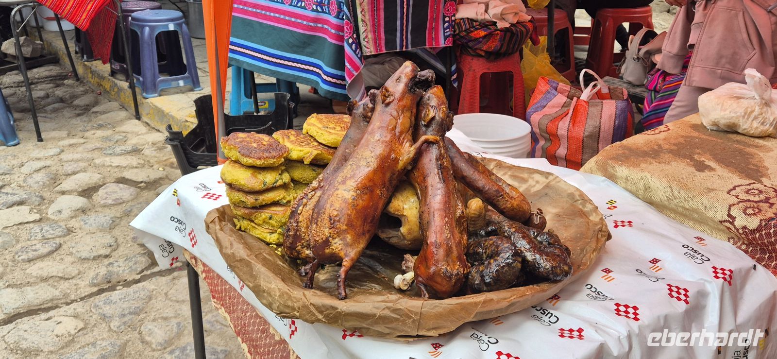 Nach einem entspannten Frühstück mit reichhaltiger Auswahl im El MaPi Hotel machen wir uns auf den sehr kurzen Weg zum Bahnhof. Heute erwartet uns eine gemütliche Zugfahrt durch das Urubamba-Tal, vorbei an grünen Feldern, kleinen Siedlungen, dem Urubamba Fluss und schneebedeckten Gipfeln am Horizont. Wir nehmen auf unseren reservierten Sitzen Platz und freuen uns über das kleine Lunchpaket mit süßen Snacks – Kekse, Müsliriegel, Schokolade und Bonbons – dazu wird Kaffee oder Tee serviert. Doch lange hält es uns nicht auf den Sitzen, denn im Nachbarwaggon sorgt Live-Musik für ausgelassene Stimmung: So tanzen, lachen und singen wir mit anderen Mitreisenden aus aller Herren Länder. Später folgt eine kleine Modenschau, bei der traditionelle und moderne peruanische Kleidung präsentiert wird – farbenfroh, elegant und vielseitig zu tragen. Nach rund 2,15 Stunden erreichen wir Ollantaytambo, das Tor zum Heiligen Tal der Inka. Hier erwartet uns ein ganz besonderes Mittagserlebnis: Wir dürfen der Zubereitung einer traditionellen Pachamanca beiwohnen. Der Name stammt aus dem Quechua – Pacha bedeutet Erde, Manca Topf – und beschreibt ein uraltes Andenritual des gemeinsamen Kochens. In einer Grube, ausgelegt mit heißen Steinen, garen Fleisch, Kartoffeln, Mais und Bohnen langsam unter der Erde. Andine Kräuter verleihen dem Ganzen ein unverwechselbares Aroma. Das Ergebnis: zartes Fleisch, Gemüse, duftende Kartoffeln und viele weitere Köstlichkeiten. Wir genießen das Mahl in wunderschöner Umgebung, denn nur wenige Gehminuten vom Bahnhof entfernt, sind wir nun gefühlt mitten auf dem Land und in der Natur. Einfach herrlich, hier würden wir gerne bleiben. Nach dem Essen besuchen wir noch die kleine Destillerie und Kaffeerösterei des Anwesens, bevor wir uns auf den Rückweg machen. Unterwegs halten wir bei der Chichería y Artesanías Kuychi, wo wir peruanisches Salz und kunsthandwerkliche Souvenirs entdecken – eine letzte Gelegenheit, lokale Produkte direkt von den Produzenten zu erwerben. Am späten Nachmittag erreichen wir wieder Cusco, wo wir uns herzlich von unserem Fahrer Elison und unserem Guide Jorge verabschieden – zwei wunderbare Begleiter, die uns Land und Leute mit so viel Herzlichkeit nähergebracht und uns sicher viele Kilometer gefahren haben. Am Abend spazieren wir zu einem gemeinsamen Abschiedsessen ins Restaurant Ofrenda, unweit der Plaza de Armas. Das stilvolle Lokal begeistert mit kreativer peruanischer Küche, stimmungsvoller Atmosphäre und herzlichem Service – ein gelungener Abschluss einer Reise voller Eindrücke, Farben und Geschichten aus dem Herzen der Anden.