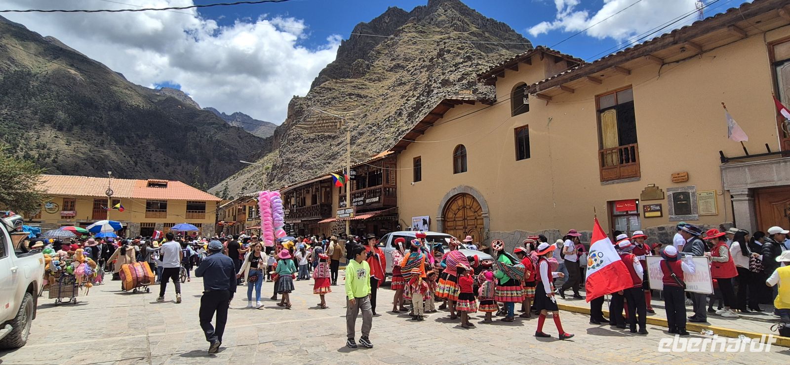 Wir verlassen Cusco und tauchen tief in das Heilige Tal der Inka ein – eine Landschaft, die ihren Namen wirklich verdient. Zwischen schroffen Andenbergen breitet sich ein fruchtbares, grünes Tal aus, durch das der Urubamba-Fluss fließt. Die Inka wussten sicher, warum sie hier ihre Kornkammer anlegten: milderes Klima, reiche Böden, und sehr viel Platz. Schon am Aussichtspunkt Mirador Racchi genießen wir den ersten Panoramablick auf dieses Tal – Terrassenfelder, Flussläufe und kleine Dörfer, die sich an die Berghänge schmiegen. Kurz darauf erreichen wir unser Vormittagsziel Ollantaytambo! Kaum angekommen, geraten wir mitten in ein buntes Fest. Die Straßen sind gesperrt, also machen wir uns zu Fuß auf den Weg – und das ist ein Glücksfall! Überall Musik, tanzende Gruppen in farbenprächtigen Trachten, flatternde Fahnen und Trommeln, die durch die engen Gassen hallen. Wir spüren, wie sehr hier Tradition und Lebensfreude zusammengehören. Dann steht unser Besuch der beeindruckenden Inka-Festung von Ollantaytambo an. Majestätisch thront sie über dem Ort, und der Aufstieg ist zwar etwas anstrengend, aber jede Stufe lohnt sich. Die gewaltigen Terrassen dienten einst nicht nur als Verteidigungsanlage, sondern auch als landwirtschaftliche Plattformen – perfekt ausgerichtet, um Sonne und Wasser optimal zu nutzen. Besonders faszinierend ist der Sonnentempel, dessen riesige, passgenau behauene Steinquader bis heute rätseln lassen, wie die Inka sie hierher transportiert haben. Manche wiegen über 50 Tonnen! Der Tempel war dem Sonnengott Inti geweiht, und seine Orientierung ist so exakt, dass zur Sonnenwende Lichtstrahlen gezielt auf bestimmte Steine fallen. Unser Guide Jorge engagiert, wie wir ihn nun schon kennen, erklärt uns alles mit Begeisterung. Oben angekommen, genießen wir dann den Blick über das Tal – ein Panorama aus Andengipfeln, Feldern und kleinen Häusern. Unten gönnen wir uns noch einen frisch gepressten Saft im Café, bevor der Bus uns wieder aufnimmt. Beim Mittagessen im Tunupa Sacred Valley schlemmen wir uns durch das Buffet – von Ceviche bis endlose Kartoffelarten (es soll in Peru bis zu 3000 Sorten geben), alles köstlich und nach so viel sportlicher Aktivität haben wir uns das auch mehr als verdient. Am Nachmittag noch ein kurzer Stopp für Snacks, schließlich wartet morgen das nächste Abenteuer. Unser Hotel AVA Valle Sagrado empfängt uns mit geräumigen Zimmern und ruhiger Atmosphäre – perfekt zum Durchatmen nach einem ereignisreichen Tag. Beim Abendessen lassen wir die Bilder des Tages Revue passieren: die Farben, die Klänge, und die unvergessliche Magie dieses Tals, das einst das Herz des Inka-Reiches war.