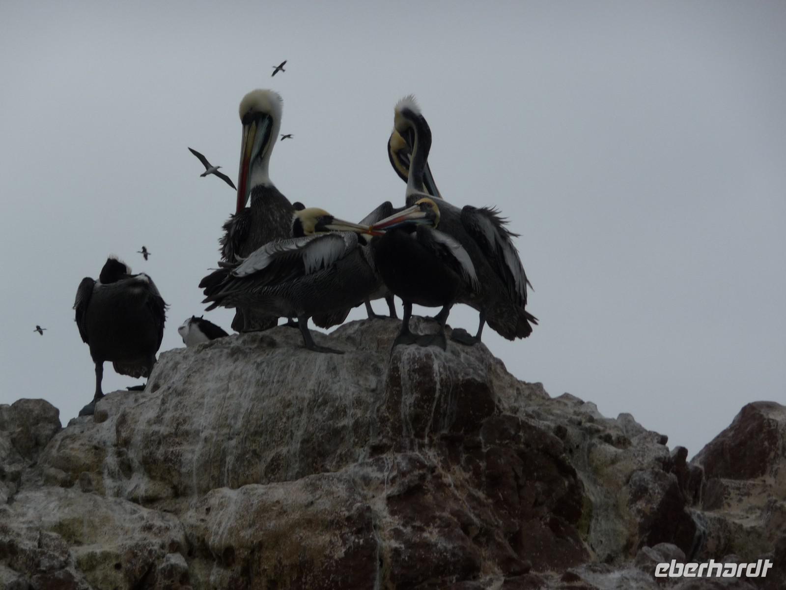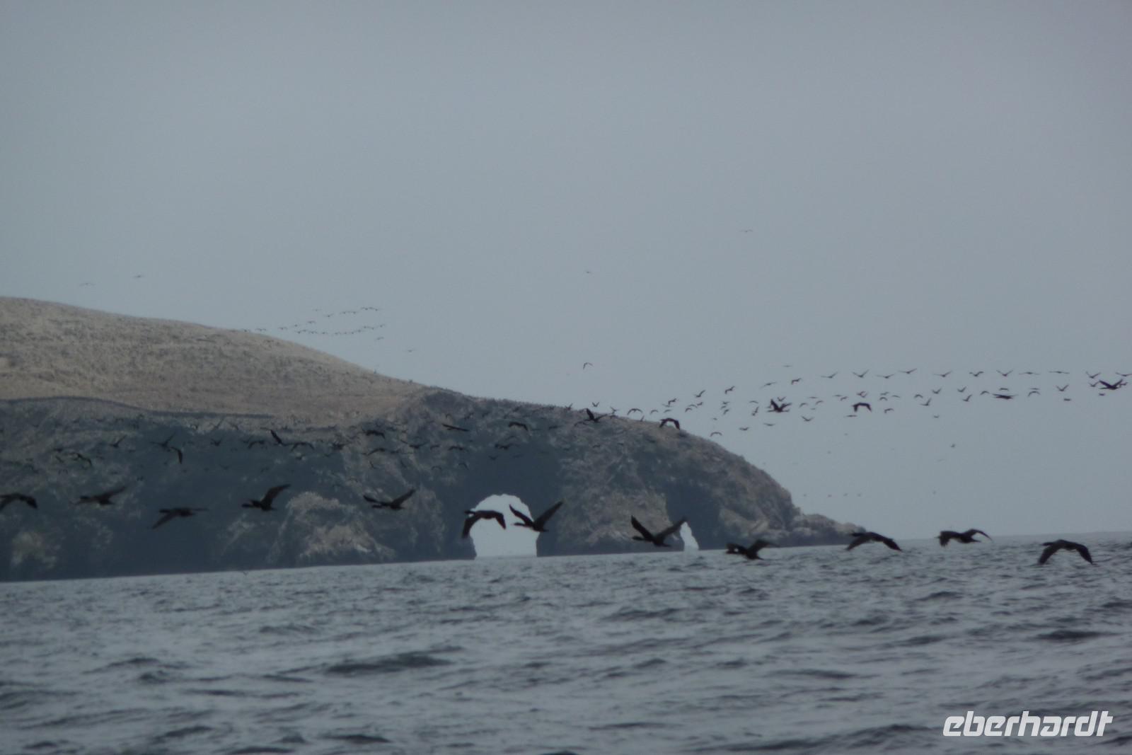 In Paracas angekommen fahren wir mit dem Schnellboot zu den Ballestas Inseln. Auf dem Weg dorthin werden wir von hunderten Vögeln begleitet und tausende warten auf uns auf den Inseln. So viele verschiedene Vogelarten und faul in der Sonne liegende Robben haben wir einfach nicht erwartet. Wir sind überwältigt.