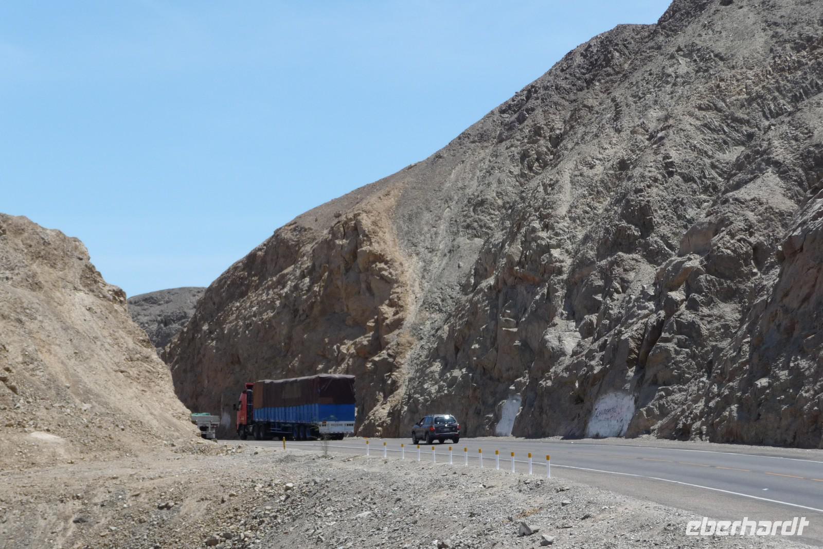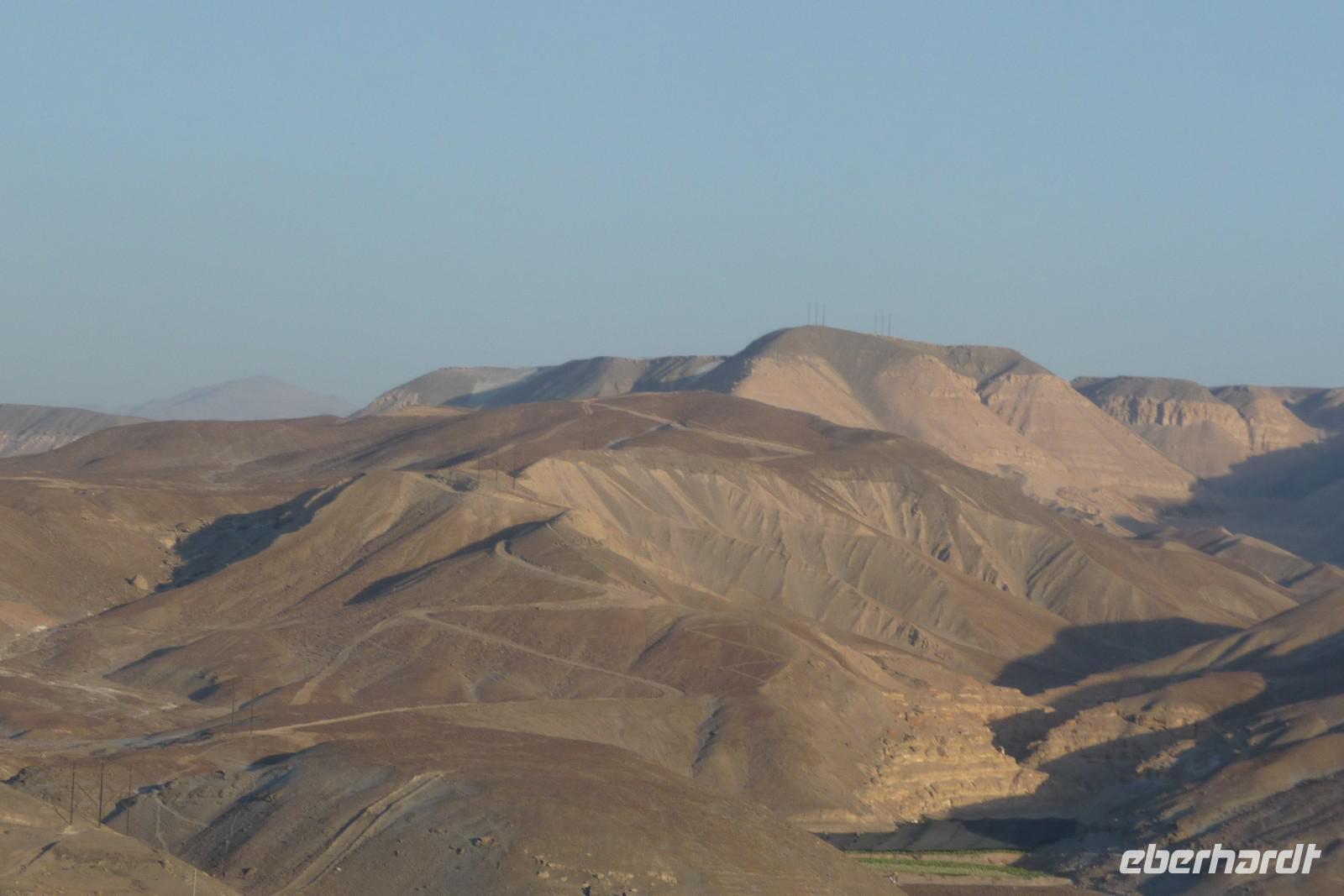 Eine lange Fahrt steht heute auf unserem Programm. Damit wir die schöne Landschaft auch bei Tageslicht erleben können, starten wir wieder früh am Morgen. Glücklicherweise haben wir die Nazca Linien bereits am Vortag überflogen, denn der Flughafen ist wegen schlechten Windverhältnissen am Morgen weiterhin geschlossen.