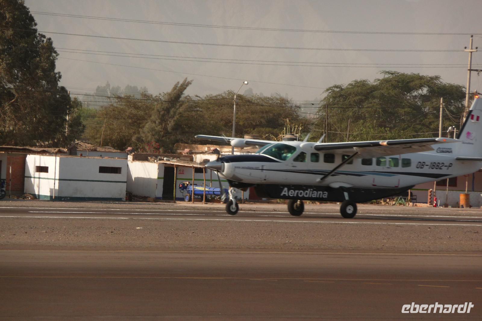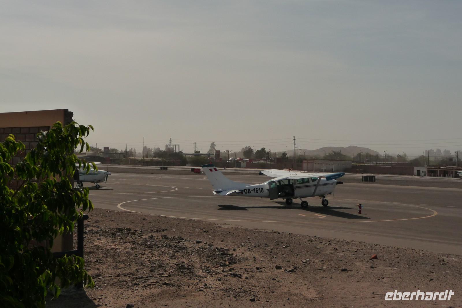 In Nazca angekommen, werden alle noch einmal schnell auf die Waage gestellt und dann werden 12 Personen in die 1. Maschine verteilt. Die 2. Maschine darf auch noch starten, sodass alle die Nazca Linien sehen konnten. Nach der Landung wird der Flughafen geschlossen, da der Wind inzwischen zu stark geworden ist. Welch ein Glück!!!