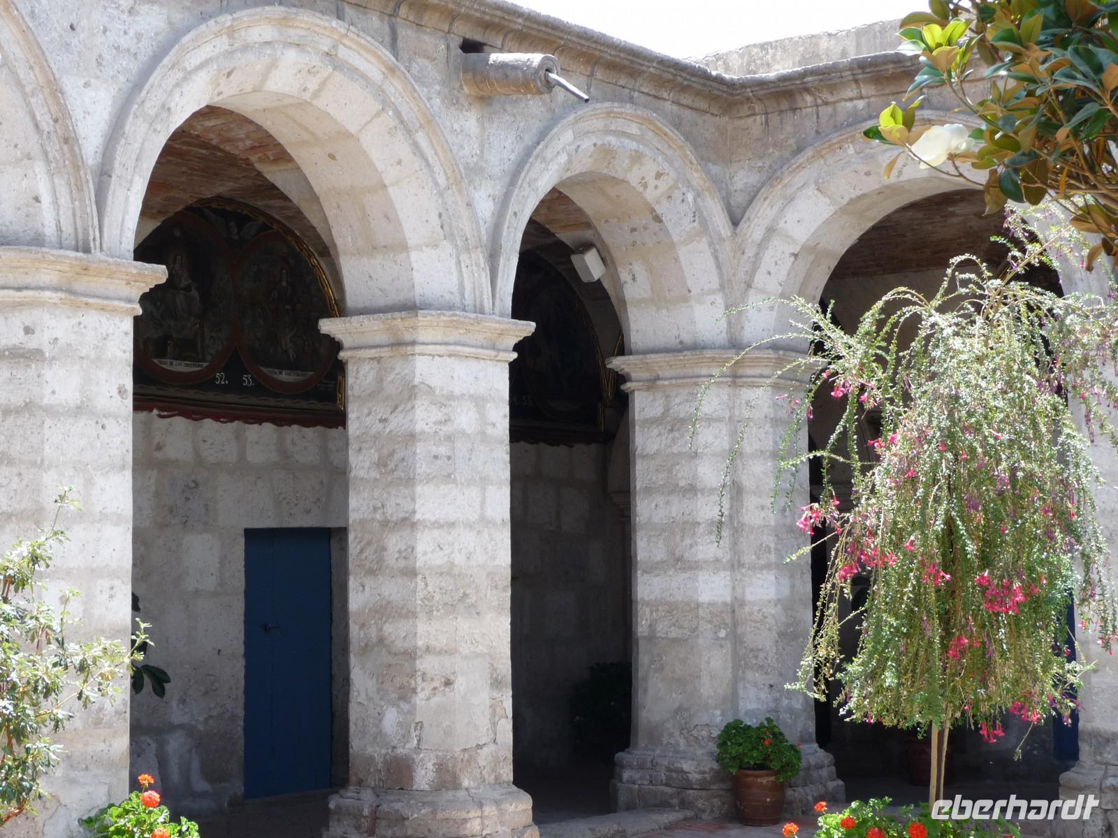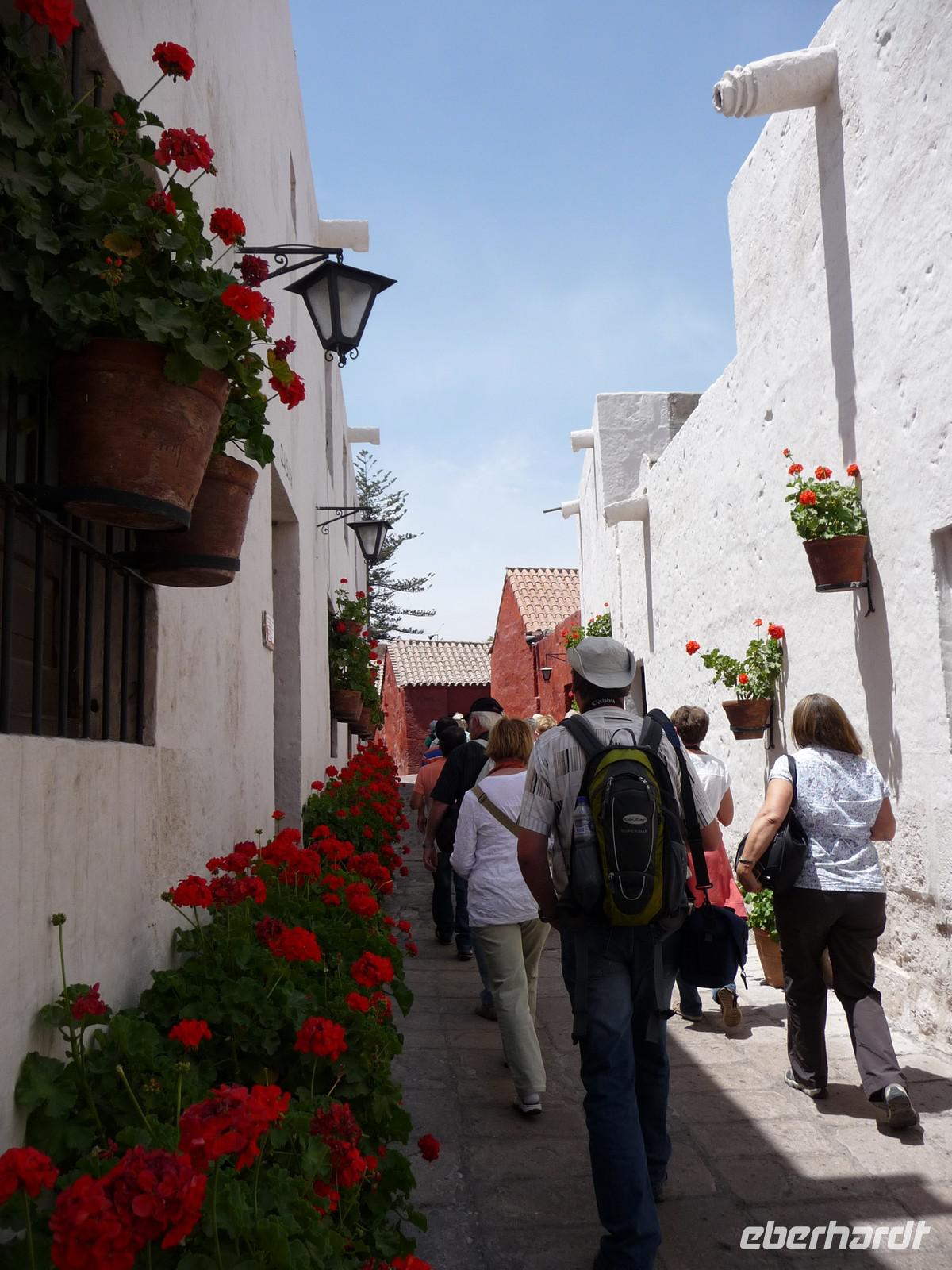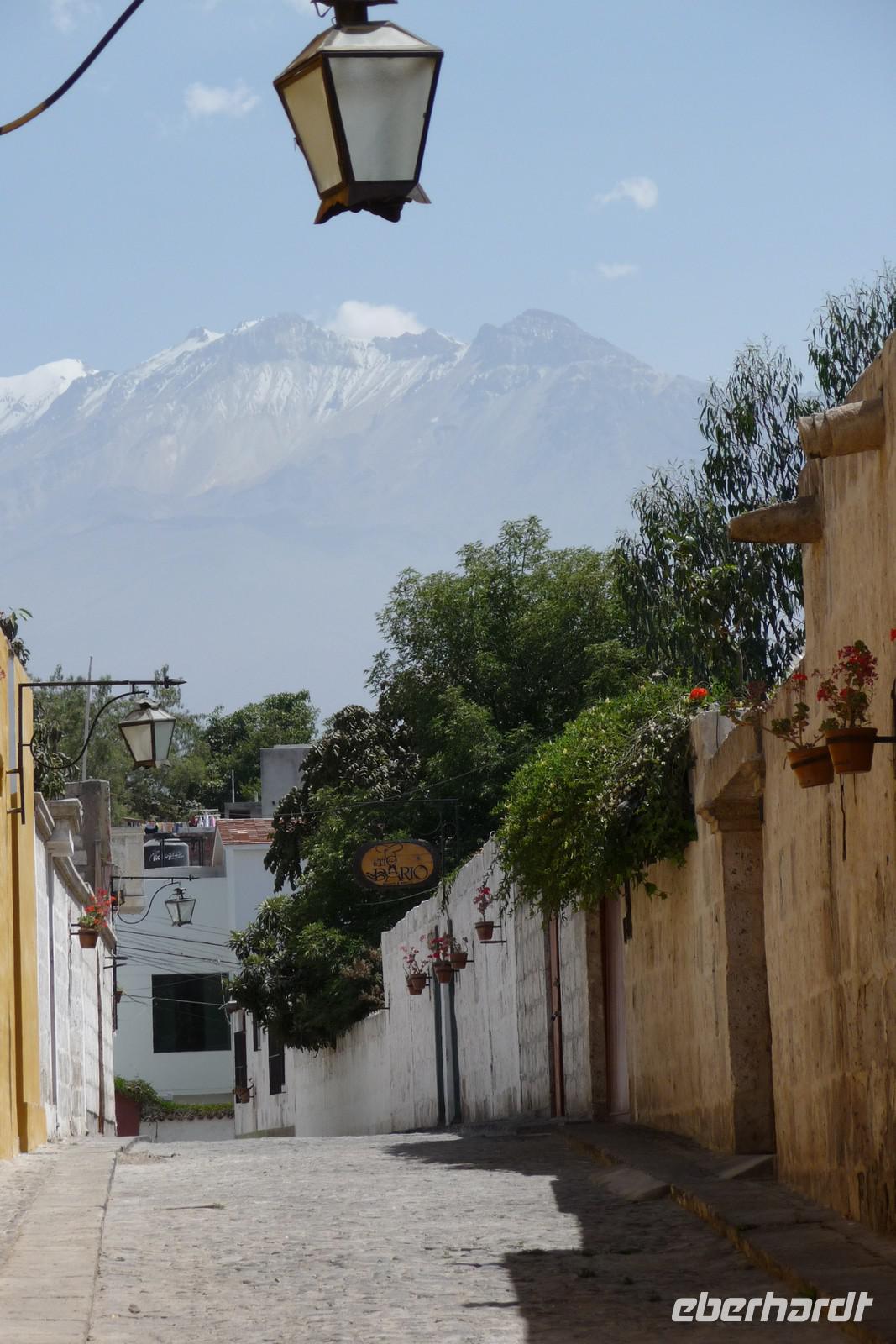 Heute wollen wir Arequipa näher kennenlernen. Zuerst fahren wir nach Yanahuara um vom Aussichtspunkt Carmen Alto einen Blick auf den Vulkan Misti und die Umgebung zu bekommen. Wir besichtigen mit unserem Stadtführer Rolando die Kirche La Compania aus weißem Vulkangestein und machen einen Rundgang entlang des Hauptplatzes. Das Highlight des Stadtrundganges ist meiner Meinung nach die Führung durch die Klosteranlage „Santa Catalina". Das Kloster befindet sich im historischen Stadtkern von Arequipa und zeigt das Leben der Nonnen und die Utensilien, die sie während ihres Lebens nutzen.