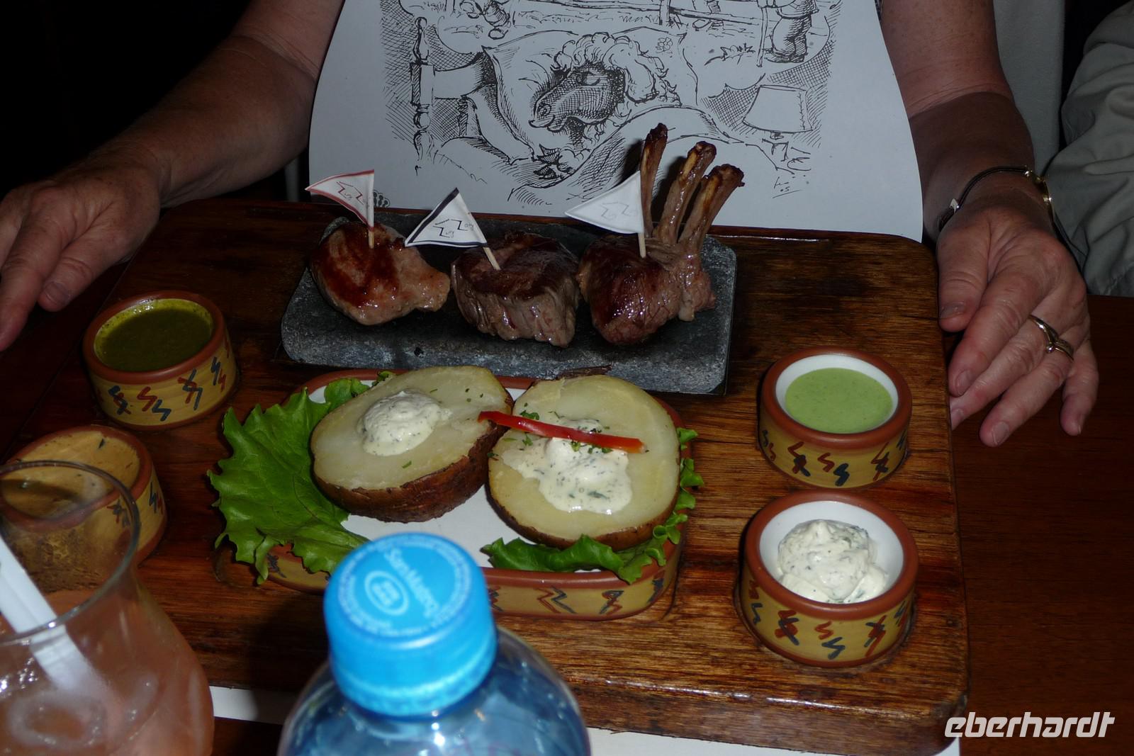 Für den Abend habe ich Plätze in einem ganz besonderen Restaurant bestellt. Das Zig Zag liegt nicht weit weg von unserem Hotel und ist bekannt für sein Alpakafleisch auf Vulkangestein gegrillt. Fast alle probieren es und sind begeistert vom zarten Fleisch und dem Ambiente des Restaurants.