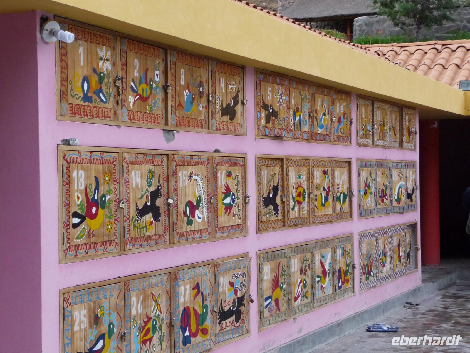 Anschließend fahren wir eine Stunde mit dem Bus nach Pisaq. Dort besuchen wir den Markt, so hat jeder noch mal die Möglichkeit die letzten Souvenirs zu kaufen. Auf dem Weg zum Hotel halten wir noch einmal an einem typischen südamerikanischen Friedhof.