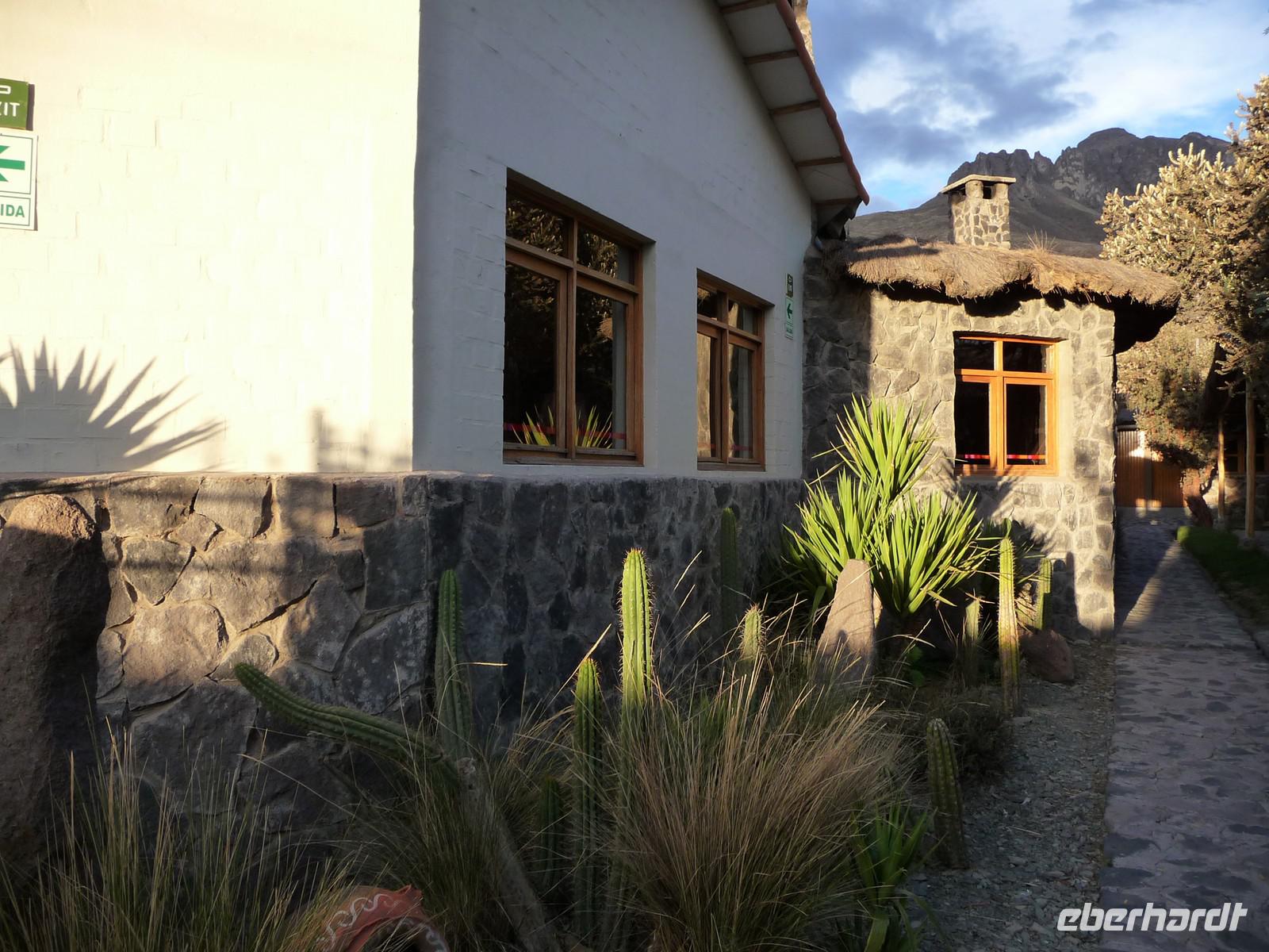 In Chivay angekommen, lassen wir uns die Gerichte des landestypischen Buffets schmecken. Danach checken wir wieder in ein Casa Andina Hotel ein. Dort liegen schon die Badetücher für unseren Thermalbadbesuch bereit.