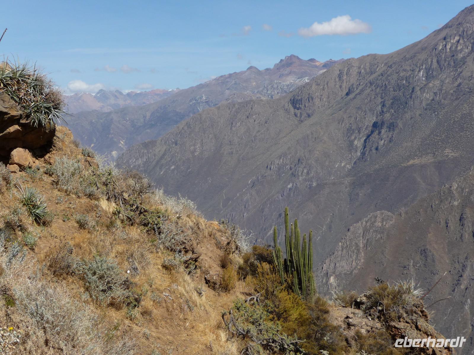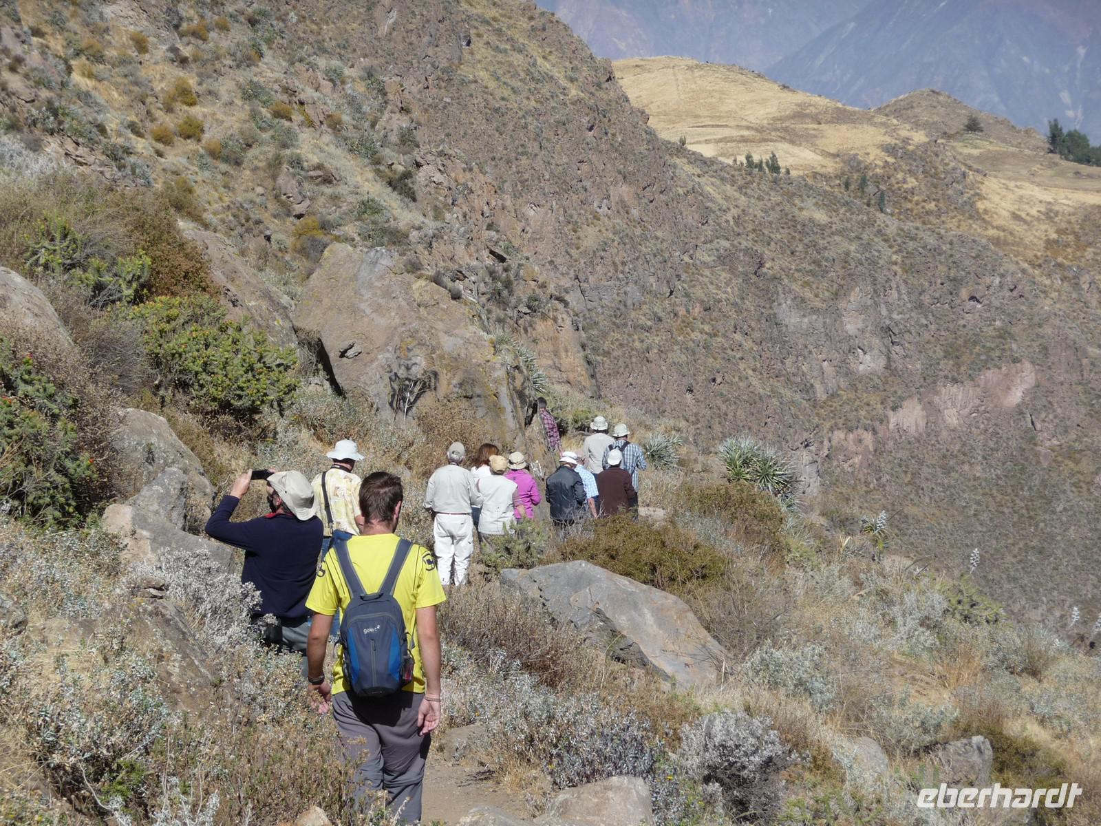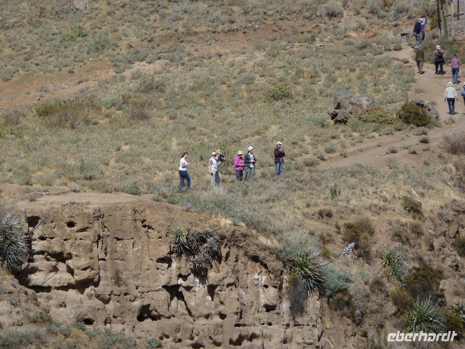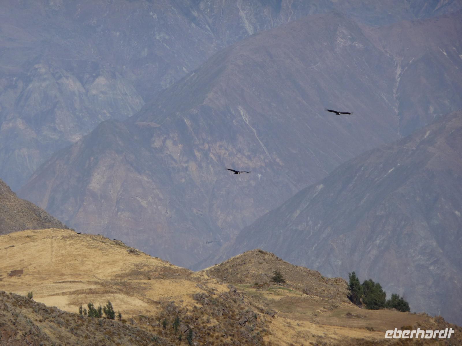 Das Wetter ist mal wieder perfekt und wir laufen bei schönstem Sonnenschein zum Cruz del Condor auf einem leicht zu bewältigendem Wanderweg. Wir haben Glück und werden auf dem Weg von Andenkondoren mit über 3 Meter Spannweite begleitet.