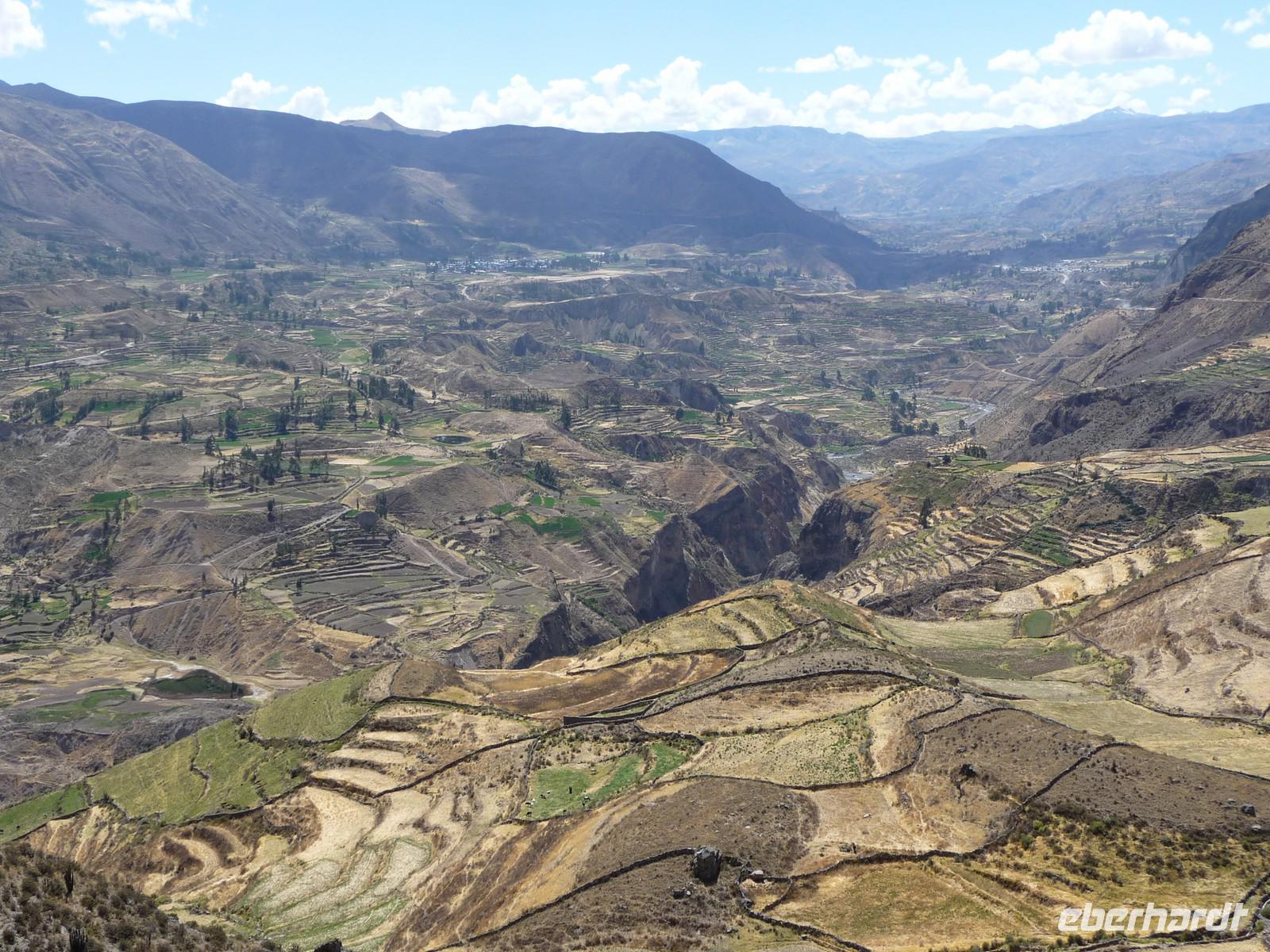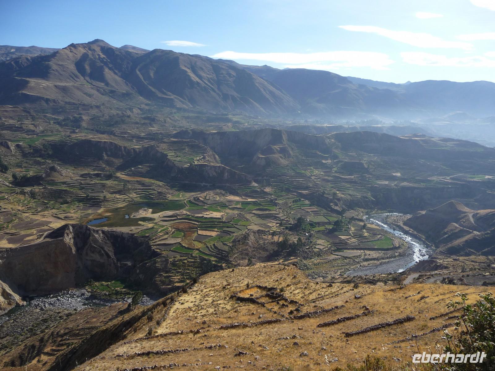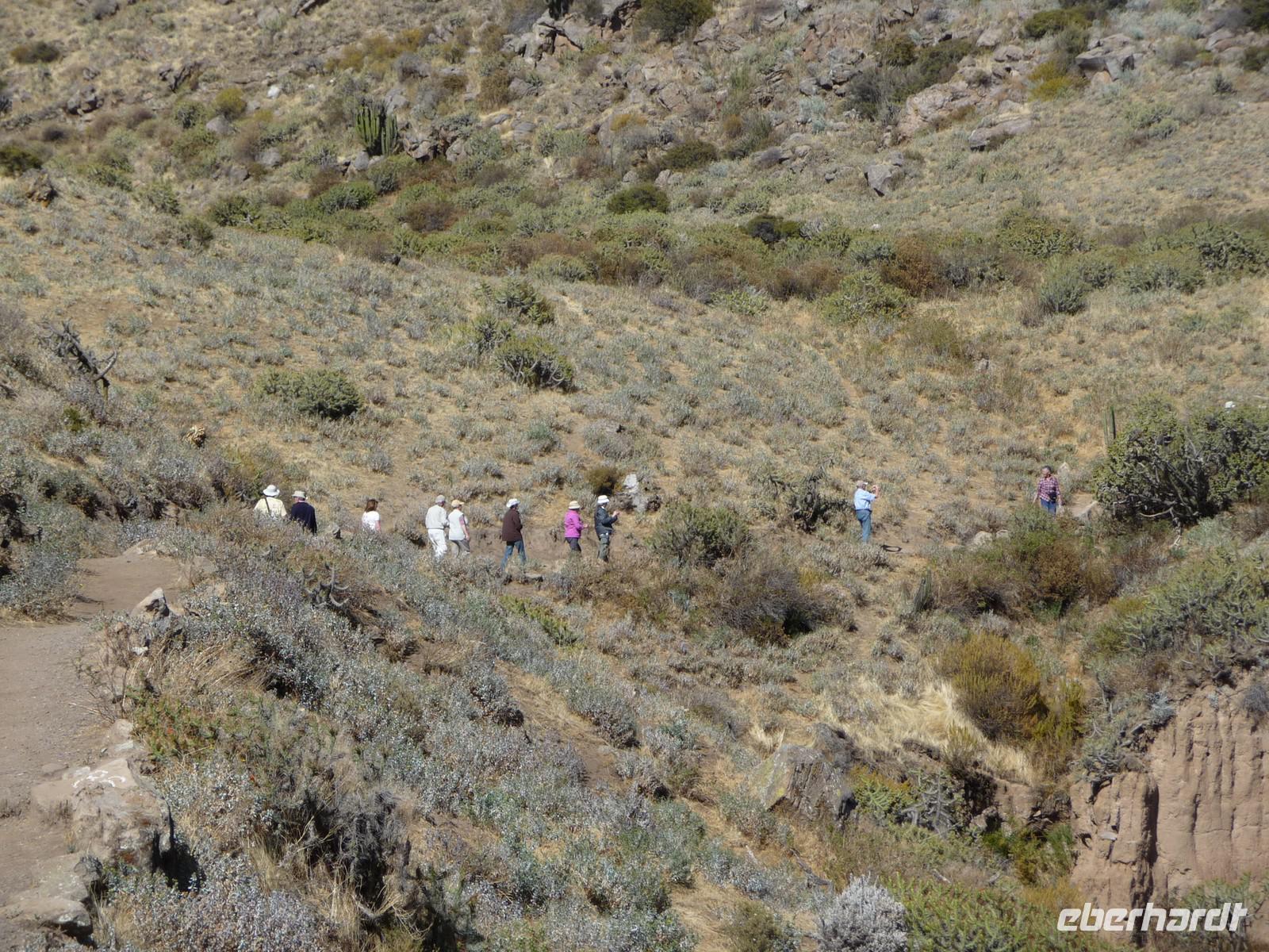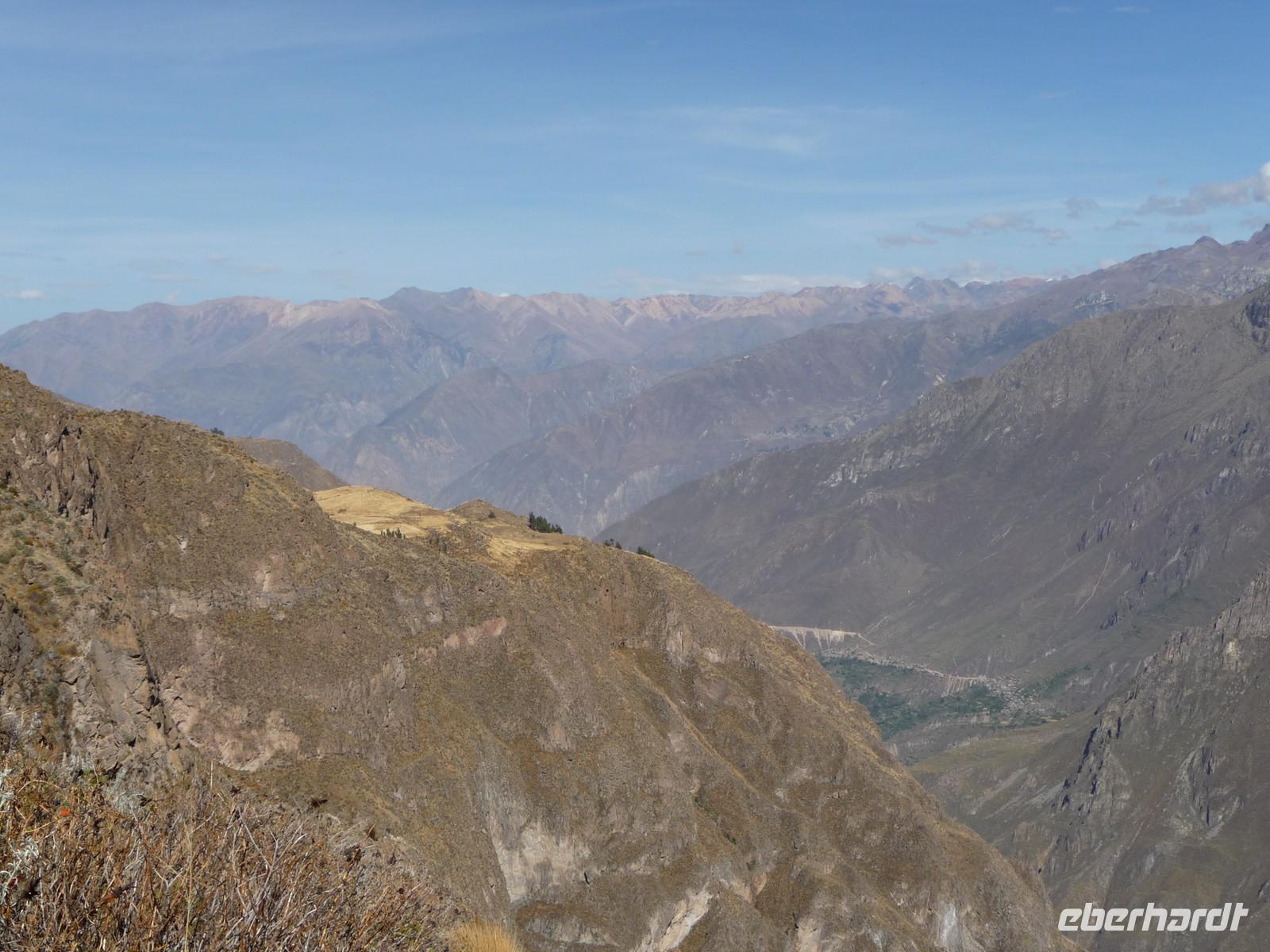 Das Wetter ist mal wieder perfekt und wir laufen bei schönstem Sonnenschein zum Cruz del Condor auf einem leicht zu bewältigendem Wanderweg. Wir haben Glück und werden auf dem Weg von Andenkondoren mit über 3 Meter Spannweite begleitet.