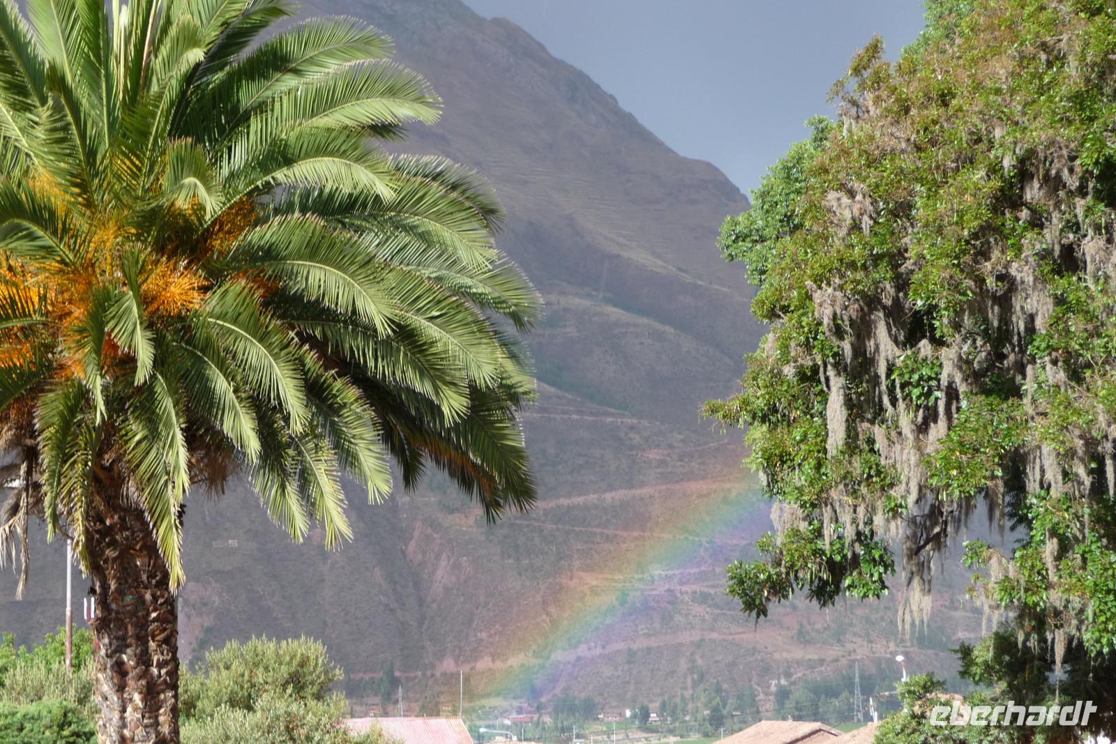 Unser großes Gepäck lassen wir diesmal im Hotel und starten unsere Reise ins Heilige Tal mit Handgepäck für eine Nacht. Am Vormittag erreichen wir die Weberei in Chinchero und lassen uns erklären wie die Wolle gefärbt und verarbeitet wird. Nach einem kurzen Spaziergang durch den Ort erreichen wir den Regenbogentempel mit herrlichen Inka-Terrassen. Die Stadt war Sommersitz der Inkas, der 10. Inka Túpac Yupanqui soll hier seinen Lieblingsaufenthaltsplatz gehabt haben.