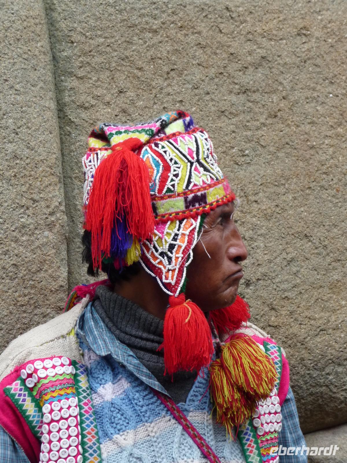 Die nächsten 2 Stunden fährt uns Willi gewissenhaft über den Titicaca-See zur Insel Taquile. Am Hafen Salacanta steigen wir aus und laufen zum gebuchten Restaurant wo man schon mit der Quinoa-Suppe und der frisch gebackenen Forelle auf uns wartet. Frisch gestärkt besichtigen wir den Hauptplatz und suchen leider die viel angepriesenen Mützenstricker. Scheinbar haben gerade alle Siesta bzw. pflanzen ihre Felder neu. Immerhin entdecken wir einen Opi, der gerade an einer Mütze strickt.