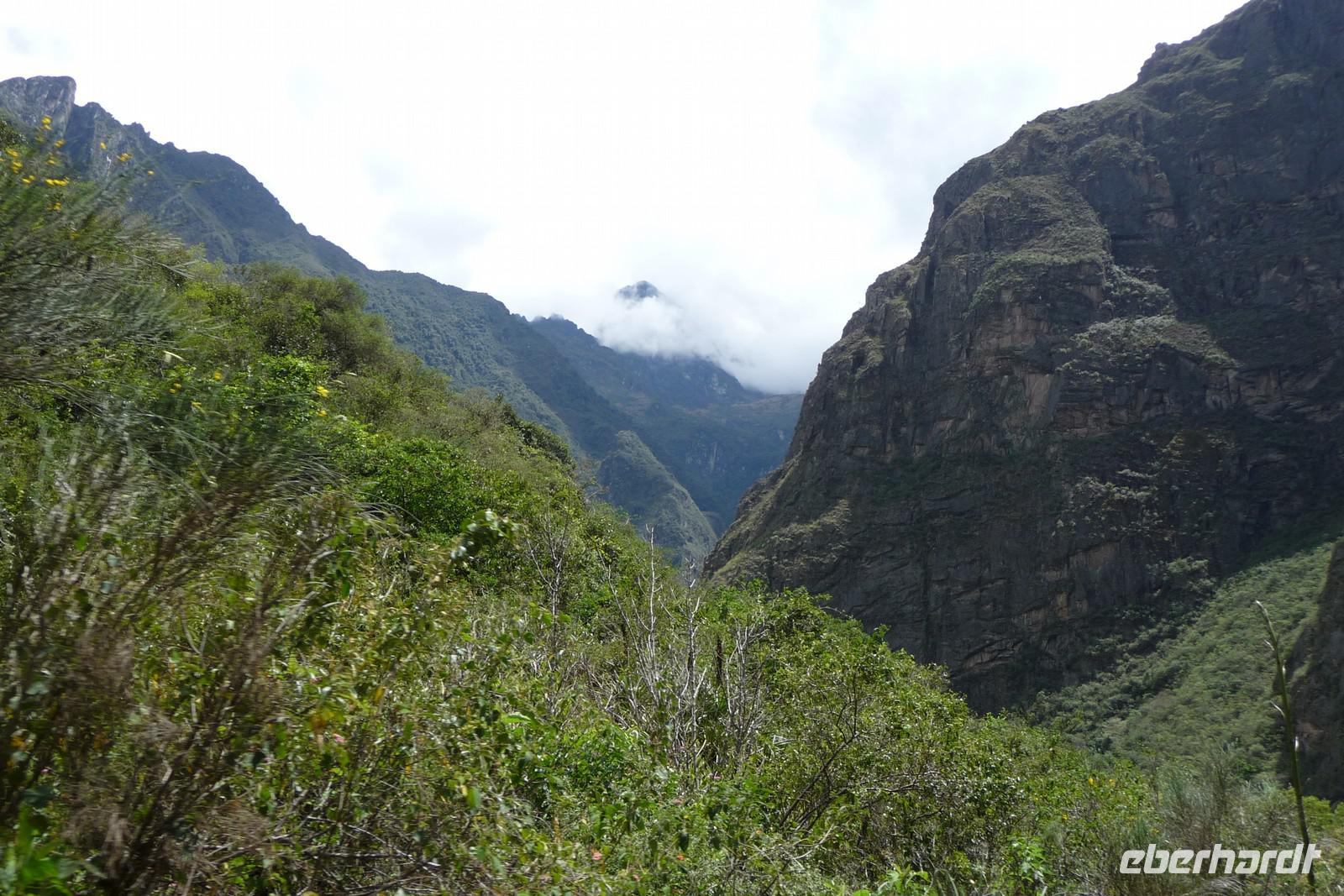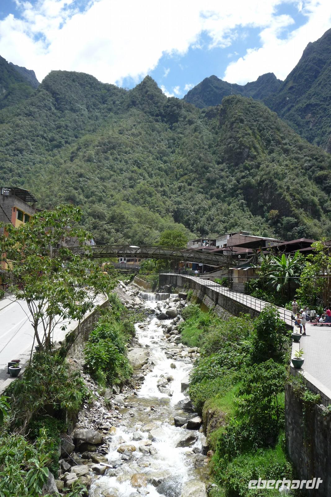 Der Tag beginnt wieder zeitig, denn das Highlight unserer Reise steht heute auf unserem Programm. Mit dem Bus werden wir zum Bahnhof in Ollanta gebracht. Wir besteigen die Peru Rail in der "Expedition-Klasse" und sind erstaunt wie komfortabel diese ausgestattet ist. Sogar ein Panoramadach gibt es. Im Zug lehnen wir uns für die nächsten anderthalb Stunden zurück und genießen die an uns vorüberziehende Landschaft. Während der Fahrt wird uns Coca Tee oder Kaffee serviert, sogar ein kleiner Snack wird gereicht. Schließlich erreichen wir Aguas Calientes am Fuße des Machu Picchus und fahren mit dem Bus die Serpentinen hinauf.