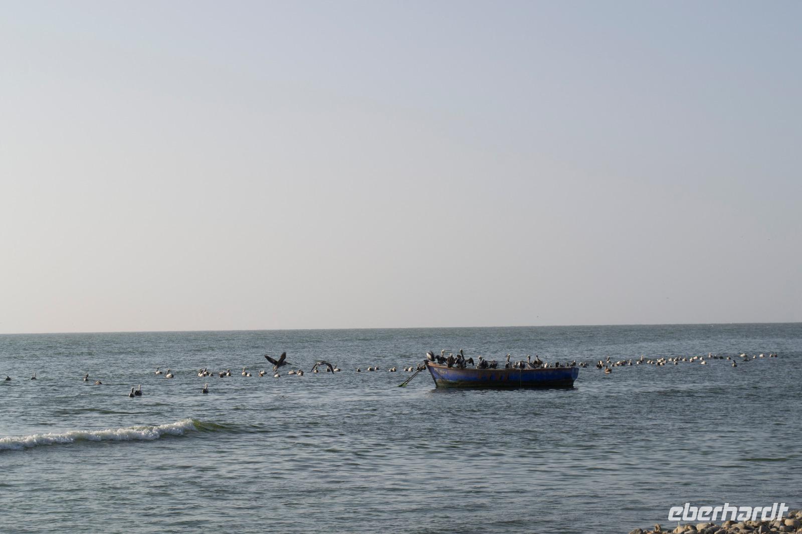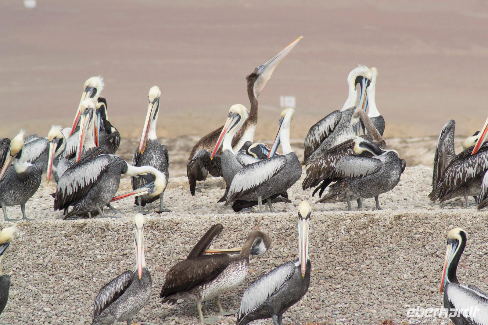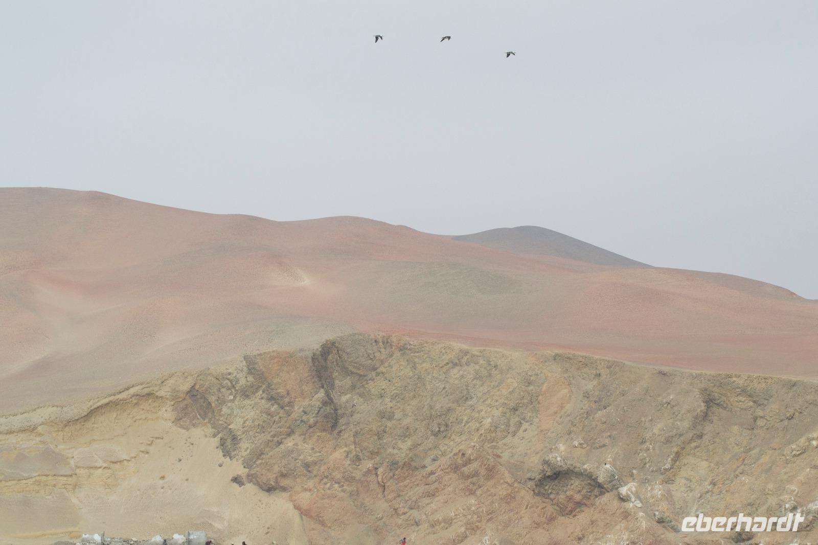 Mit einer frischen Meeresbriese in der Luft wollten wir heute die Tierwelt der Ballestas Inseln erkunden. Die Inselgruppe besteht aus den drei Inseln Ballestas Norte, Ballestas Centro und Ballestas Sur, sowie mehreren kleinen Felsen. Nach einer kleinen Sicherheitsinstruktion und hineinschlüpfen in die Sicherheitswesten legte das Boot mit einem deutschen Guide ab. Unser Reiseleiter Ernesto blieb mit Frau Keil an Land und plauschte mit Ihr in der Sonne. Nach einer kurzen Fahrt trafen wir bereits auf die ersten Bewohner von Klein Galapagos - viele Pelikane und Kormorane in den verschiedensten Farben. Am Hang eines Hügels erspähten wir einen riesigen rund 200 Meter hohen Geoglyphen, welcher an die Gebilde der Nazca-Linien erinnert. Von den Einheimischen wird es aufgrund seiner Form "El Candelabro" genannt, was übersetzt Kronleuchter bedeutet. Es gibt viele Erklärungen für diese Felszeichnung, eine davon ist, dass sie zur Verständigung und Navigation diente. Je näher wir den Inseln kamen, umso stärker wurde auch der Geruch von Ammoniak in unseren Nasen, denn der Kode der Vögel ist sehr kostbar, kaum vorstellbar. Wir wussten gar nicht, was wir als erstes bestaunen sollten, die niedlichen Humboldt-Pinguine wie Sie die Felsen entlang kletterten. Die große Menge an Vögeln, welche über uns kreisten und auf den Felsen saßen oder die faulen Seelöwen, welche sich in der Sonne badeten. Nach vielen tollen Schnappschüssen und gesammelten Eindrücken ging die Fahrt wieder zurück nach Paracas, wo wir den restlichen Nachmittag in dem wundervollen Ort verbringen konnten. Viele Gäste ruhten sich am Pool aus und spazierten noch einmal durch den kleinen Ort mit Souvenirgeschäften. Zunächst hatte sich nur ein Paar entschlossen am Nachmittag eine Wüstentour im Buggy zu unternehmen, doch als 5 weitere Gruppenmitglieder inklusive der Reisebegleitung Laura das Fahrzeug sahen entschlossen sich alle spontan mitzufahren. Eine richtige Entscheidung! Nach zwei Stunden purem Adrenalin kamen wir wieder pünktlich zusammen Abendessen zurück. Der Reiseleiter brachte zunächst den ersten Teil der Gruppe in das Restaurant, damit wir uns von dem Sand in unserer Kleidung befreien konnten. Danach kamen auch wir nach und ließen den Abend alle gemeinsam ausklingen.