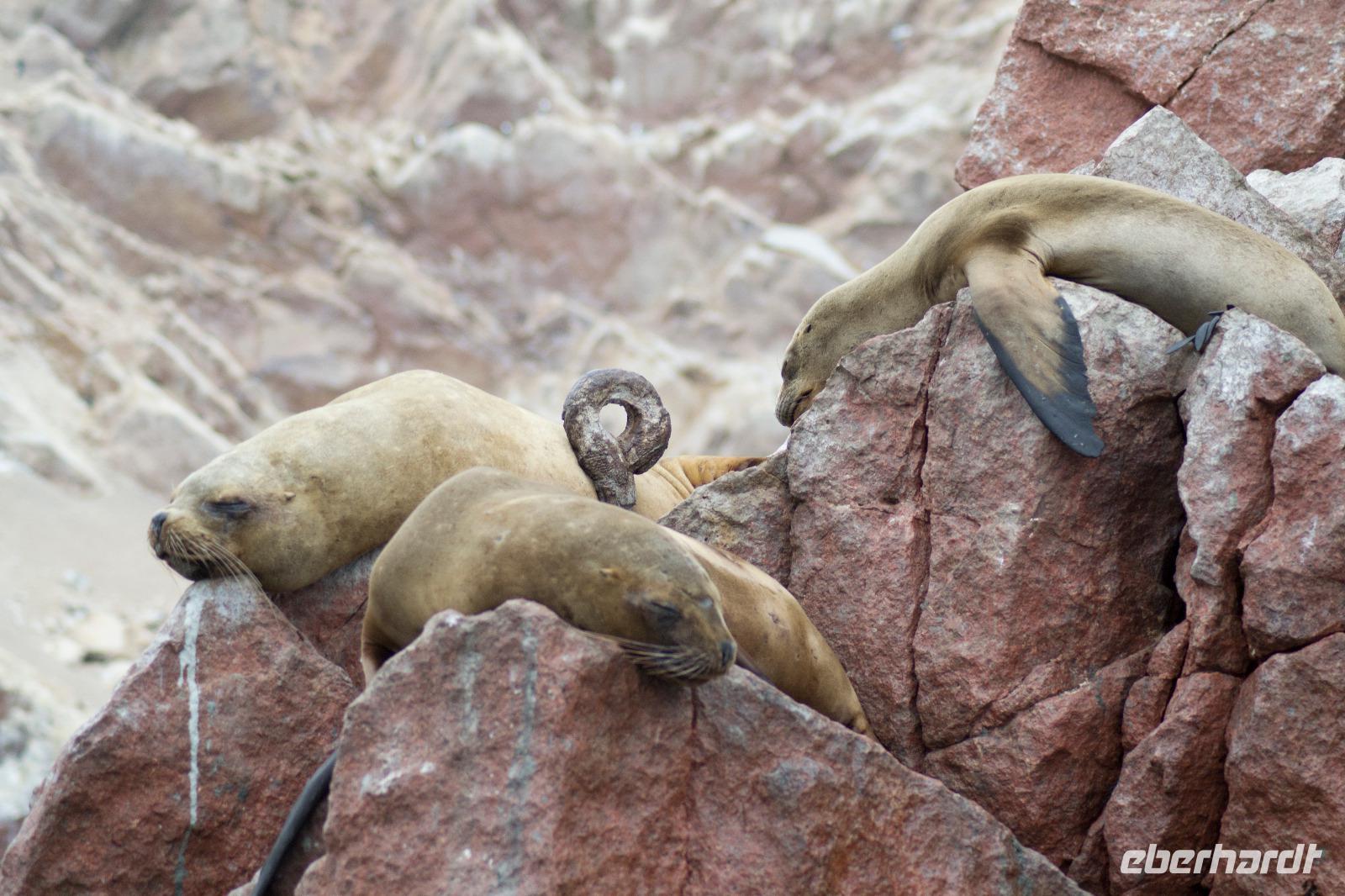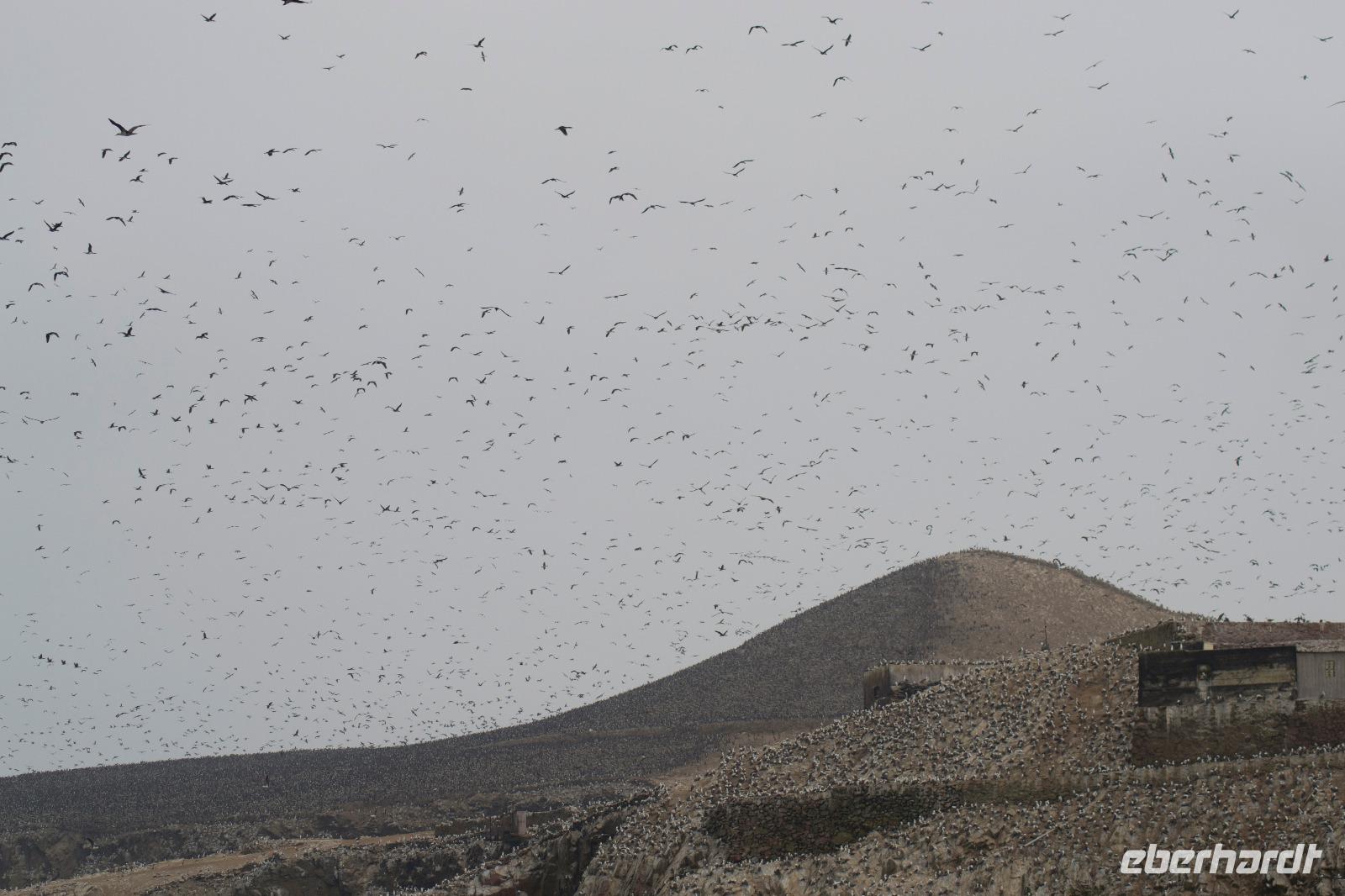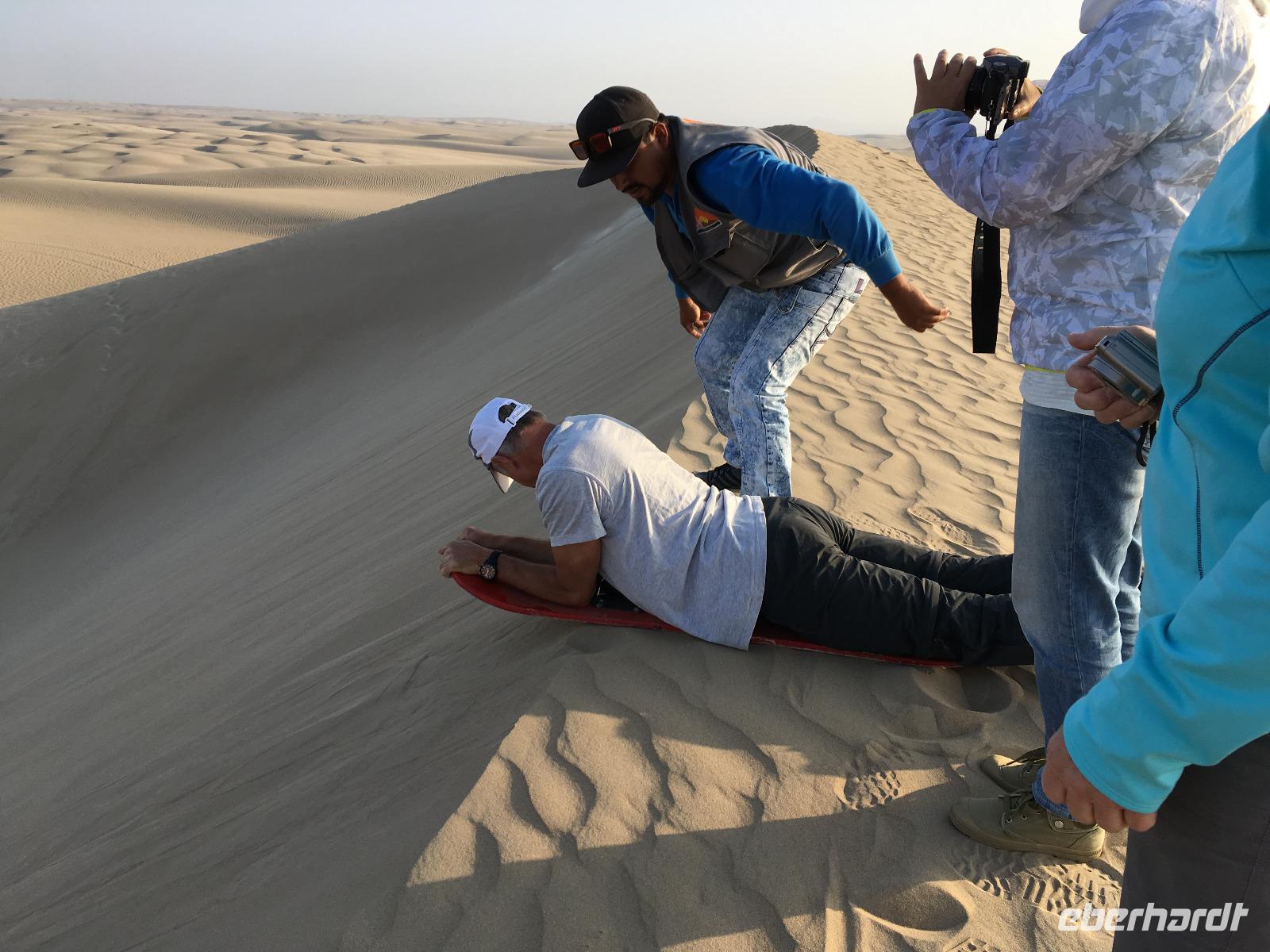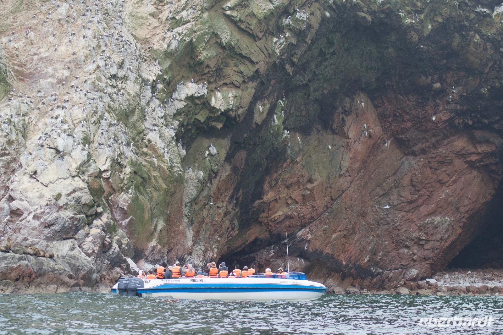 Mit einer frischen Meeresbriese in der Luft wollten wir heute die Tierwelt der Ballestas Inseln erkunden. Die Inselgruppe besteht aus den drei Inseln Ballestas Norte, Ballestas Centro und Ballestas Sur, sowie mehreren kleinen Felsen. Nach einer kleinen Sicherheitsinstruktion und hineinschlüpfen in die Sicherheitswesten legte das Boot mit einem deutschen Guide ab. Unser Reiseleiter Ernesto blieb mit Frau Keil an Land und plauschte mit Ihr in der Sonne. Nach einer kurzen Fahrt trafen wir bereits auf die ersten Bewohner von Klein Galapagos - viele Pelikane und Kormorane in den verschiedensten Farben. Am Hang eines Hügels erspähten wir einen riesigen rund 200 Meter hohen Geoglyphen, welcher an die Gebilde der Nazca-Linien erinnert. Von den Einheimischen wird es aufgrund seiner Form "El Candelabro" genannt, was übersetzt Kronleuchter bedeutet. Es gibt viele Erklärungen für diese Felszeichnung, eine davon ist, dass sie zur Verständigung und Navigation diente. Je näher wir den Inseln kamen, umso stärker wurde auch der Geruch von Ammoniak in unseren Nasen, denn der Kode der Vögel ist sehr kostbar, kaum vorstellbar. Wir wussten gar nicht, was wir als erstes bestaunen sollten, die niedlichen Humboldt-Pinguine wie Sie die Felsen entlang kletterten. Die große Menge an Vögeln, welche über uns kreisten und auf den Felsen saßen oder die faulen Seelöwen, welche sich in der Sonne badeten. Nach vielen tollen Schnappschüssen und gesammelten Eindrücken ging die Fahrt wieder zurück nach Paracas, wo wir den restlichen Nachmittag in dem wundervollen Ort verbringen konnten. Viele Gäste ruhten sich am Pool aus und spazierten noch einmal durch den kleinen Ort mit Souvenirgeschäften. Zunächst hatte sich nur ein Paar entschlossen am Nachmittag eine Wüstentour im Buggy zu unternehmen, doch als 5 weitere Gruppenmitglieder inklusive der Reisebegleitung Laura das Fahrzeug sahen entschlossen sich alle spontan mitzufahren. Eine richtige Entscheidung! Nach zwei Stunden purem Adrenalin kamen wir wieder pünktlich zusammen Abendessen zurück. Der Reiseleiter brachte zunächst den ersten Teil der Gruppe in das Restaurant, damit wir uns von dem Sand in unserer Kleidung befreien konnten. Danach kamen auch wir nach und ließen den Abend alle gemeinsam ausklingen.