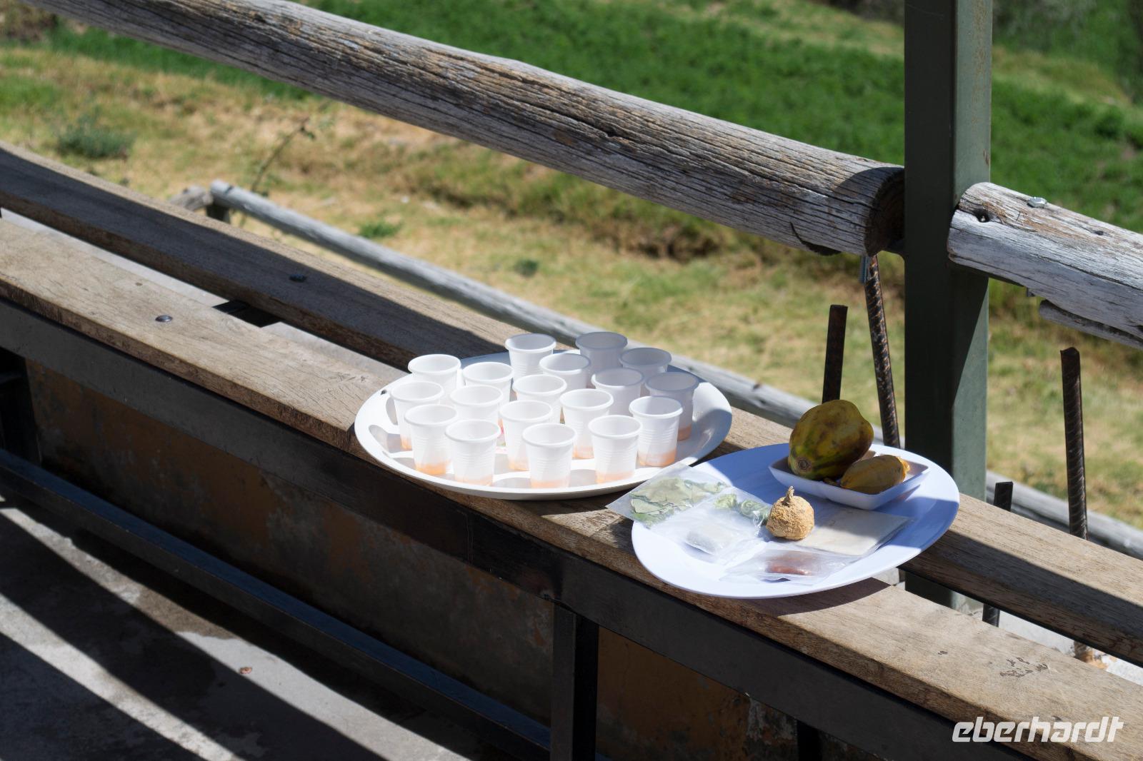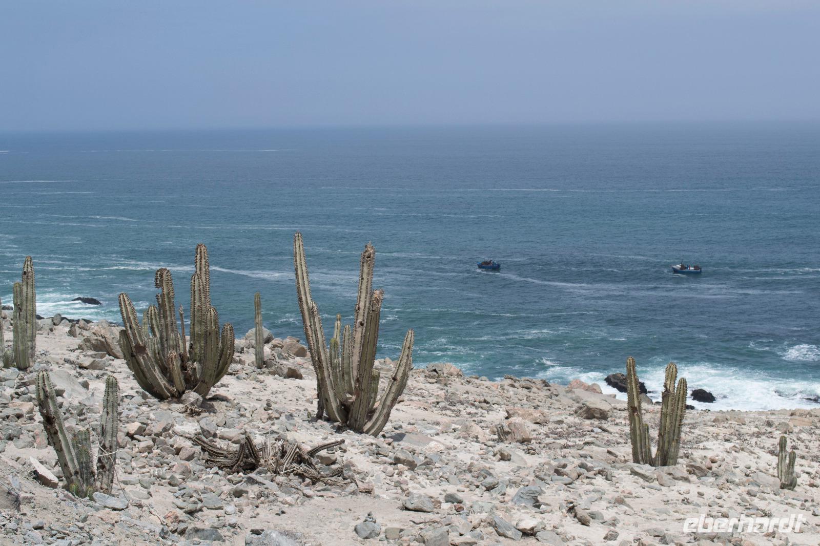 Nach einem ausgiebigen Frühstück setzten wir uns in den Bus um eine sehr lange Fahrt entlang der Küste in das Landesinnere zu genießen. Vorbei an den riesigen Kakteenfeldern mit weißen Läusen ging es in Richtung der pazifischen Küste. Wir nutzen die Gelegenheit für einen kurzen Stopp in das kühle Nass. Eine willkommene Abkühlung für die Füße an dem traumhaften Strand. Wir träumten von einer Palme, einer Sonnenliege und einem frischen Cocktail in der Hand. Doch leider war dies nicht Teil unserer Rundreise. Unsere Pause verbrachten wir in Chala, wo frische Bananen, Mandarinen und Äpfel gekauft haben. Kurz bevor wir die Küste verließen und uns an die steilen Serpentinen wagten stärkten wir uns noch ein einem Buffetrestaurant mit einheimischen Leckereien. Noch ein kurzer Foto-Stopp an den bis zu 8 Meter hohen Kakteen entlang der Küste, bevor wir die Panamericana verließen und in Richtung dem Hotel in Arequipa fuhren. Zum Glück fand heute ein Fußballspiel von Peru gegen Agentien statt, somit sollten wir mit wenig Verkehr schnell durch die Stadt kommen. Vor dem Sonnenuntergang verwöhnt uns Laura als Abschied von der Küste noch mit einem scharfen Pisco. Nach dem Check-in in das Stadthotel gingen die meisten Gäste bereits auf die Zimmer, denn man war noch gut gefüllt von dem ausgewogenen Mittagsbuffet.