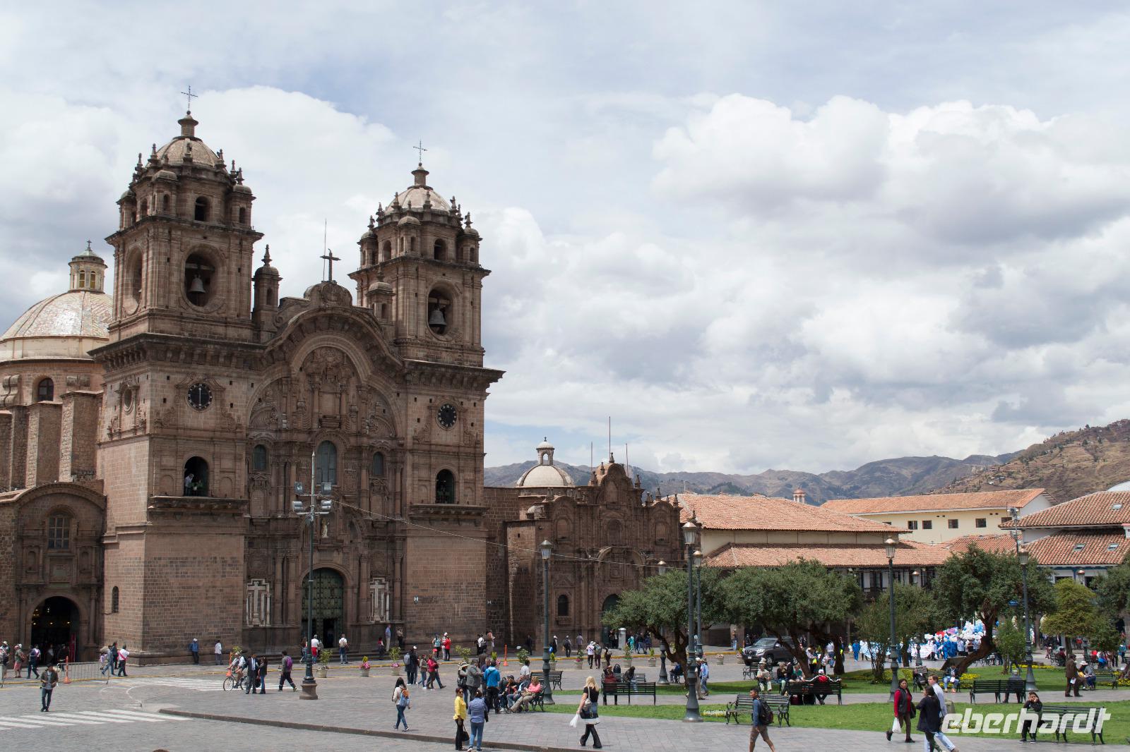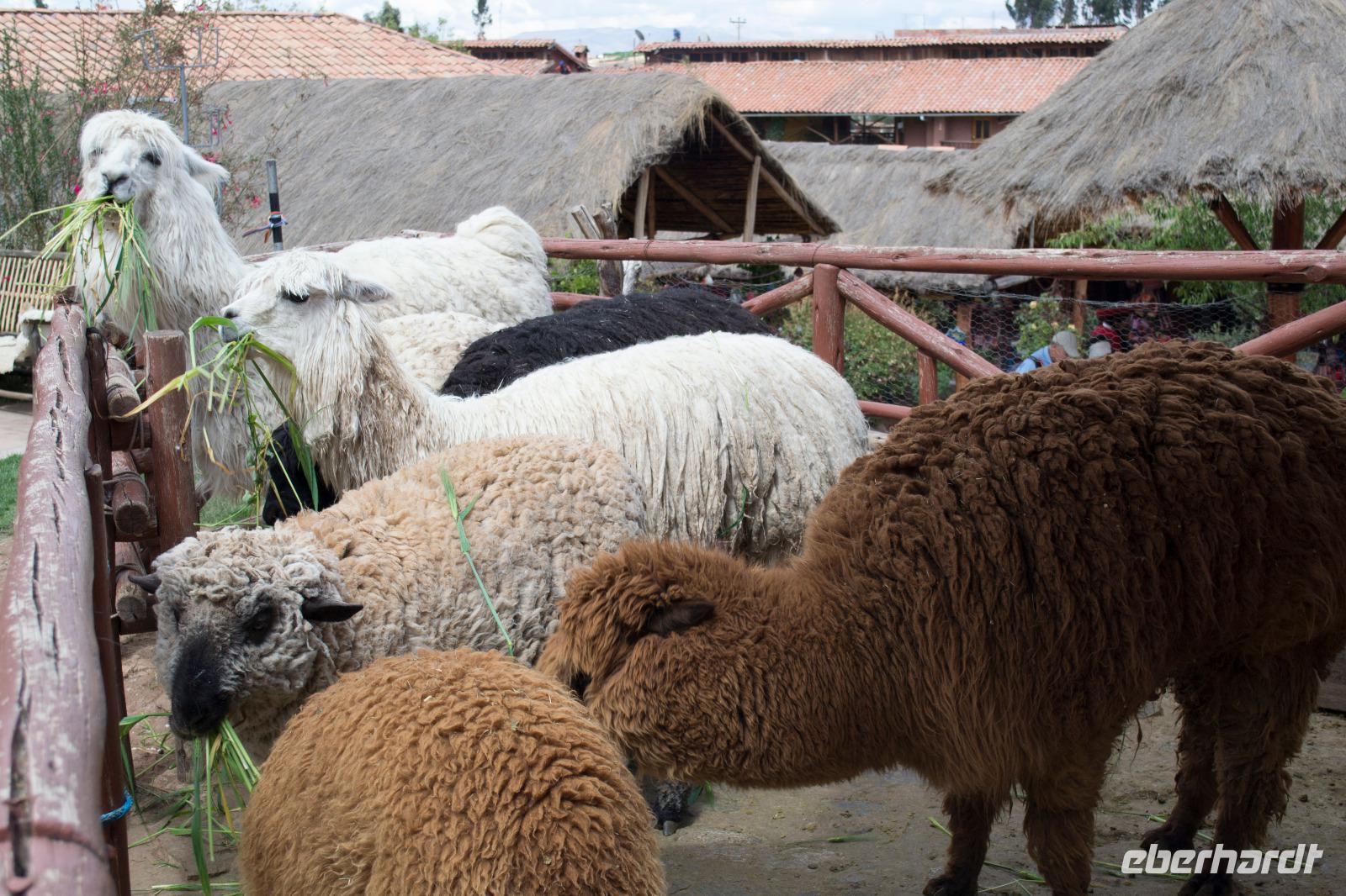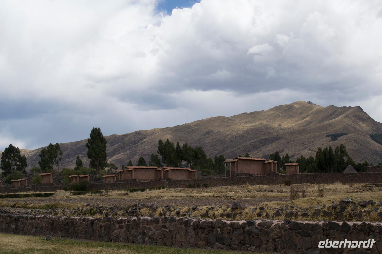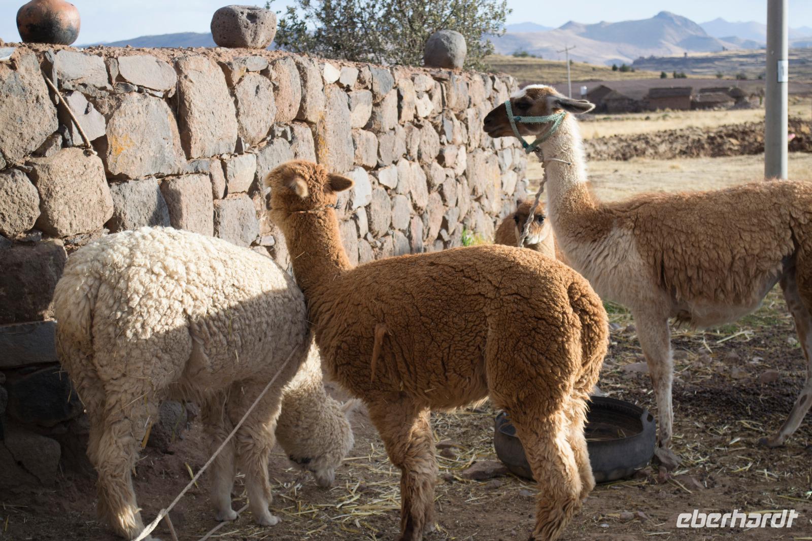 Nun traten wir unsere letzte Reiseetappe durch die beeindruckende Berglandschaft der Anden in Richtung Cusco an. Wir sagten den Höhenmetern auf Wiedersehen und begrüßten unsere freundliche Reiseleiterin Maria. Rechts und links beobachten wir jede Menge Herden von Lamas und Vicunas. Der Pass „La Raya" mit 4335 Metern sollte unser Abschied von der Höhe sein, ab jetzt ginge es nur noch nach unten. Nach 1,5 Stunden Busfahrt hielten wir in Raqchi am Tempel Viracocha. Dieses Bauwerk mit 100 Meter Länge und 25 Meter Breite ist das größte Gebäude, das die Inkas errichteten. Die Straßen waren nach einem strengen Muster ausgerichtet, das den Priestern mit Hilfe des Sonneneinfalls astronomische Beobachtungen ermöglichte, um den richtigen Zeitpunkt für die Aussaat und Ernte zu bestimmen. Die Ernten lagerte man dann in den kühlen Speicherhäusern, welche damals schon vor Dieben und Einbrechern sicher waren. Nach der Führung durch die Inkatempel ging es über einen traditionellen Markt zurück in den Bus und zu dem letzten Stopp vor der Ankunft in unserem Stadthotel „Casa Andina Standard" in Cusco. Die im 17. Jahrhundert errichtete Jesuitenkirche von Andahuayillas, welche durch die tollen Malereien und Goldverzierungen auch die „Sixtinische Kapelle der Anden" genannt wird. So viel Reichtum war uns von außen nicht bewusst, doch das Innere der Kirche ließ uns den Atem anhalten. Nach dem Weitertransport der Koffer samt Gästen in kleinere Fahrzeuge durch die engen Gassen Cuscos kamen wir in unserem zunächst unscheinbaren Hotel an. Am Abend besuchten wir noch das Restaurant „Pachapapa" mit einem romantischen Innenhof.