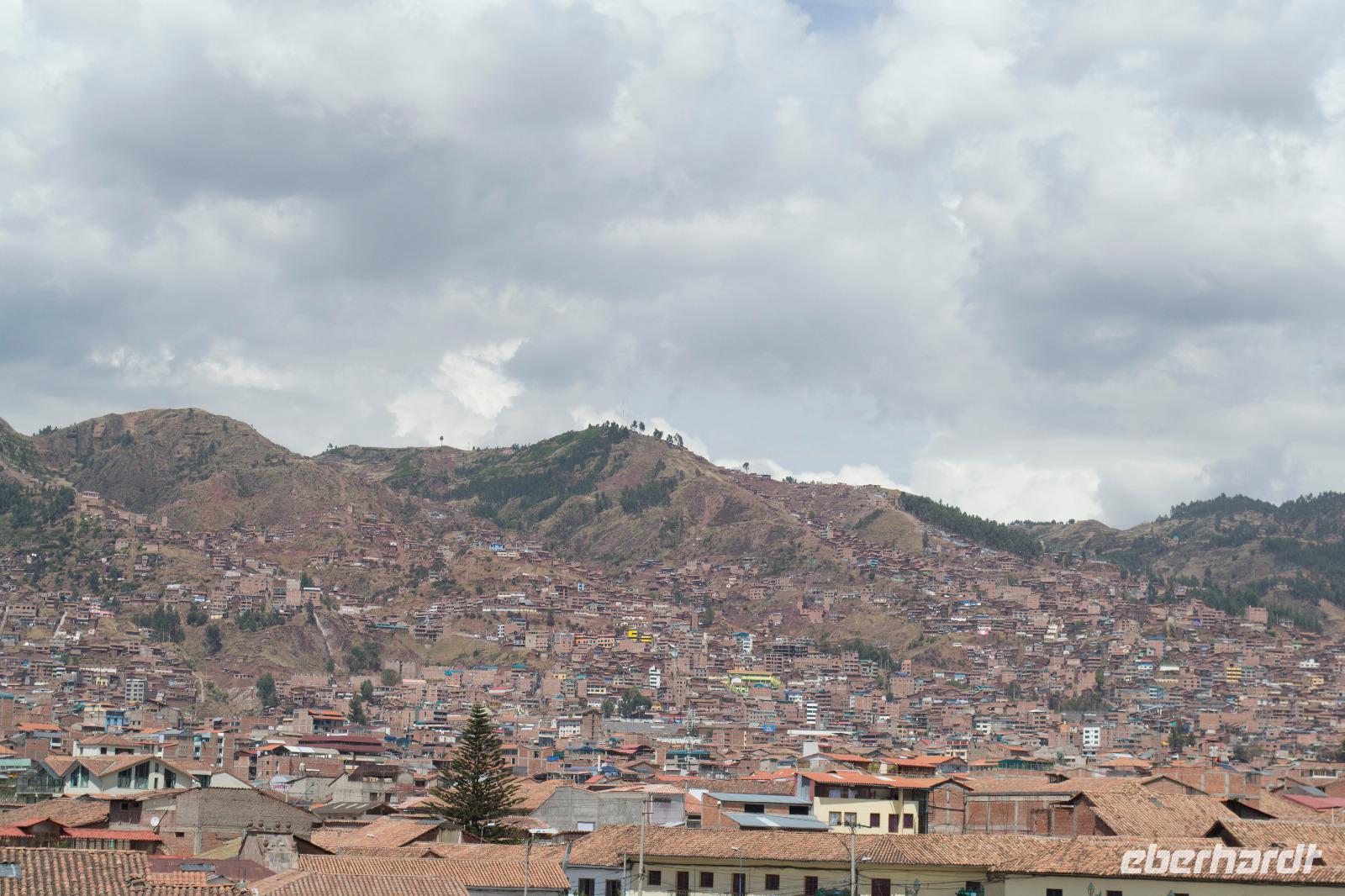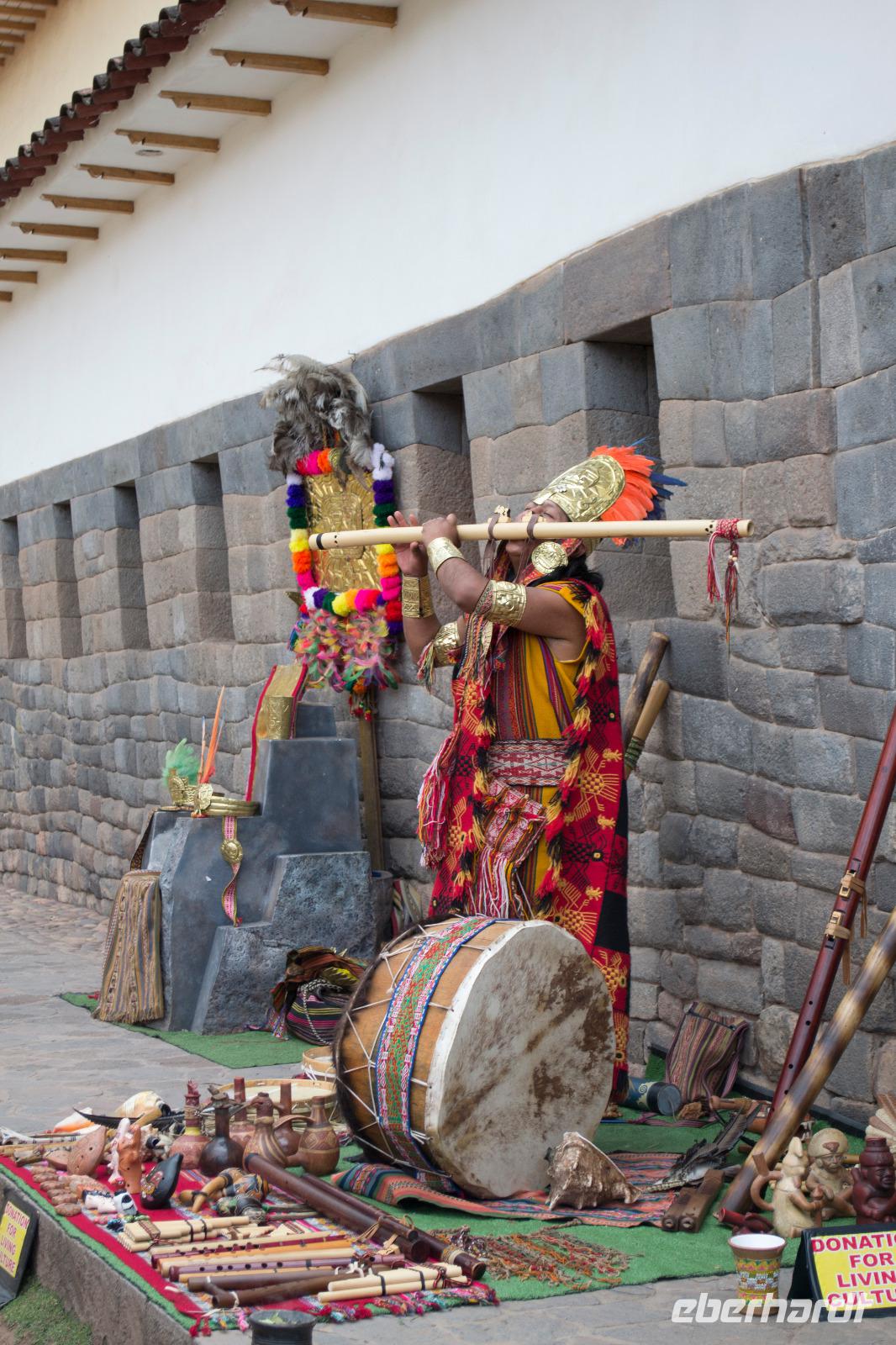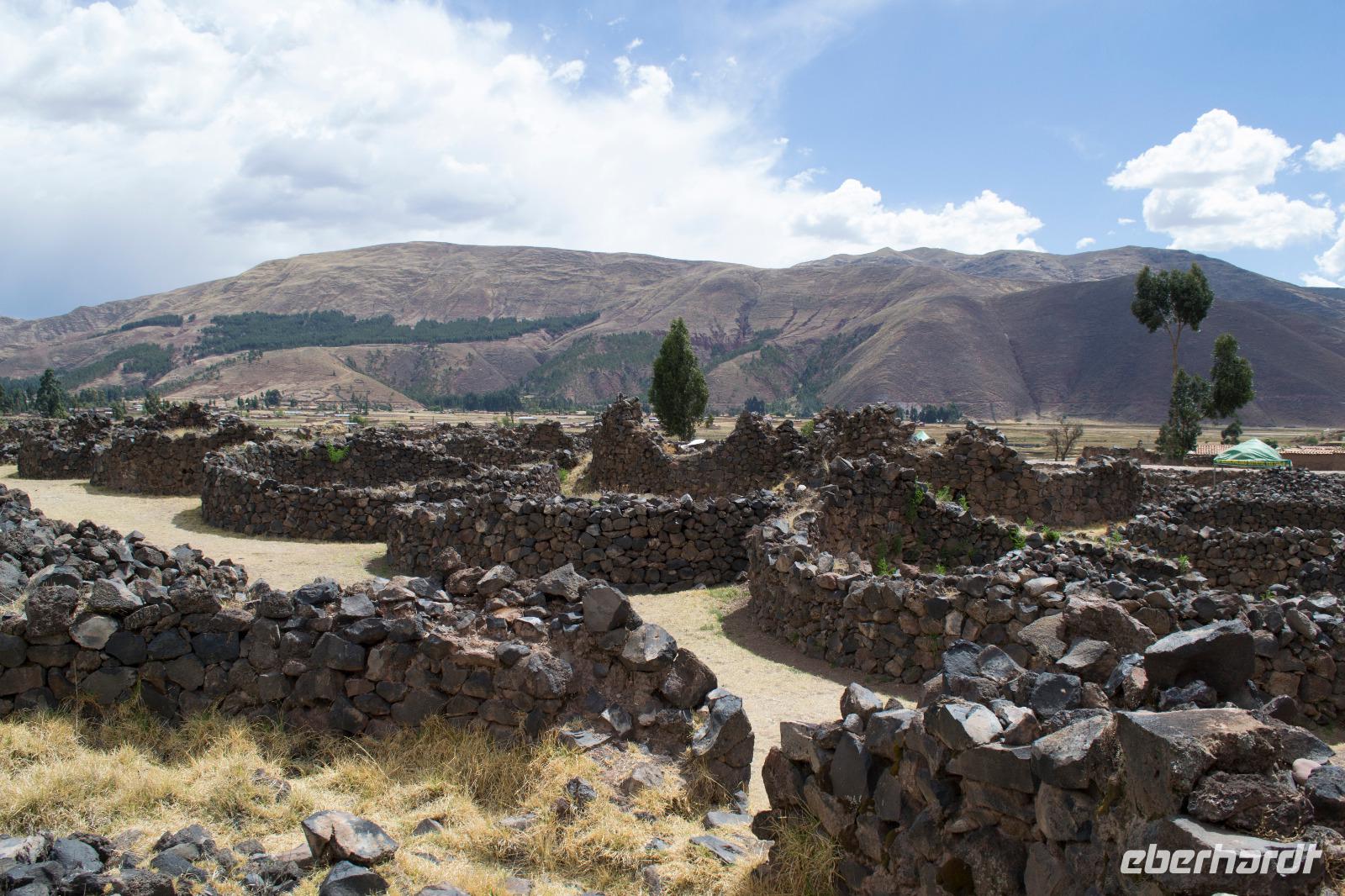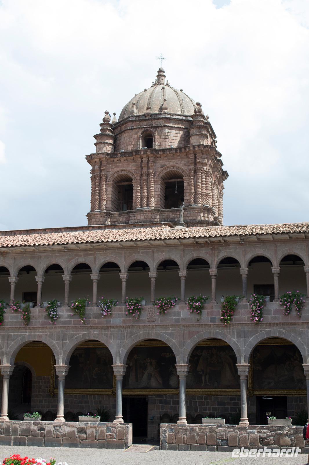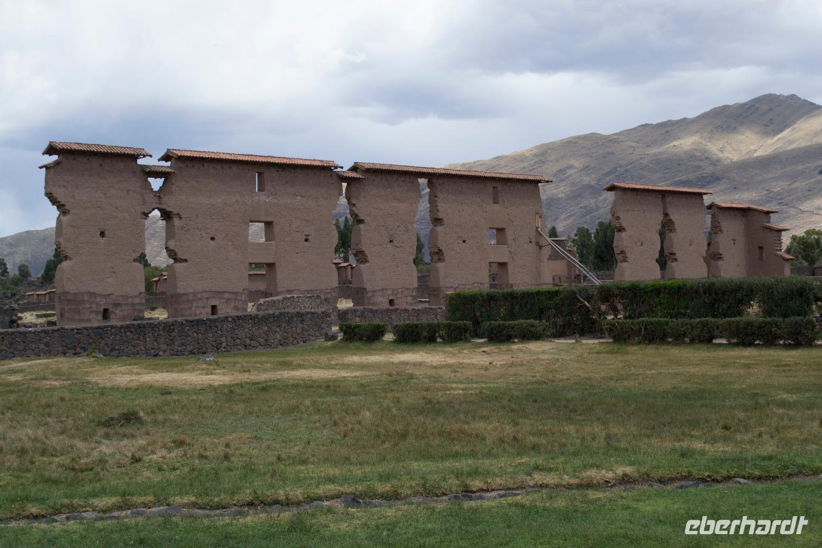 Nun traten wir unsere letzte Reiseetappe durch die beeindruckende Berglandschaft der Anden in Richtung Cusco an. Wir sagten den Höhenmetern auf Wiedersehen und begrüßten unsere freundliche Reiseleiterin Maria. Rechts und links beobachten wir jede Menge Herden von Lamas und Vicunas. Der Pass „La Raya" mit 4335 Metern sollte unser Abschied von der Höhe sein, ab jetzt ginge es nur noch nach unten. Nach 1,5 Stunden Busfahrt hielten wir in Raqchi am Tempel Viracocha. Dieses Bauwerk mit 100 Meter Länge und 25 Meter Breite ist das größte Gebäude, das die Inkas errichteten. Die Straßen waren nach einem strengen Muster ausgerichtet, das den Priestern mit Hilfe des Sonneneinfalls astronomische Beobachtungen ermöglichte, um den richtigen Zeitpunkt für die Aussaat und Ernte zu bestimmen. Die Ernten lagerte man dann in den kühlen Speicherhäusern, welche damals schon vor Dieben und Einbrechern sicher waren. Nach der Führung durch die Inkatempel ging es über einen traditionellen Markt zurück in den Bus und zu dem letzten Stopp vor der Ankunft in unserem Stadthotel „Casa Andina Standard" in Cusco. Die im 17. Jahrhundert errichtete Jesuitenkirche von Andahuayillas, welche durch die tollen Malereien und Goldverzierungen auch die „Sixtinische Kapelle der Anden" genannt wird. So viel Reichtum war uns von außen nicht bewusst, doch das Innere der Kirche ließ uns den Atem anhalten. Nach dem Weitertransport der Koffer samt Gästen in kleinere Fahrzeuge durch die engen Gassen Cuscos kamen wir in unserem zunächst unscheinbaren Hotel an. Am Abend besuchten wir noch das Restaurant „Pachapapa" mit einem romantischen Innenhof.