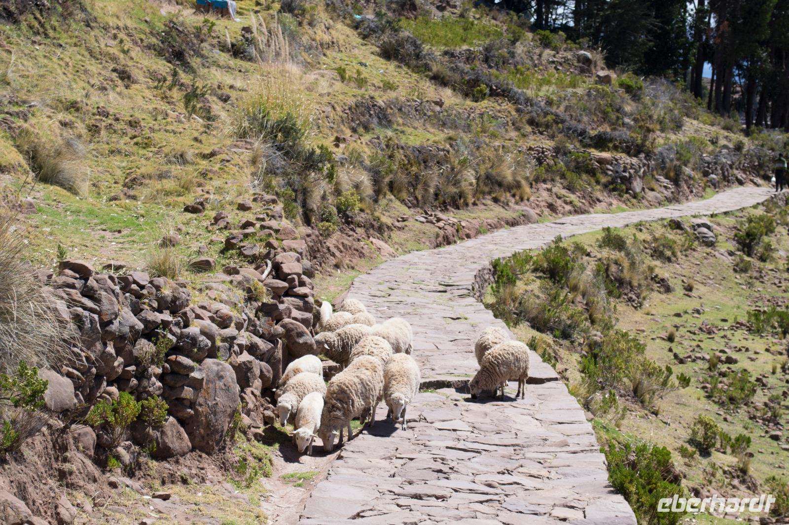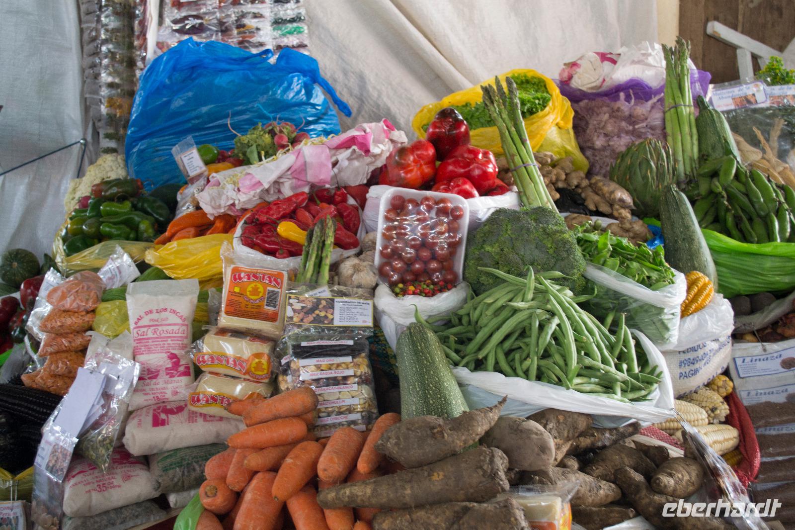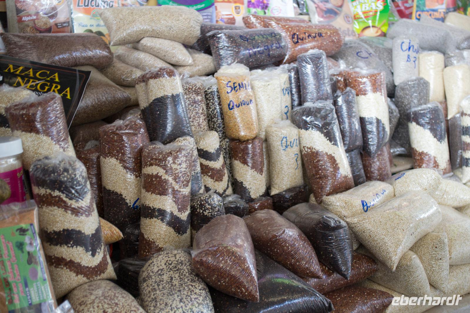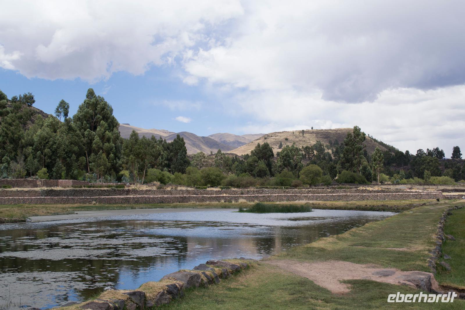 Nun traten wir unsere letzte Reiseetappe durch die beeindruckende Berglandschaft der Anden in Richtung Cusco an. Wir sagten den Höhenmetern auf Wiedersehen und begrüßten unsere freundliche Reiseleiterin Maria. Rechts und links beobachten wir jede Menge Herden von Lamas und Vicunas. Der Pass „La Raya" mit 4335 Metern sollte unser Abschied von der Höhe sein, ab jetzt ginge es nur noch nach unten. Nach 1,5 Stunden Busfahrt hielten wir in Raqchi am Tempel Viracocha. Dieses Bauwerk mit 100 Meter Länge und 25 Meter Breite ist das größte Gebäude, das die Inkas errichteten. Die Straßen waren nach einem strengen Muster ausgerichtet, das den Priestern mit Hilfe des Sonneneinfalls astronomische Beobachtungen ermöglichte, um den richtigen Zeitpunkt für die Aussaat und Ernte zu bestimmen. Die Ernten lagerte man dann in den kühlen Speicherhäusern, welche damals schon vor Dieben und Einbrechern sicher waren. Nach der Führung durch die Inkatempel ging es über einen traditionellen Markt zurück in den Bus und zu dem letzten Stopp vor der Ankunft in unserem Stadthotel „Casa Andina Standard" in Cusco. Die im 17. Jahrhundert errichtete Jesuitenkirche von Andahuayillas, welche durch die tollen Malereien und Goldverzierungen auch die „Sixtinische Kapelle der Anden" genannt wird. So viel Reichtum war uns von außen nicht bewusst, doch das Innere der Kirche ließ uns den Atem anhalten. Nach dem Weitertransport der Koffer samt Gästen in kleinere Fahrzeuge durch die engen Gassen Cuscos kamen wir in unserem zunächst unscheinbaren Hotel an. Am Abend besuchten wir noch das Restaurant „Pachapapa" mit einem romantischen Innenhof.