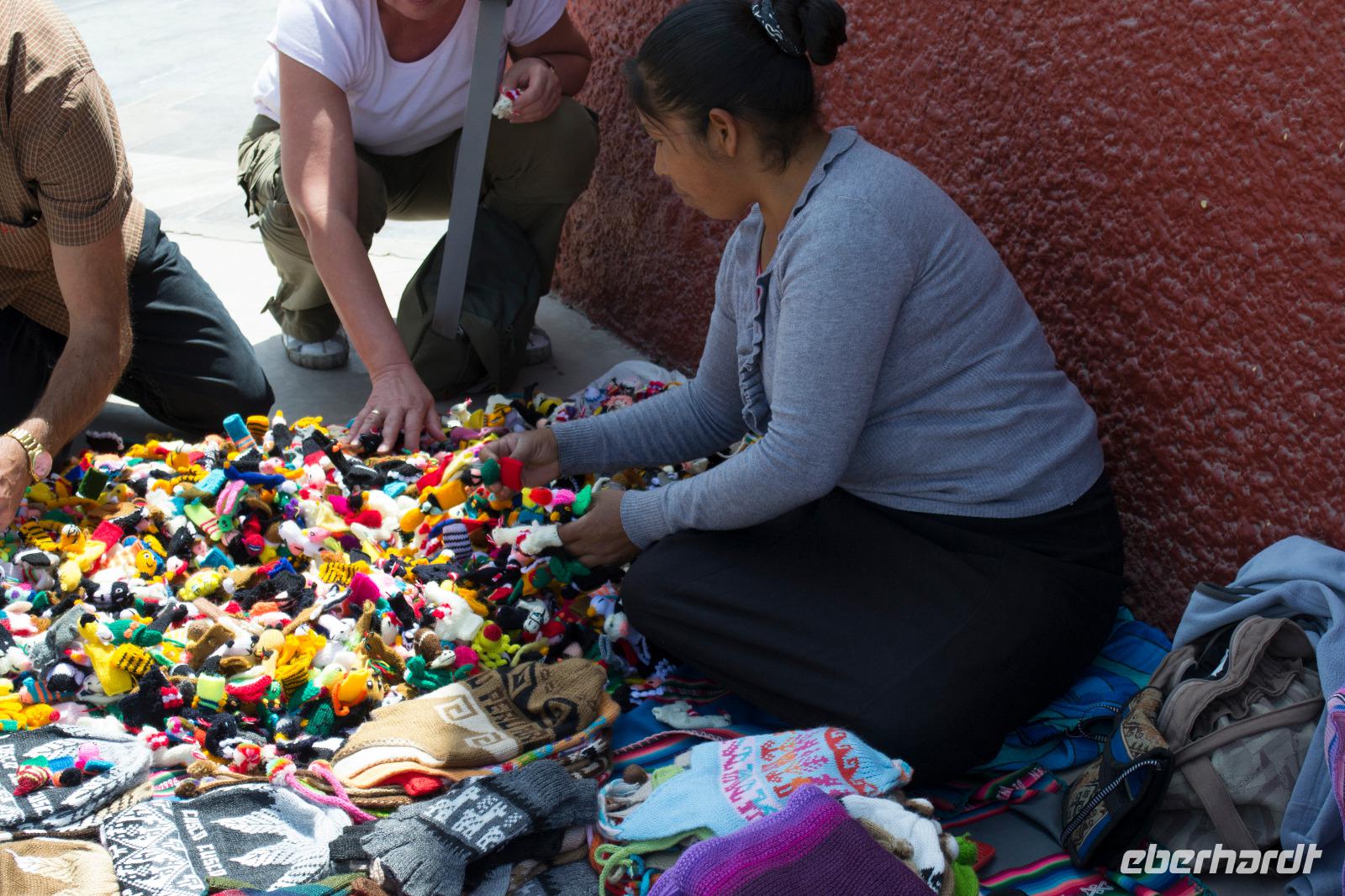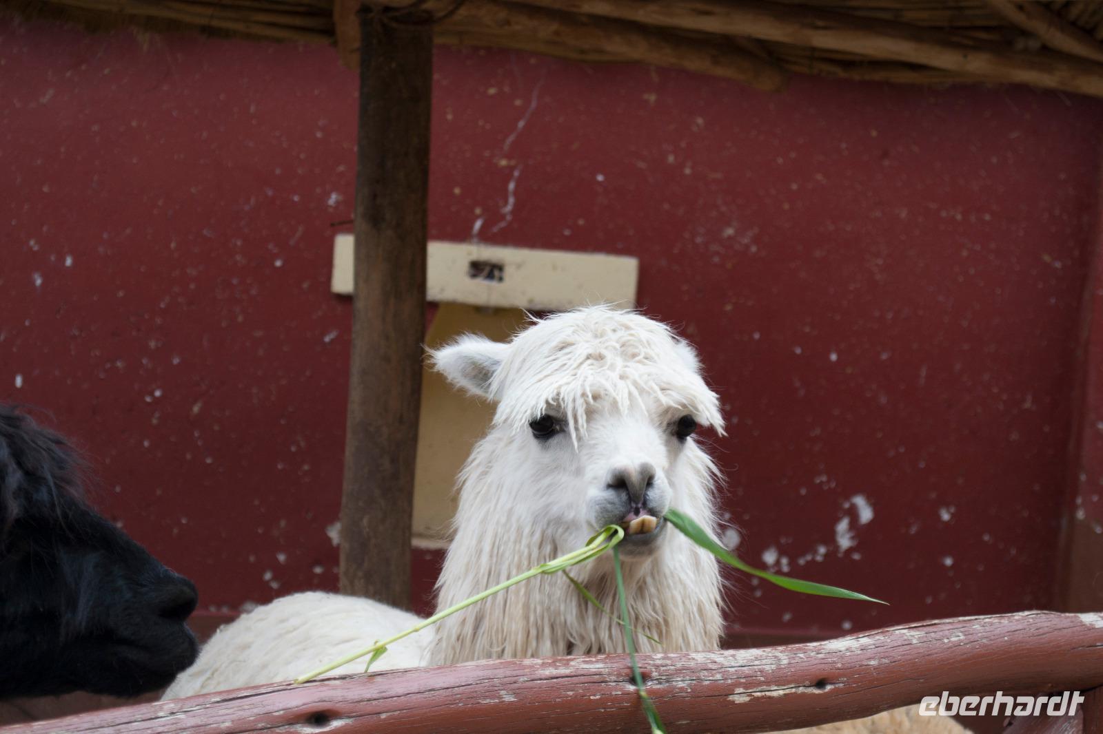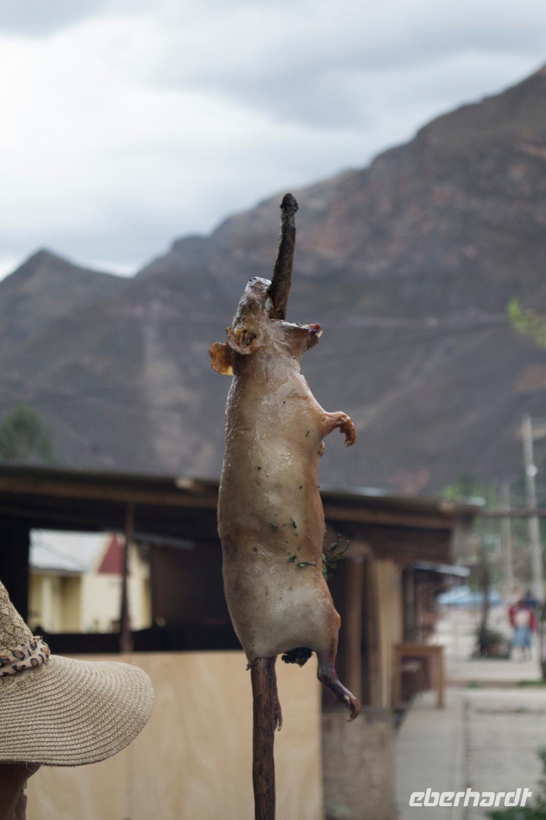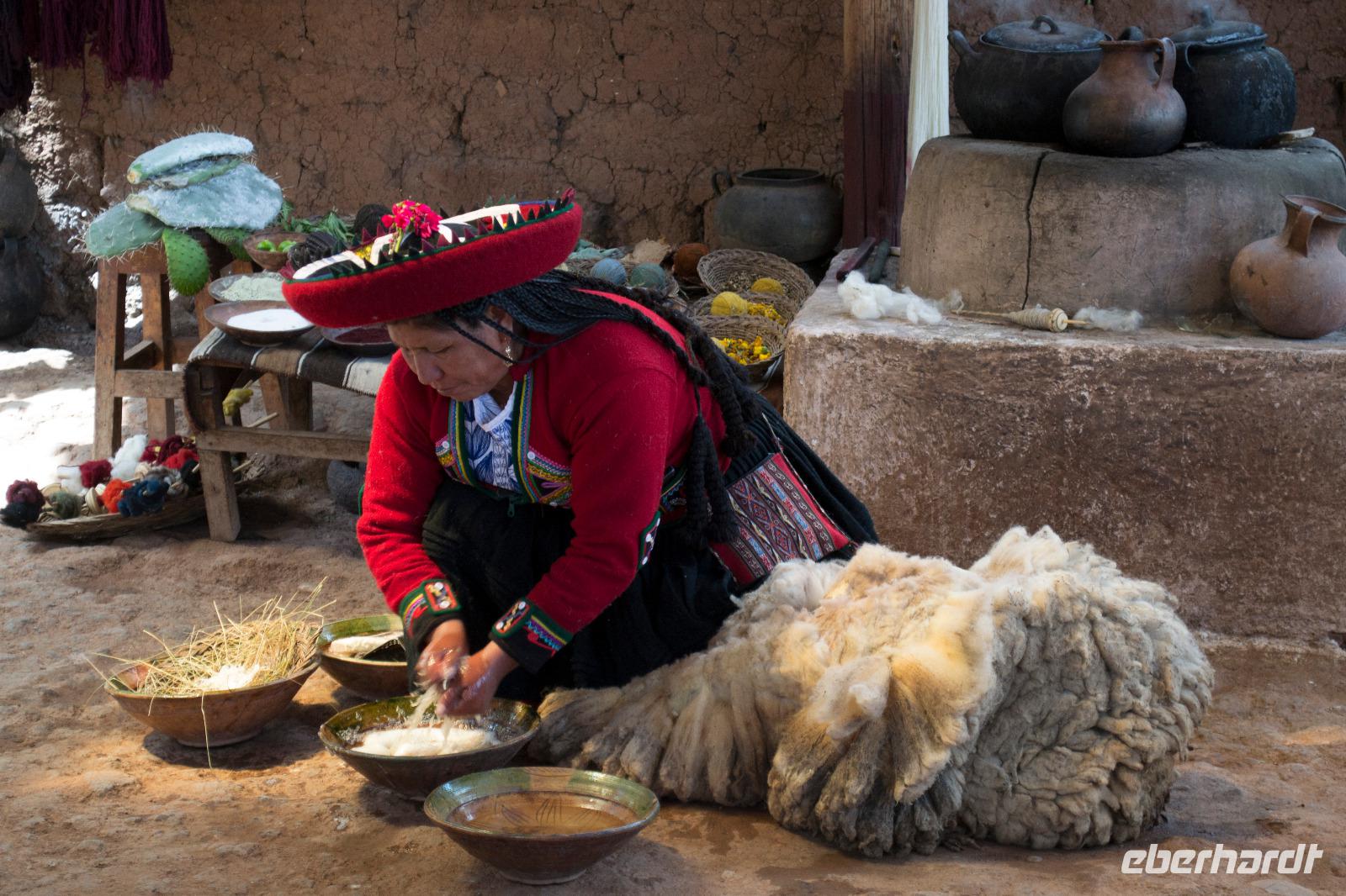 Für den heutigen Tag hieß es noch einmal etwas länger im Bus sitzen, denn die Fahrt in das heilige Tal stand uns bevor. Busfahrer Nelson und Reiseleitung Maria begrüßten uns durch das schwer verstehbare Mikrophon des Busses. Wir nahmen es dabei mit Humor, dass zwischen jedem zweiten Wort der Reiseleitung ein Lied des lokalen Radiosenders ertönte. Zunächst durften wir vorbei an Meerschweinchen und Lamas auf einen organisierten Hof von Frauen, welche uns die Herstellung, Färbung, sowie Verarbeitung in fertigen Produkten mit Ihrer Wolle zeigten. Wir waren begeistert, welche Muster und Farben die Frauen aus diesem scheinbar einfachen Material zaubern konnten. Dennoch bleiben die Mitarbeiter des Hofes bescheiden und verkaufen Ihre fertigen Produkte, welche wir als unbezahlbar empfanden zu erschwinglichen Preisen für Touristen. Auf Grund der schlechten Qualität des Busmikrophones bestand Busfahrer Nelson auf einen Wechsel zu seinem Stammbus, welchen wir gerne zustimmten. Die nächste Pause an einem Pass nutzen wir für einen dringenden Toilettengang, aber vor allem auch um den fantastischen Blick auf Berg und Tal zu genießen und in Form von Fotografien festzuhalten. Nur wenige Kilometer entfernt findet man eine Gemeinschaft mit dem Namen Chincero. Dort stehen die Überreste des königlichen Hauses von Tupac Inca Yupanqui. Wir bestraunten die wahnsinnige Kirche und die unterhalb einer großen Grünfläche angelegten Inkaterrassen. Die Mittagszeit nahte und wir befanden uns auf dem unmittelbaren Weg zu der einheimischen Familie im Urubamba Tal, wo wir heute Abend auch unser Hotel finden konnten. Die Familie mit einer ganz herzlichen Omi, welche uns alle mit Ihrem Charme um den Finger wickelte verwöhnte uns mit leckeren Tapas, einer frischen Gemüsesuppe, „Lomo Saltado" - Geschnetzeltes vom Rind und zum Abschluss mit einem feinen eingelegten Pfirsich. Die Zeit fühlte sich wie zurück gedreht an und die Gäste fühlten sich so Wohl bei unserer „Omi", dass Sie sogar ein Altes Inka Frosch Spiel ausprobierten. Bevor es in das Hotel ging legten wir noch einen Abstecher in das ca. 1 stündig entfernte Pisaq ein. Diese Stadt, eine frühere Bergfeste der Inka und liegt etwa 33 Kilometer von Cuzco entfernt.Sie liegt im Valle Sagrado (Heiliges Tal der Inka) am Rio Urubamba und ist vor allem für seinen tollen Markt auf dem Hauptplatz bekannt. Alle Gäste gaben Ihre letzten Soles für weitere Souvenirs und Alpaca Tücher aus. Nun ging es fast ohne Unterbrechung in unser Hotel für die heutige Nacht wären da nicht die leckeren Meerschweinchen in einem kleinen Lokal am Straßenrand gewesen. Einige Gäste wollten natürlich auf diese Gelegenheit nutzen um sich wir die richtigen Peruaner zu fühlen, denn für Sie ist das Meerschweinchen, wie in Deutschland das Kaninchen ein Nationalgericht. Da damit nicht jeder manns Geschmack getroffen wurde blieben einige Reisende im Bus sitzen oder spazierten die Straße auf und ab. Die Mutigen und Schaulustigen unter uns versammelten sich um den Ofen voller Meerschweine. Ein ereignisreicher Tag neigte sich dem Ende und wir checkten in unser letztes Hotel auf der Rundreise ein. Den Abend verbrachten viele in der Hotelbar bei einem kleinen Absacker oder bei dem Abendessen im hoteleigenen Restaurant.