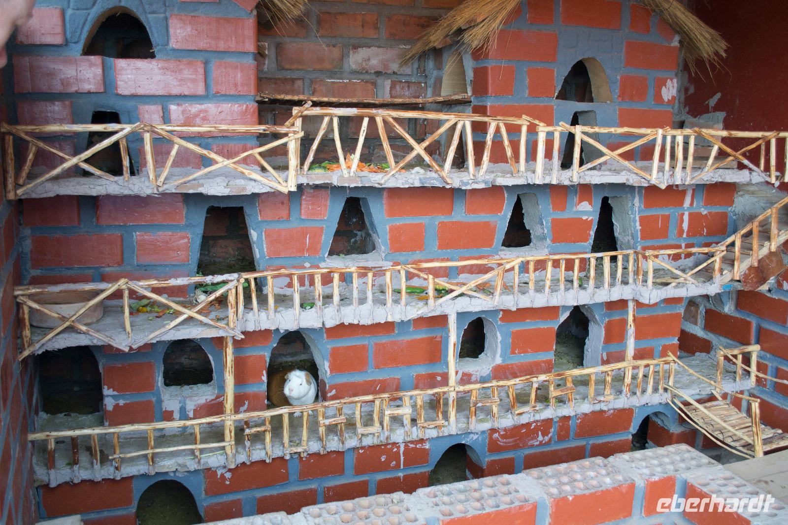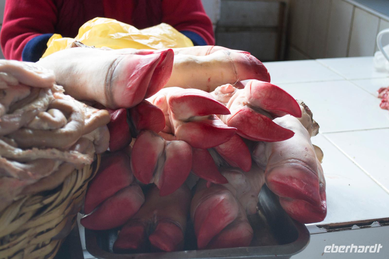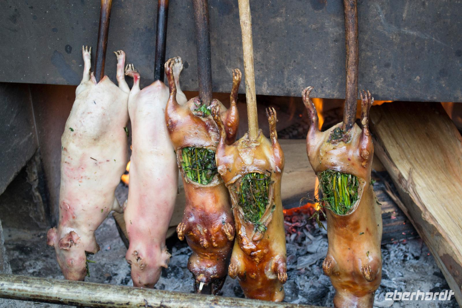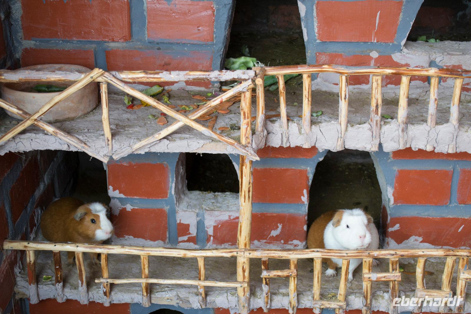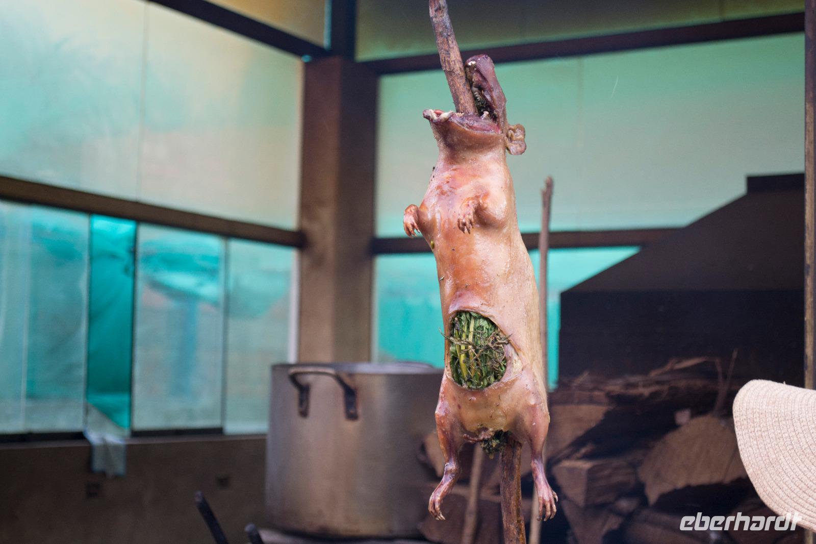 Für den heutigen Tag hieß es noch einmal etwas länger im Bus sitzen, denn die Fahrt in das heilige Tal stand uns bevor. Busfahrer Nelson und Reiseleitung Maria begrüßten uns durch das schwer verstehbare Mikrophon des Busses. Wir nahmen es dabei mit Humor, dass zwischen jedem zweiten Wort der Reiseleitung ein Lied des lokalen Radiosenders ertönte. Zunächst durften wir vorbei an Meerschweinchen und Lamas auf einen organisierten Hof von Frauen, welche uns die Herstellung, Färbung, sowie Verarbeitung in fertigen Produkten mit Ihrer Wolle zeigten. Wir waren begeistert, welche Muster und Farben die Frauen aus diesem scheinbar einfachen Material zaubern konnten. Dennoch bleiben die Mitarbeiter des Hofes bescheiden und verkaufen Ihre fertigen Produkte, welche wir als unbezahlbar empfanden zu erschwinglichen Preisen für Touristen. Auf Grund der schlechten Qualität des Busmikrophones bestand Busfahrer Nelson auf einen Wechsel zu seinem Stammbus, welchen wir gerne zustimmten. Die nächste Pause an einem Pass nutzen wir für einen dringenden Toilettengang, aber vor allem auch um den fantastischen Blick auf Berg und Tal zu genießen und in Form von Fotografien festzuhalten. Nur wenige Kilometer entfernt findet man eine Gemeinschaft mit dem Namen Chincero. Dort stehen die Überreste des königlichen Hauses von Tupac Inca Yupanqui. Wir bestraunten die wahnsinnige Kirche und die unterhalb einer großen Grünfläche angelegten Inkaterrassen. Die Mittagszeit nahte und wir befanden uns auf dem unmittelbaren Weg zu der einheimischen Familie im Urubamba Tal, wo wir heute Abend auch unser Hotel finden konnten. Die Familie mit einer ganz herzlichen Omi, welche uns alle mit Ihrem Charme um den Finger wickelte verwöhnte uns mit leckeren Tapas, einer frischen Gemüsesuppe, „Lomo Saltado" - Geschnetzeltes vom Rind und zum Abschluss mit einem feinen eingelegten Pfirsich. Die Zeit fühlte sich wie zurück gedreht an und die Gäste fühlten sich so Wohl bei unserer „Omi", dass Sie sogar ein Altes Inka Frosch Spiel ausprobierten. Bevor es in das Hotel ging legten wir noch einen Abstecher in das ca. 1 stündig entfernte Pisaq ein. Diese Stadt, eine frühere Bergfeste der Inka und liegt etwa 33 Kilometer von Cuzco entfernt.Sie liegt im Valle Sagrado (Heiliges Tal der Inka) am Rio Urubamba und ist vor allem für seinen tollen Markt auf dem Hauptplatz bekannt. Alle Gäste gaben Ihre letzten Soles für weitere Souvenirs und Alpaca Tücher aus. Nun ging es fast ohne Unterbrechung in unser Hotel für die heutige Nacht wären da nicht die leckeren Meerschweinchen in einem kleinen Lokal am Straßenrand gewesen. Einige Gäste wollten natürlich auf diese Gelegenheit nutzen um sich wir die richtigen Peruaner zu fühlen, denn für Sie ist das Meerschweinchen, wie in Deutschland das Kaninchen ein Nationalgericht. Da damit nicht jeder manns Geschmack getroffen wurde blieben einige Reisende im Bus sitzen oder spazierten die Straße auf und ab. Die Mutigen und Schaulustigen unter uns versammelten sich um den Ofen voller Meerschweine. Ein ereignisreicher Tag neigte sich dem Ende und wir checkten in unser letztes Hotel auf der Rundreise ein. Den Abend verbrachten viele in der Hotelbar bei einem kleinen Absacker oder bei dem Abendessen im hoteleigenen Restaurant.