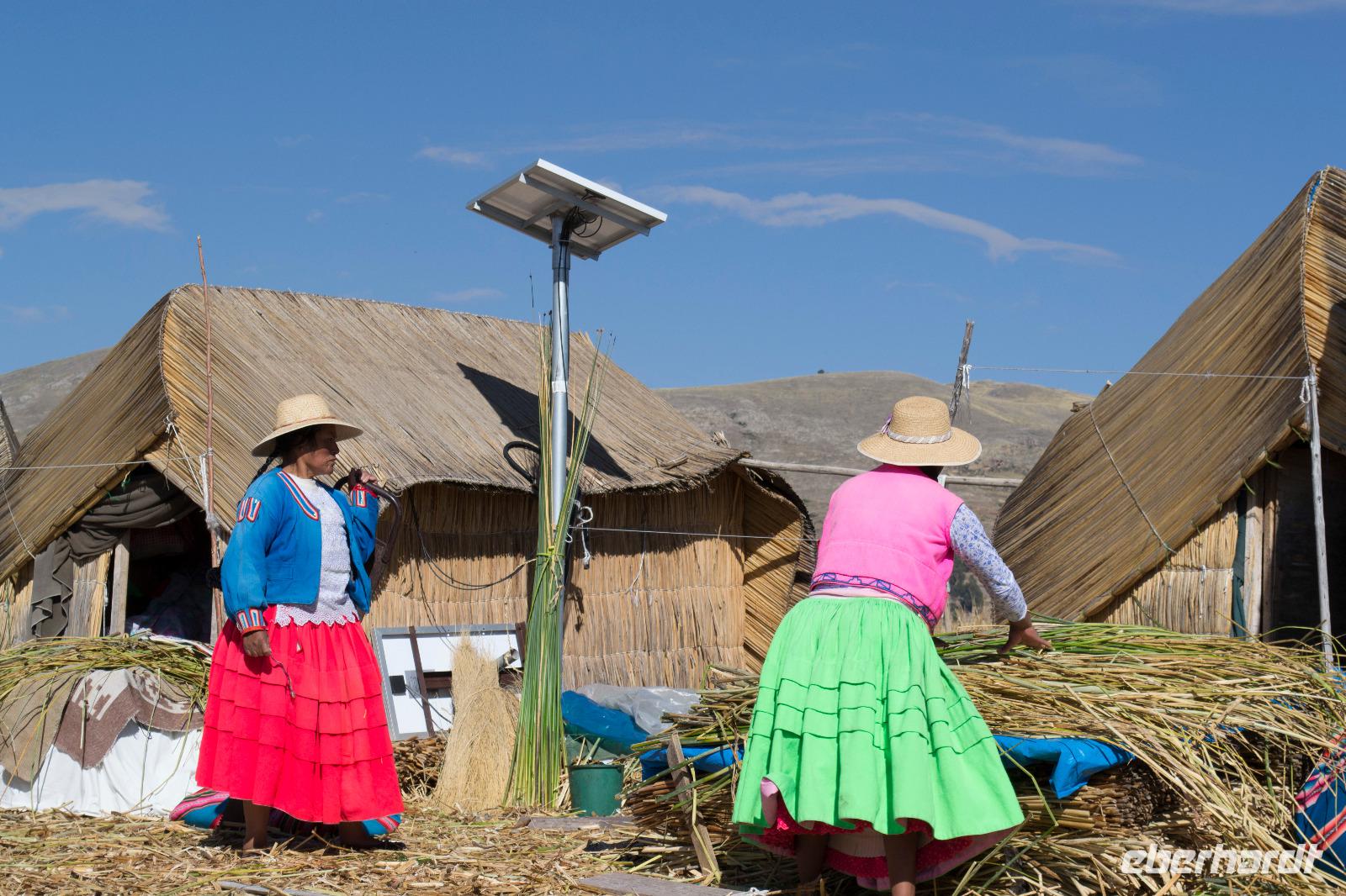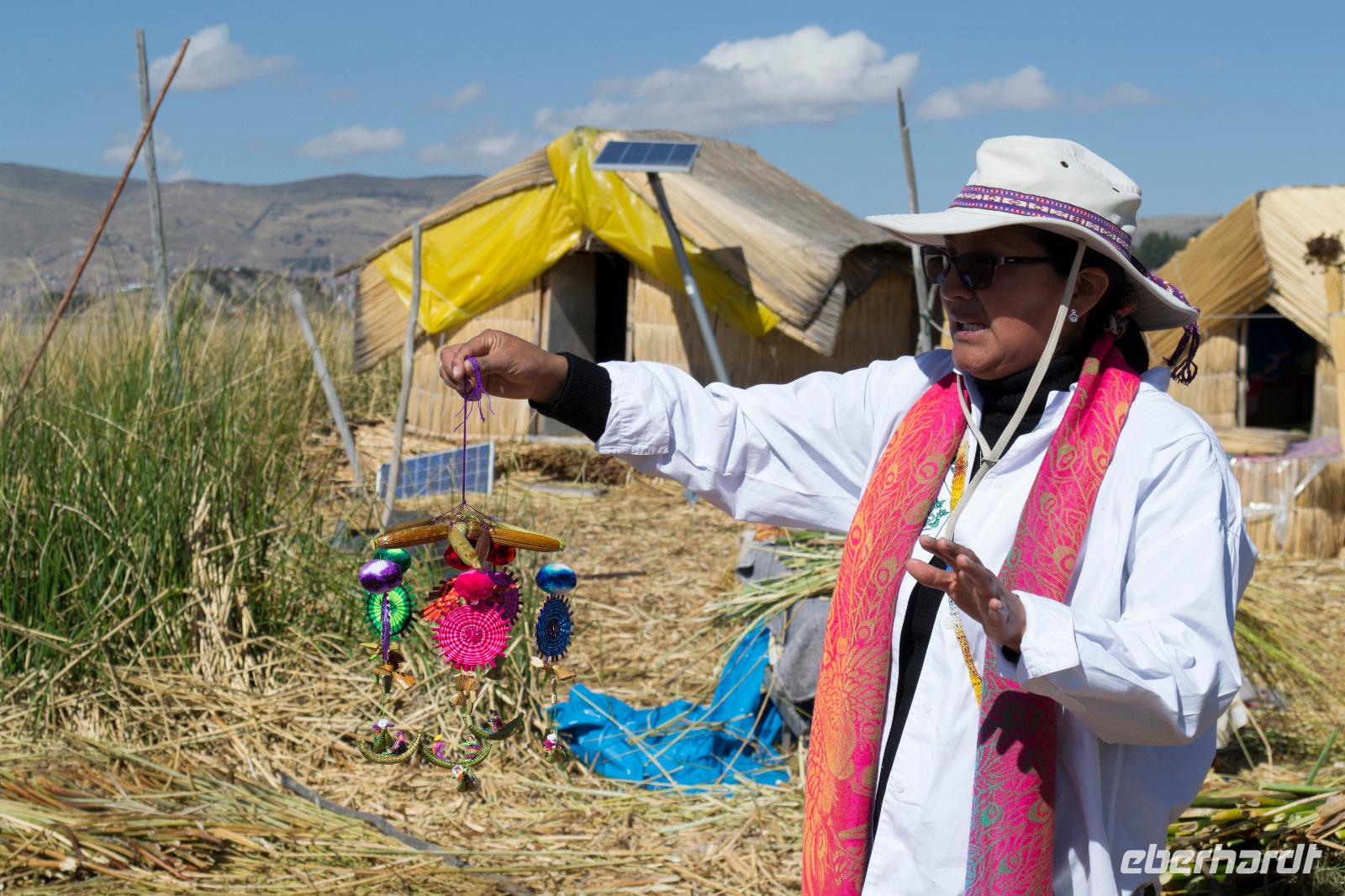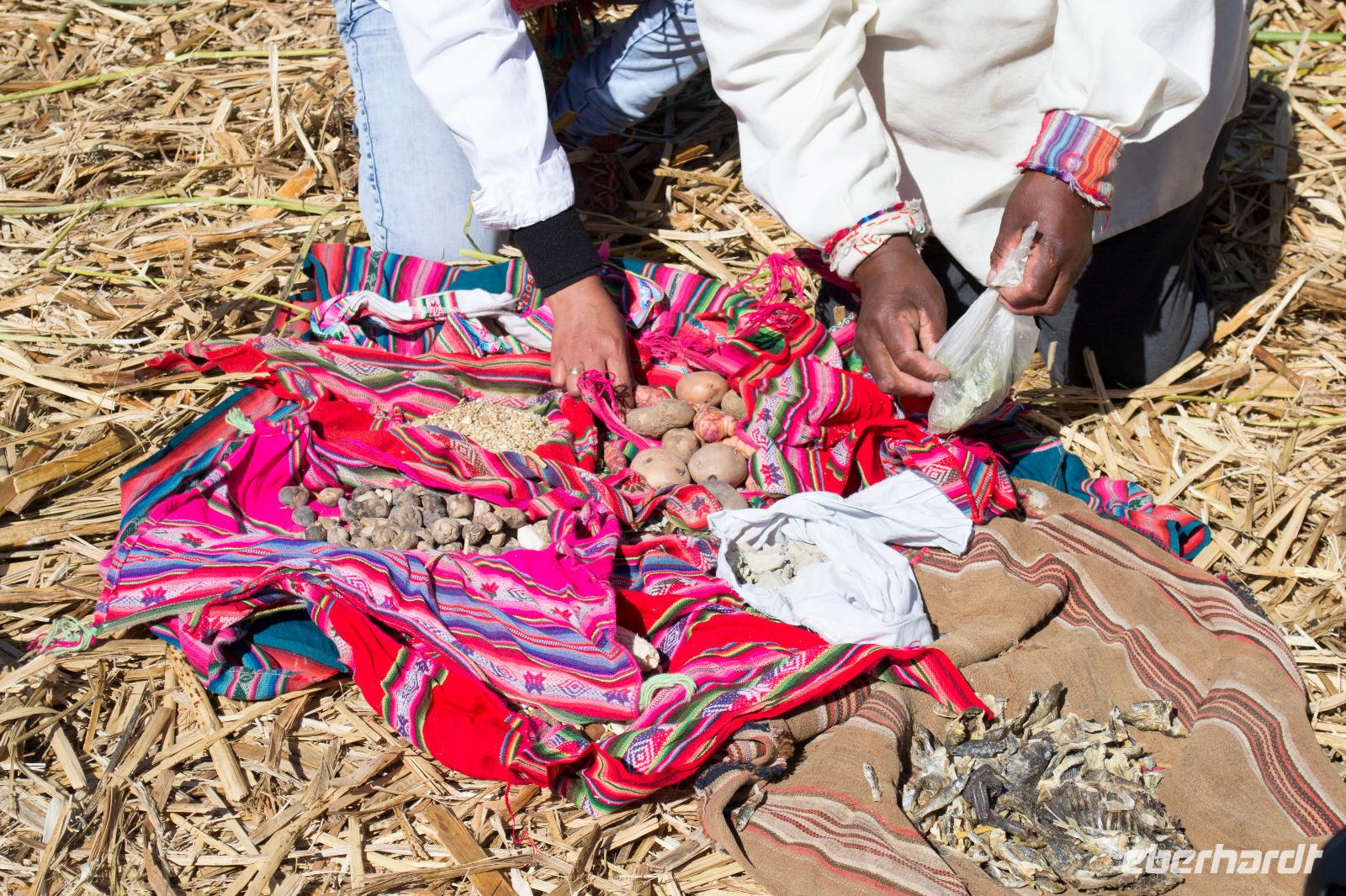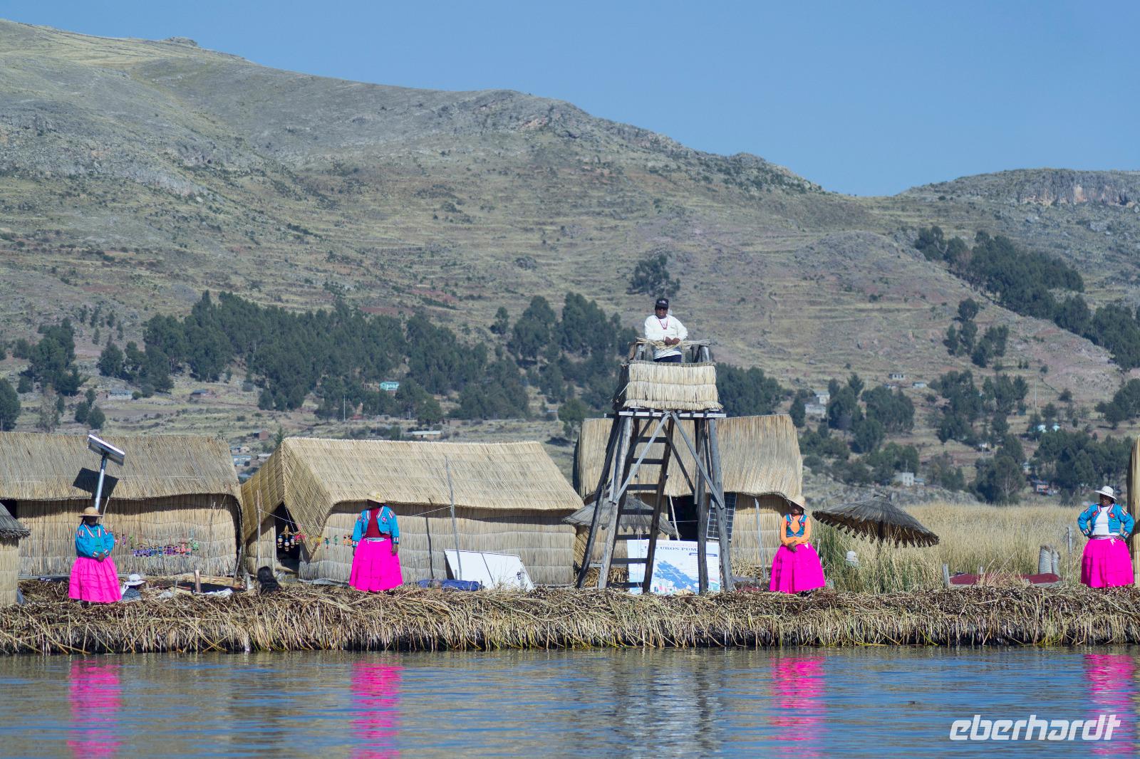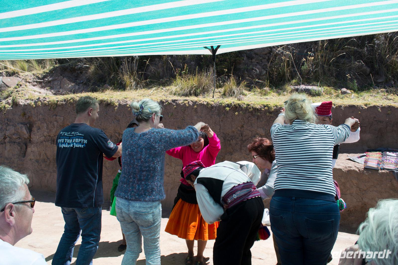 Mit strahlenden Sonnenschein und warmen Temperaturen ging es für die 17 Reiseteilnehmer und der Reiseleitung Nelly für den heutigen Tag auf die Spuren der Uros, auf die schwimmenden Schilfinseln. Mit einem Schnellboot ließen wir uns zu den Ureinwohnern des Titicacasees treiben und wurden von unserer Gastfamilie für den heuteigen Tag willkommen geheißen. Der Inselälteste zeigte und erklärte uns an einem Inselmodell die Entstehung und Entwicklung einer solchen Insel. Wir bestaunten dabei de Lebensweise- und auch Freude der Familie sehr. Wir betrachteten die verschiedenen Materialien sehr genau und kamen aus dem Staunen nicht mehr heraus. Die Zusammensetzung aus verschieden Lagen der Erd- und Pflanzenwelt wurde als Grundlage für den Bau der nur wenige Jahre haltbaren Inseln genutzt. Im Anschluss daran luden die einheimischen die wagemutigen Gäste zu einer Schilfbootsfahrt ein. Nur wenige Gäste blieben mit Reisebegleitung Laura auf der auch schwimmenden Insel. Nach einer 10 Minütigen Fahrt verkauften uns die Bewohner noch Ihre traditionellen Produkte und schenkten uns einen Einblick in Ihre privaten Hütten, mit vielen Gewändern, welche unsere Reisefrauen auch gern einmal anprobieren konnte. Im Anschluss daran fuhr uns das Boot ca. 2 Stunden quer über den Titicacasee auf die Taquile Inseln, wo die Männer heut zu Tage noch Wollmützen stricken. Nelly zeigte uns von dort die bolivianische Seite des Sees, während wir zu Fuß den leicht steilen Weg hoch zu unserem Mittag essen liefen. Dort angekommen wurden wir herzlich von der Familie aufgenommen und mit Köstlichkeiten der Region verwöhnt. Angefangen mit einer Kürbissuppe bis hin zu einer leckeren Forelle mit Blick auf den atemberaubenden See. Danach demonstrierte der Sohn der Familie den Waschvorgang der Schafswolle mit den Blättern einer Kräuterpflanze und reinem Wasser. Alle Gäste waren danach so beeindruckt von dem Ergebnis und konnten nicht glauben, dass dieses Produkt noch keinen Platz auf dem Weltmarkt gefunden hat. Wir waren überzeugt davon, dass wir früher oder später davon noch einmal hören würden. Zur Verabschiedung musizierte und tanzte die Familie mit mehr oder weniger freiwilligen Reisegästen, bevor die Rückfahrt nach Puno anstand. Den verbleibenden Nachmittag bummelten wir bis zum Abend durch die Gassen Punos und freuten uns bereits auf das Abendessen, denn heute Stand nicht nur das kulinarische in dem Vordergrund. Wir besuchten das Restaurant „Balcones de Puno", in welchen am Abend eine traditionelle Folklore Show aufgeführt wurde.